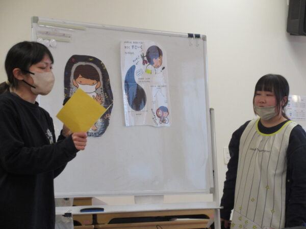 どうして、鼻水がでるのか?等のお話があったあ後に、先生方手作りの鼻かみ練習キットで実践🎵