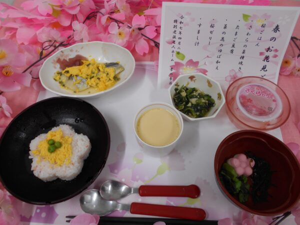 お食事からでも春を満喫していただきたく、4/2の昼食時に桜行事食をご提供しました(*^_^*)