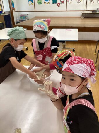 始めての体験で生地が手に付くのが楽しそうでした😊