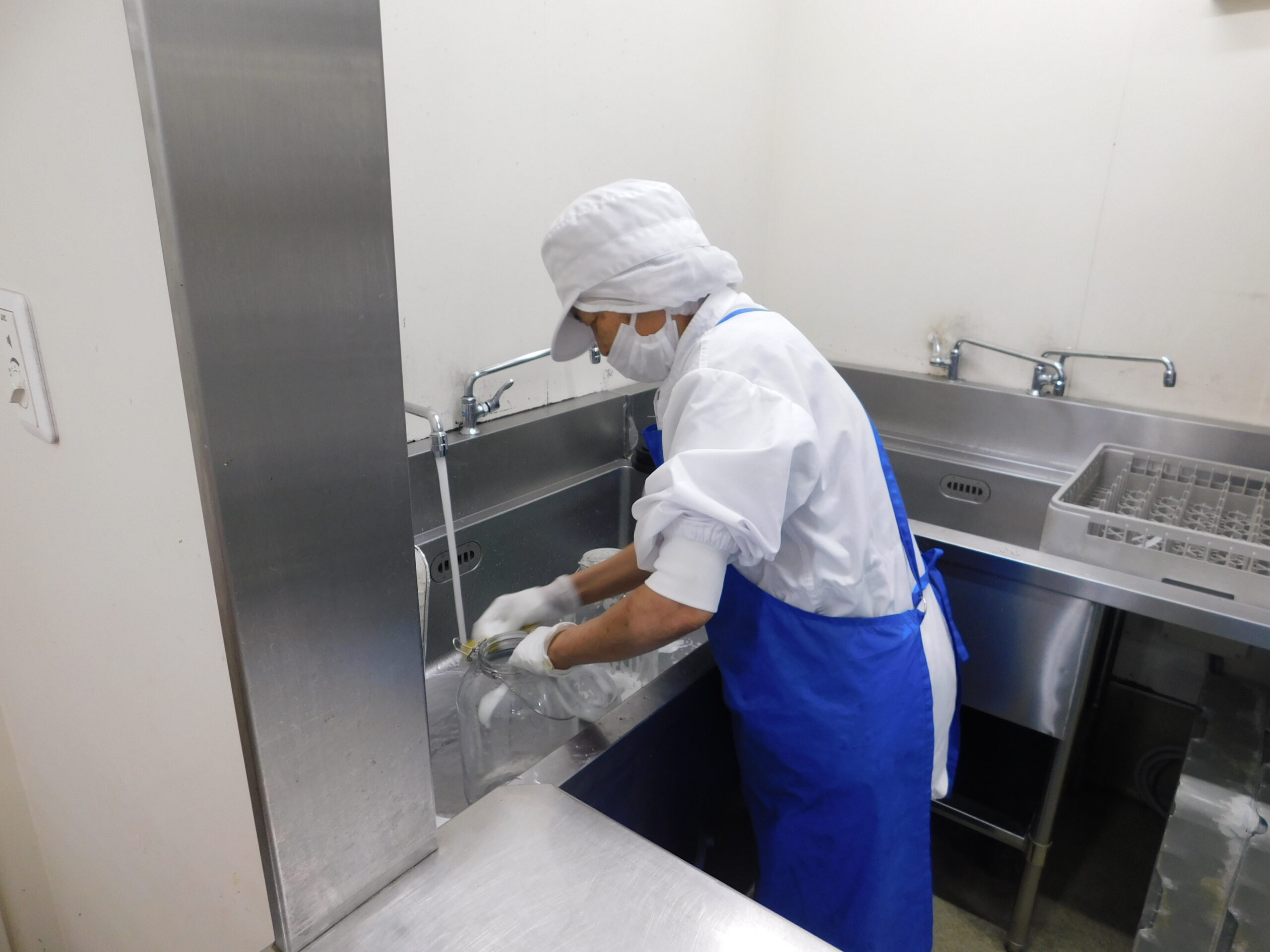 まずは厨房のスタッフさんにも協力してもらい、保存瓶の殺菌作業を行いました。