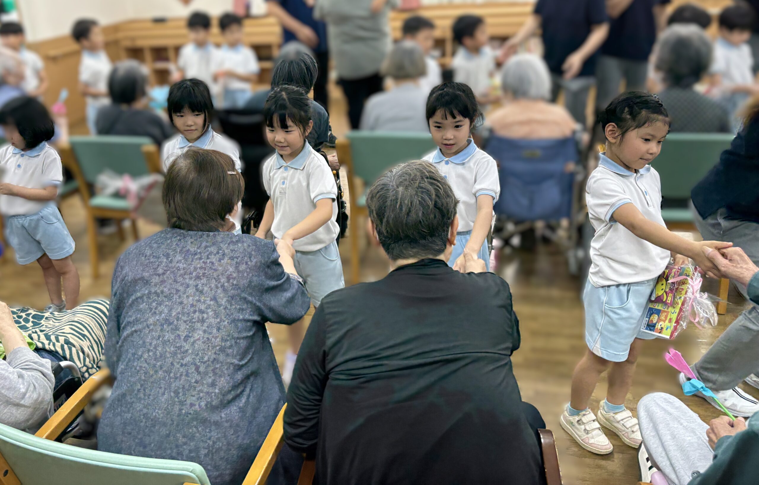 プレゼント交換では、ちょっぴり緊張もしているようでしたが握手やハイタッチ、お絵描き帳やお菓子もいただき笑顔も倍増のようでした😊😊