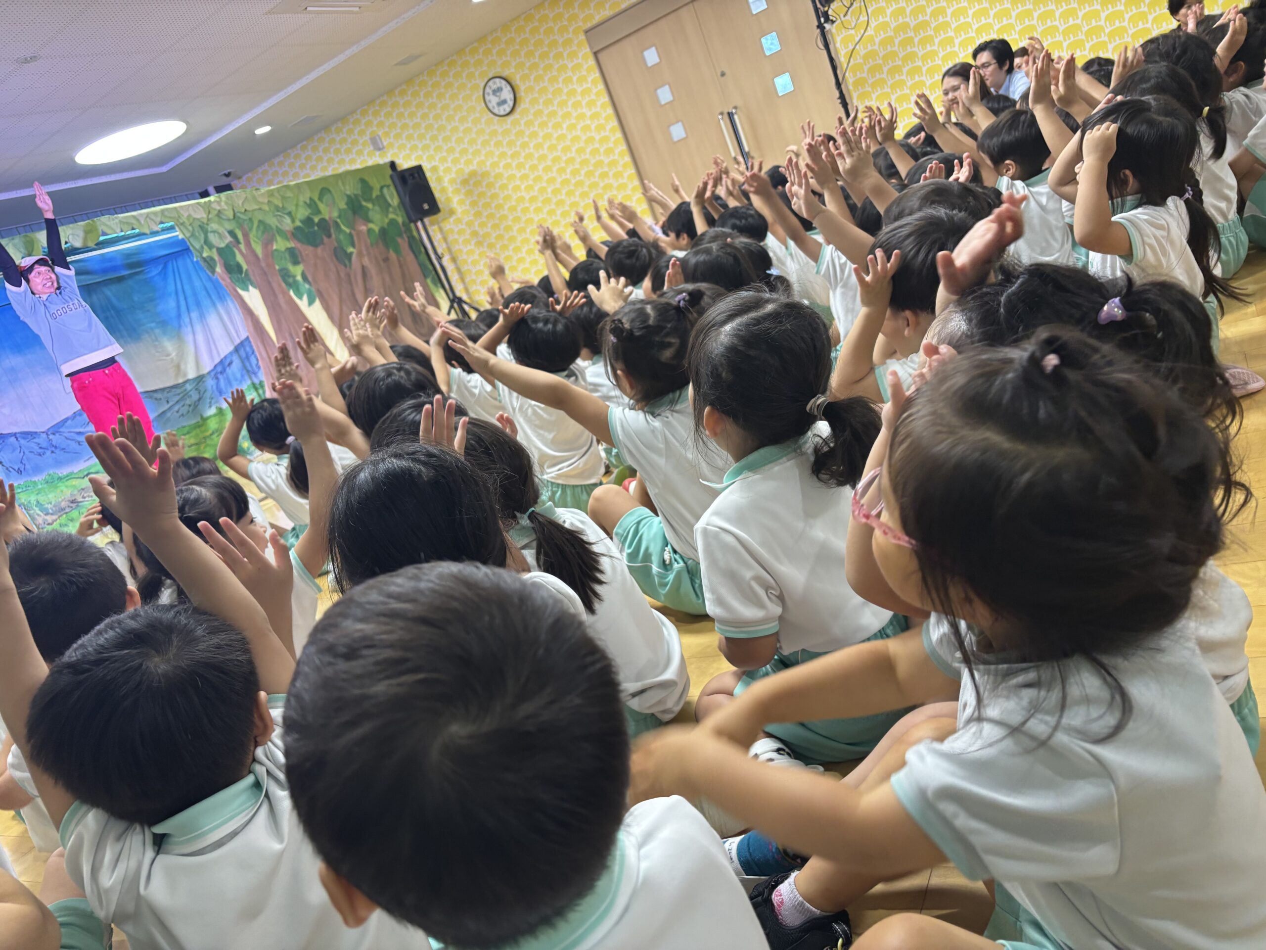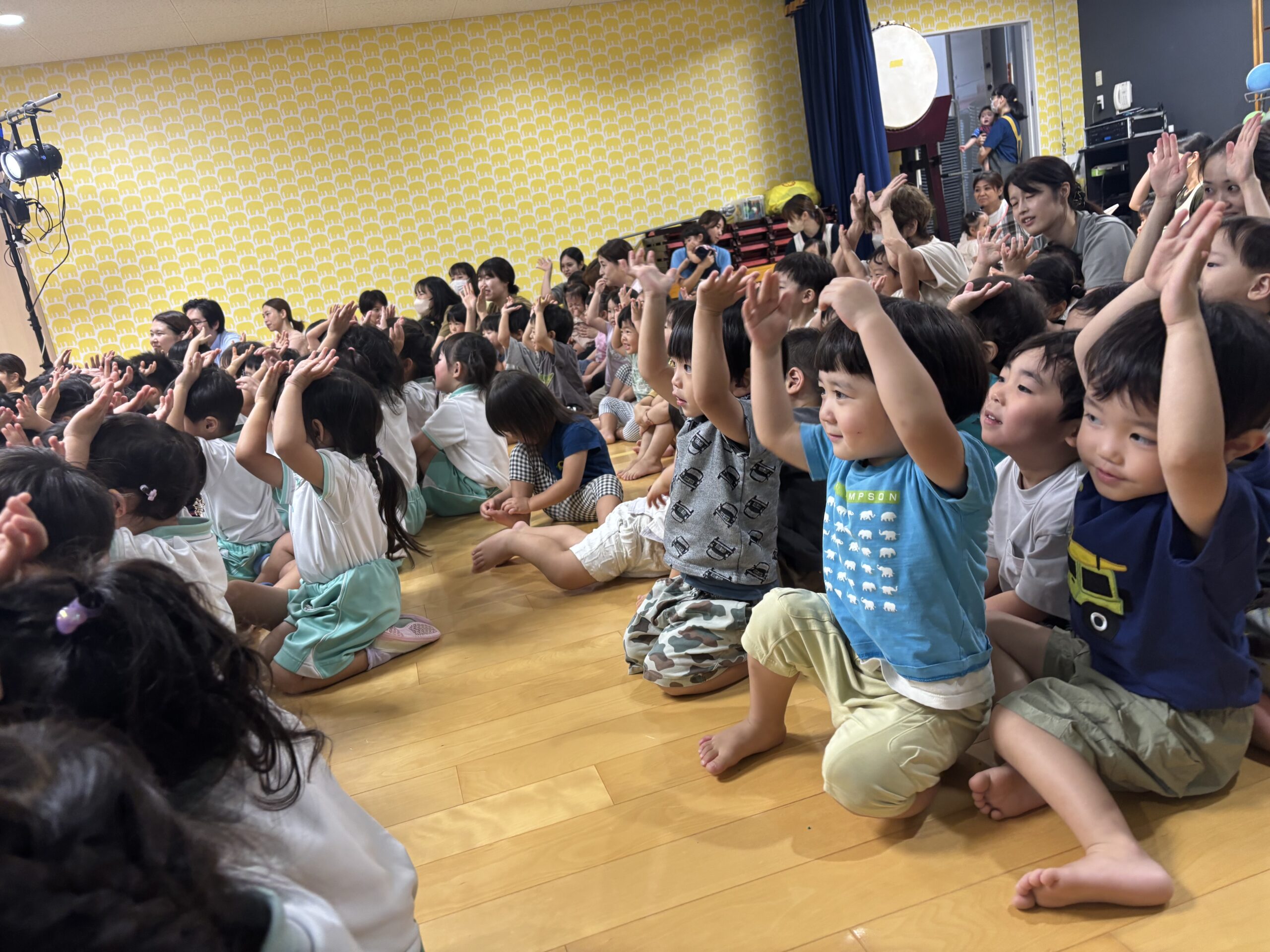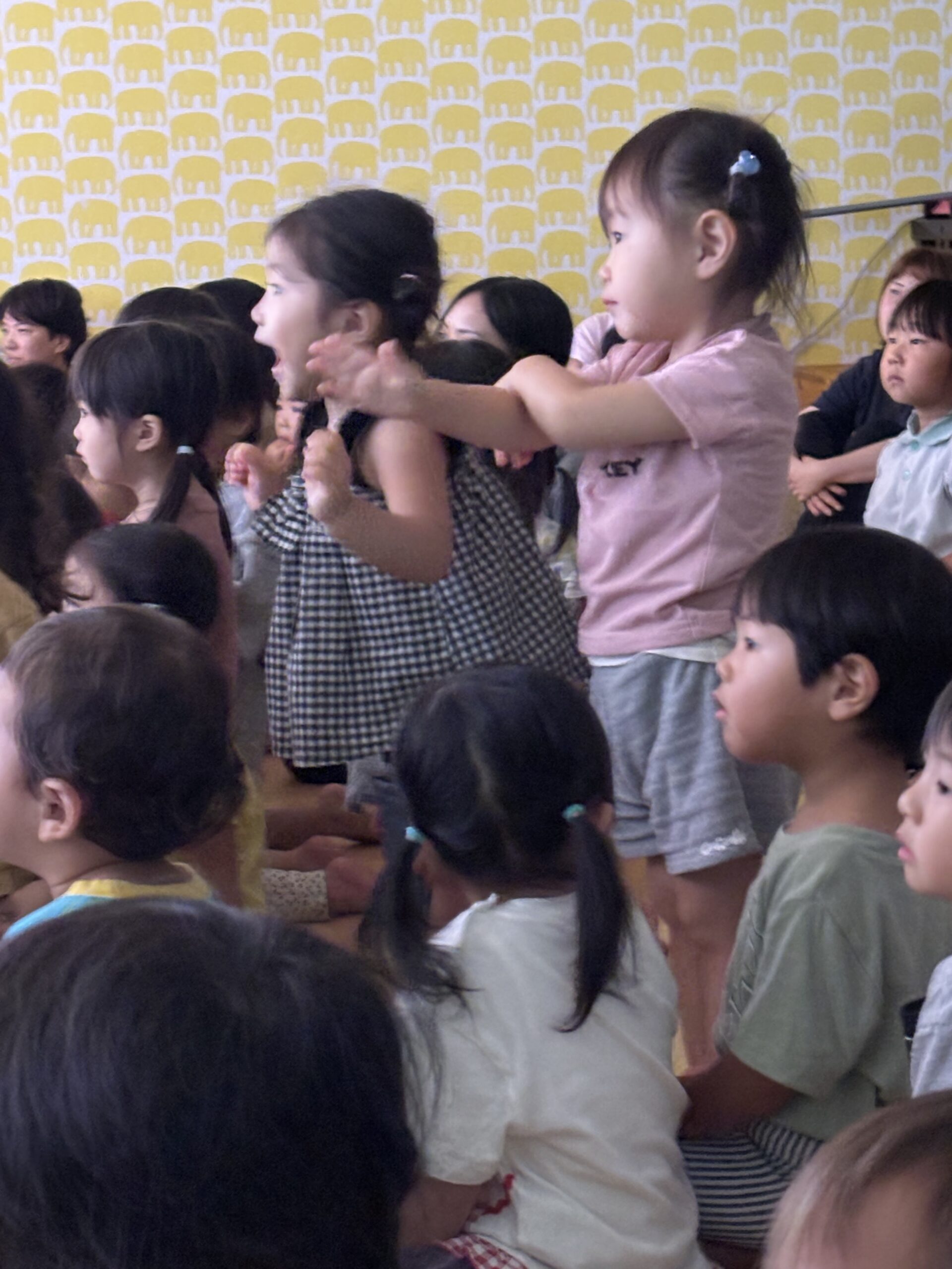 小さいクラスのお友達も真似をしたり、興味津々でじっと見たりして楽しんでいました!!