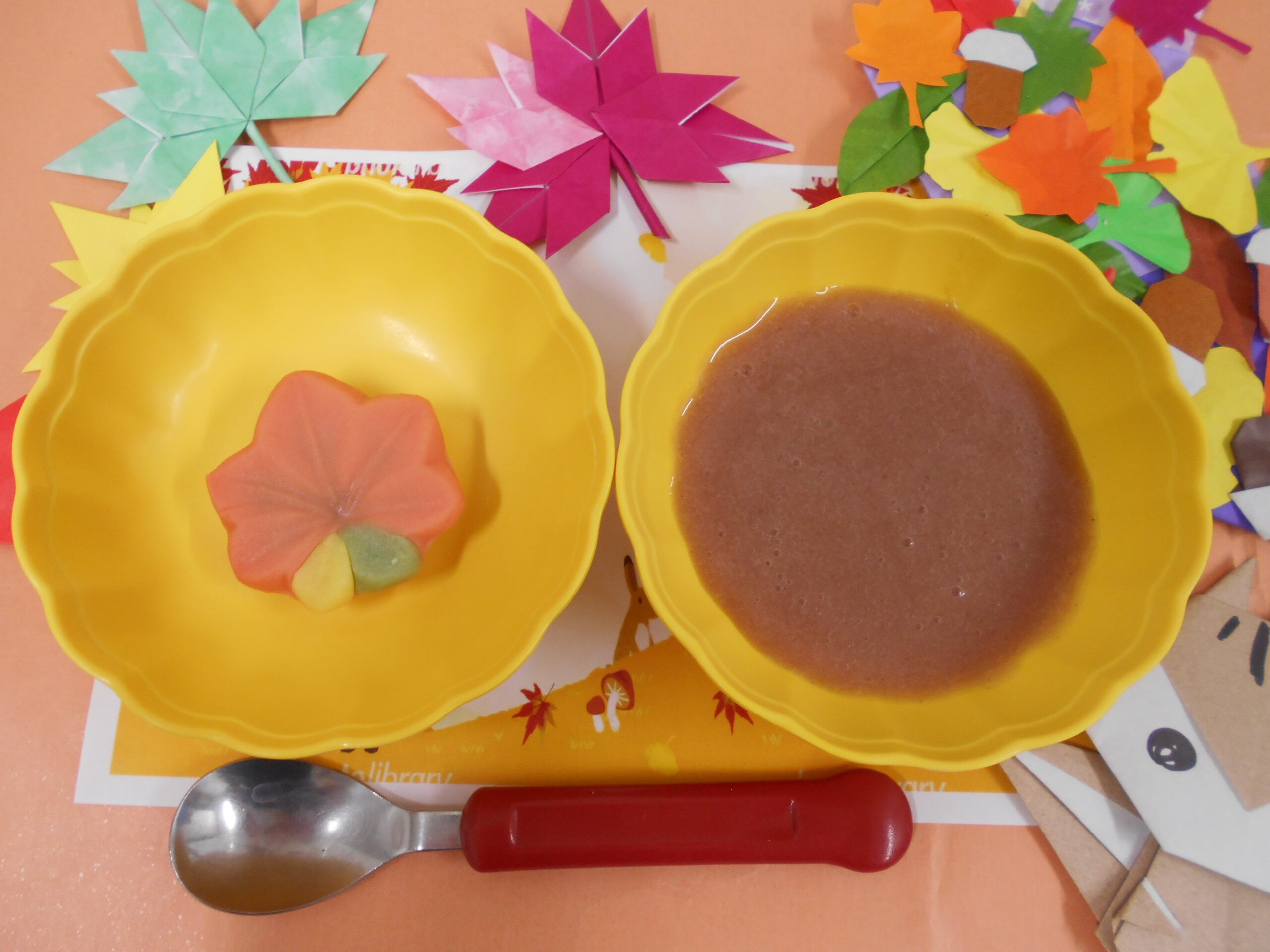おやつでは、紅葉のねりきりを提供させていただきました🍁