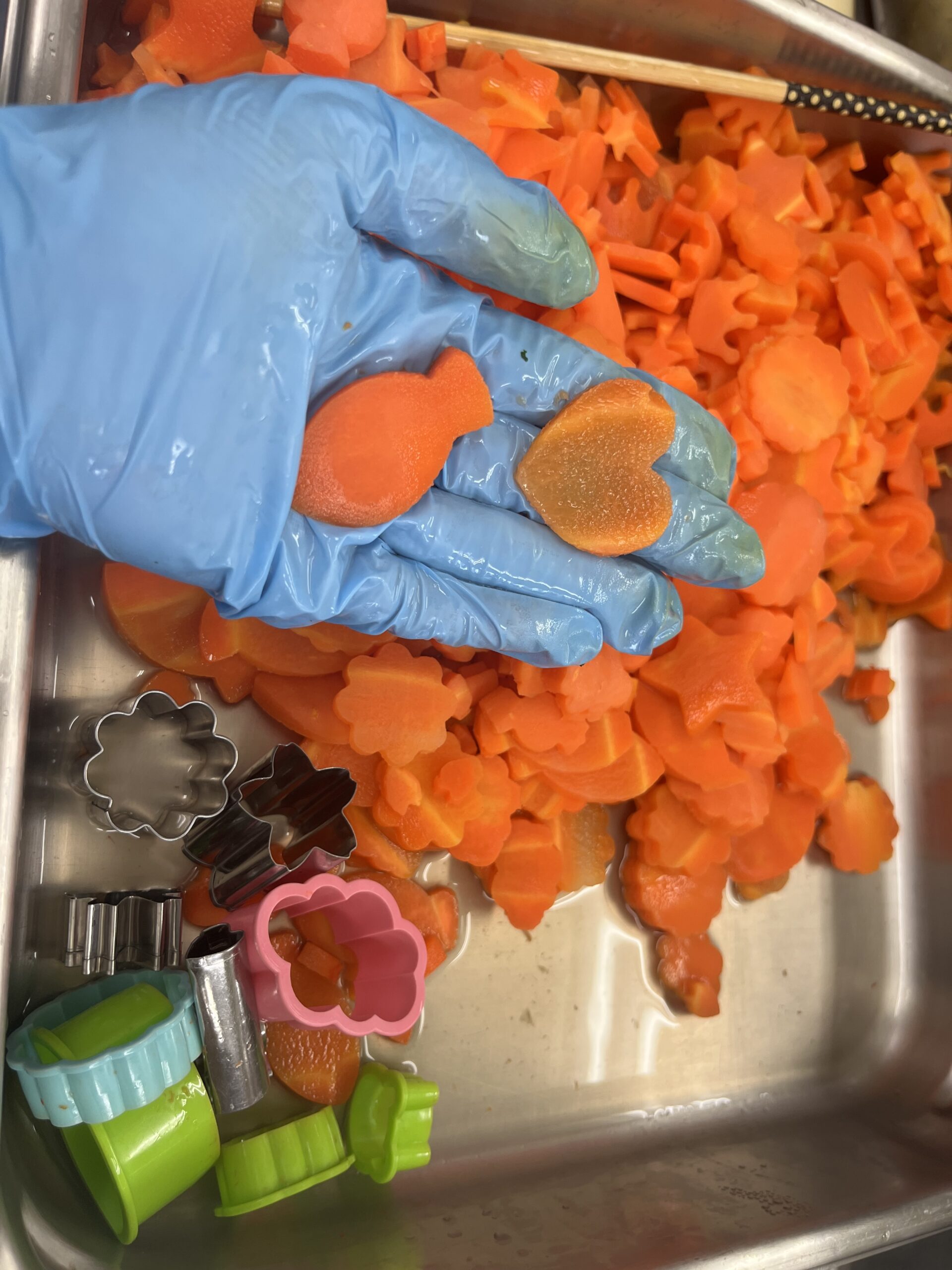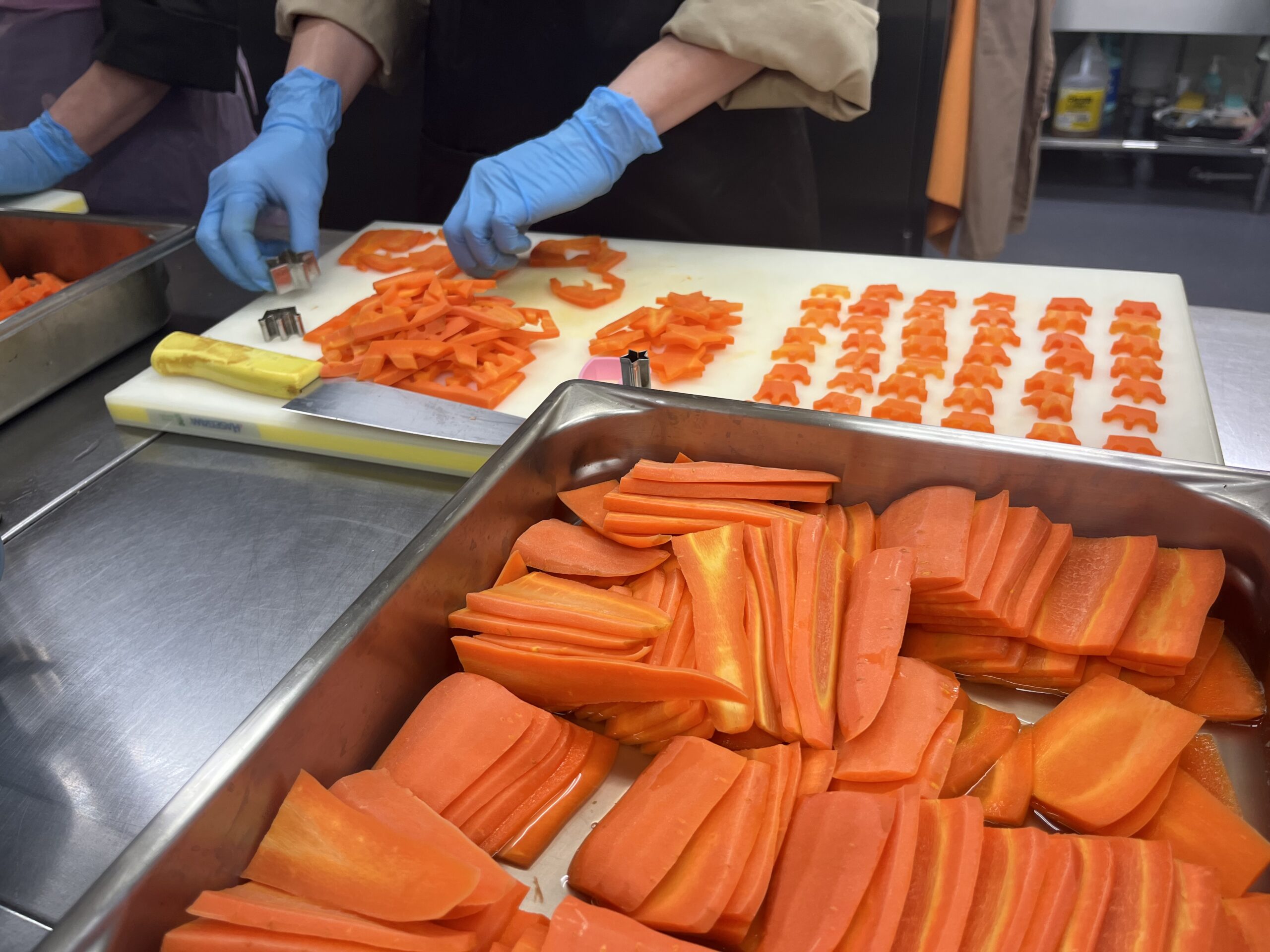 給食の先生方が、練習を頑張っている子ども達の喜ぶ姿を想像しながら、一つ一つ丁寧に型抜き✨