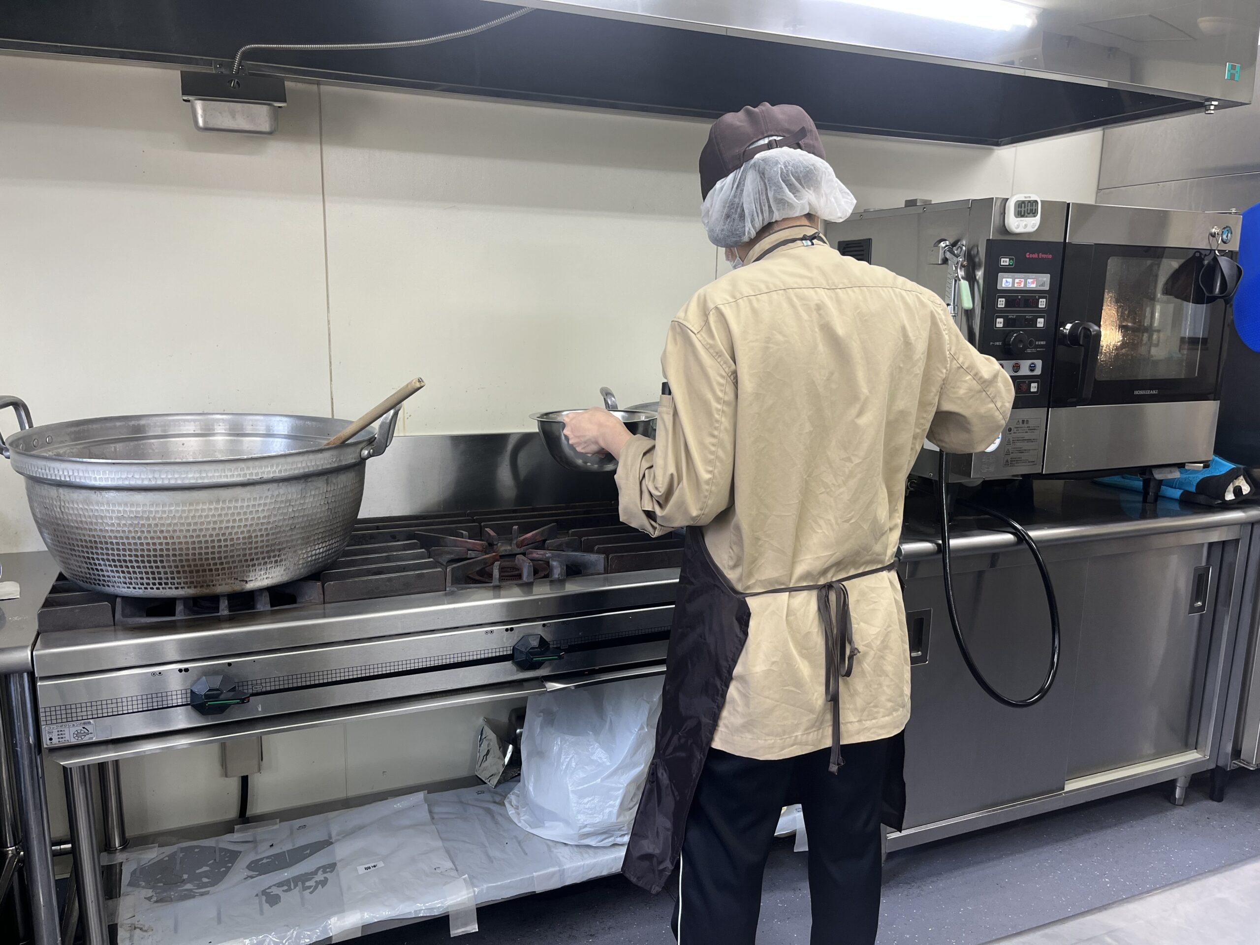 暑さや大きなお鍋もなんのその!子ども達が笑顔で食べる様子を想像しながら、毎日、おいしい給食を作ってます😊