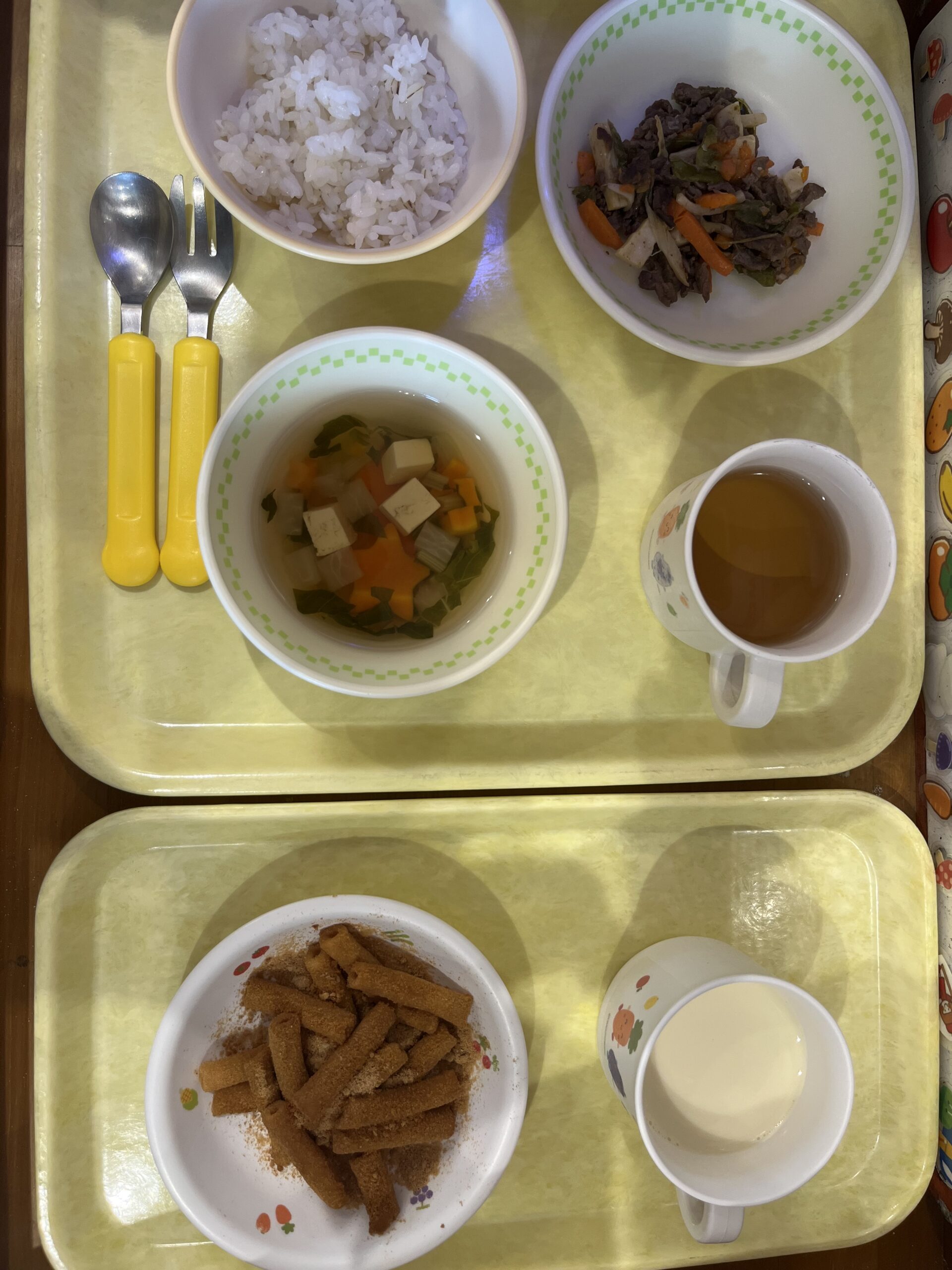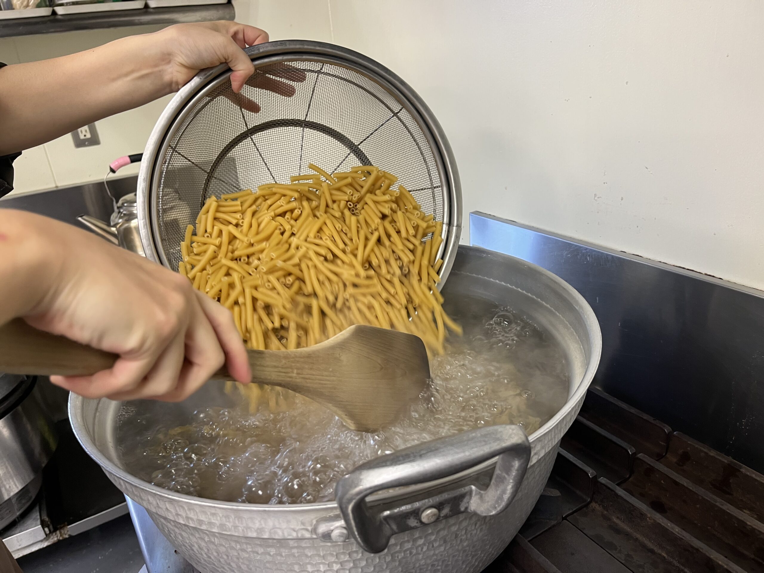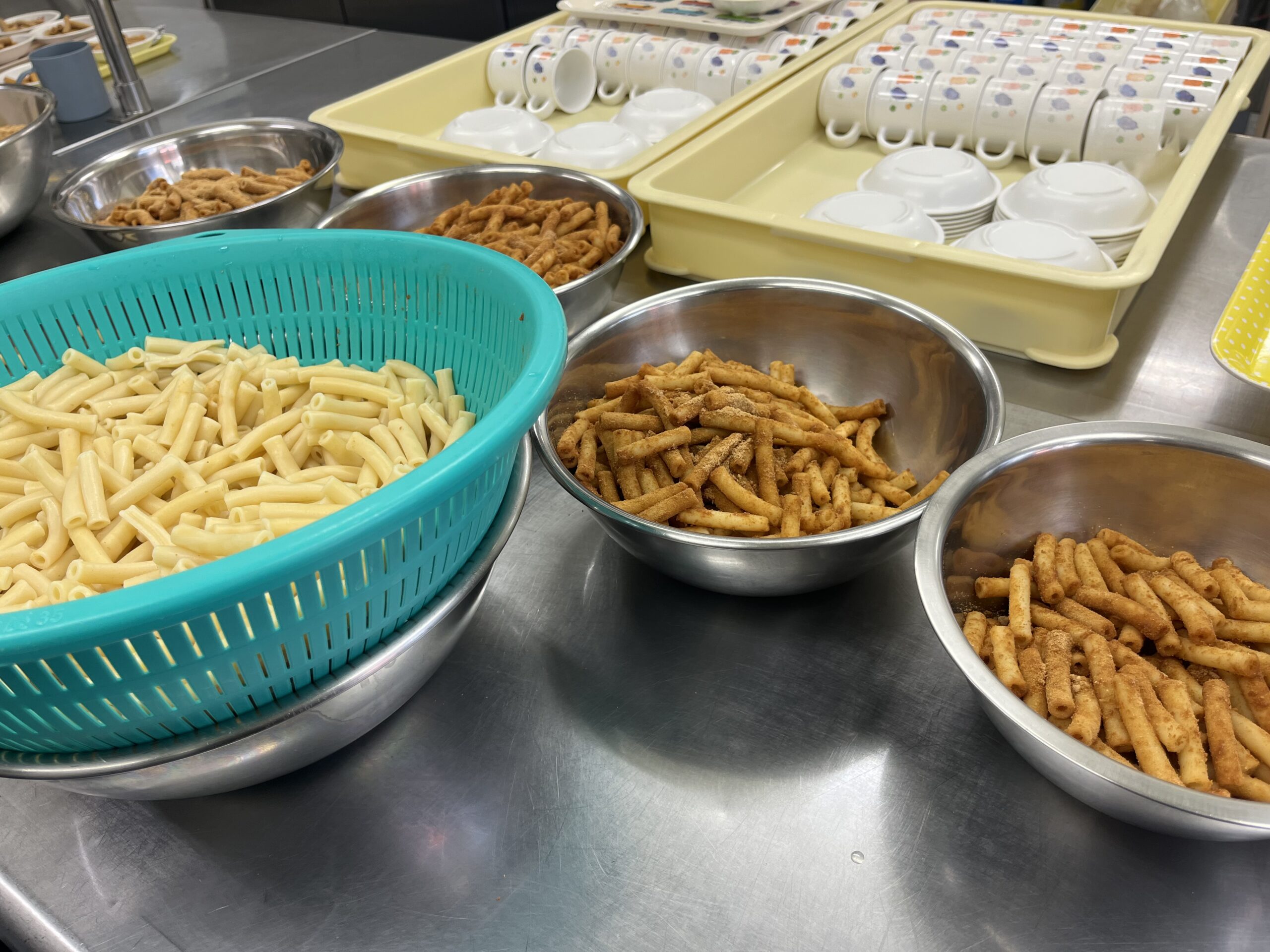 おやつは、子ども達の大好きなマカロニのきな粉和え!