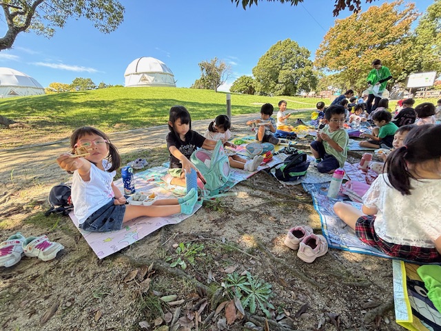 みんな一緒に外で食べるお弁当は美味しかったようです。