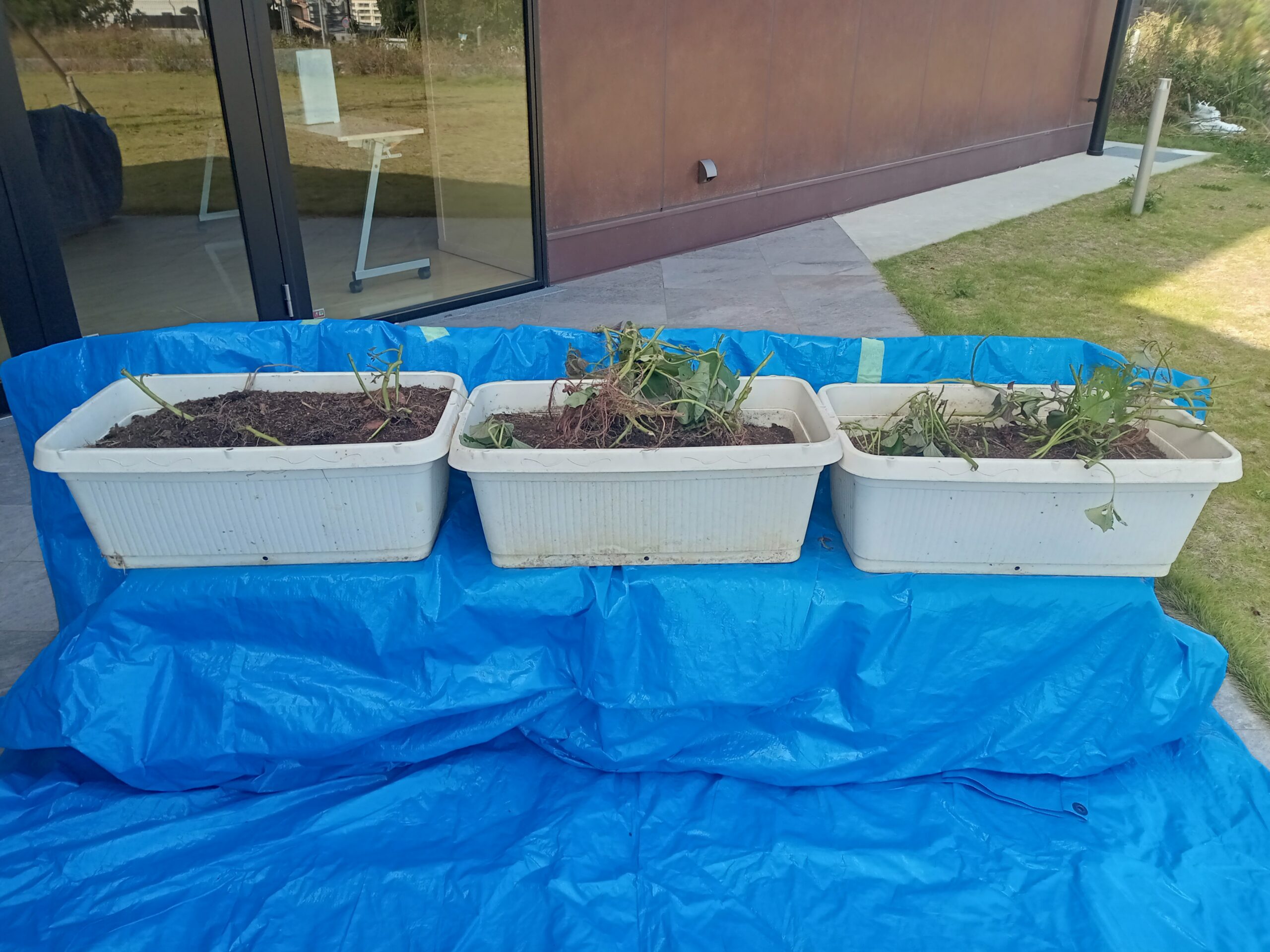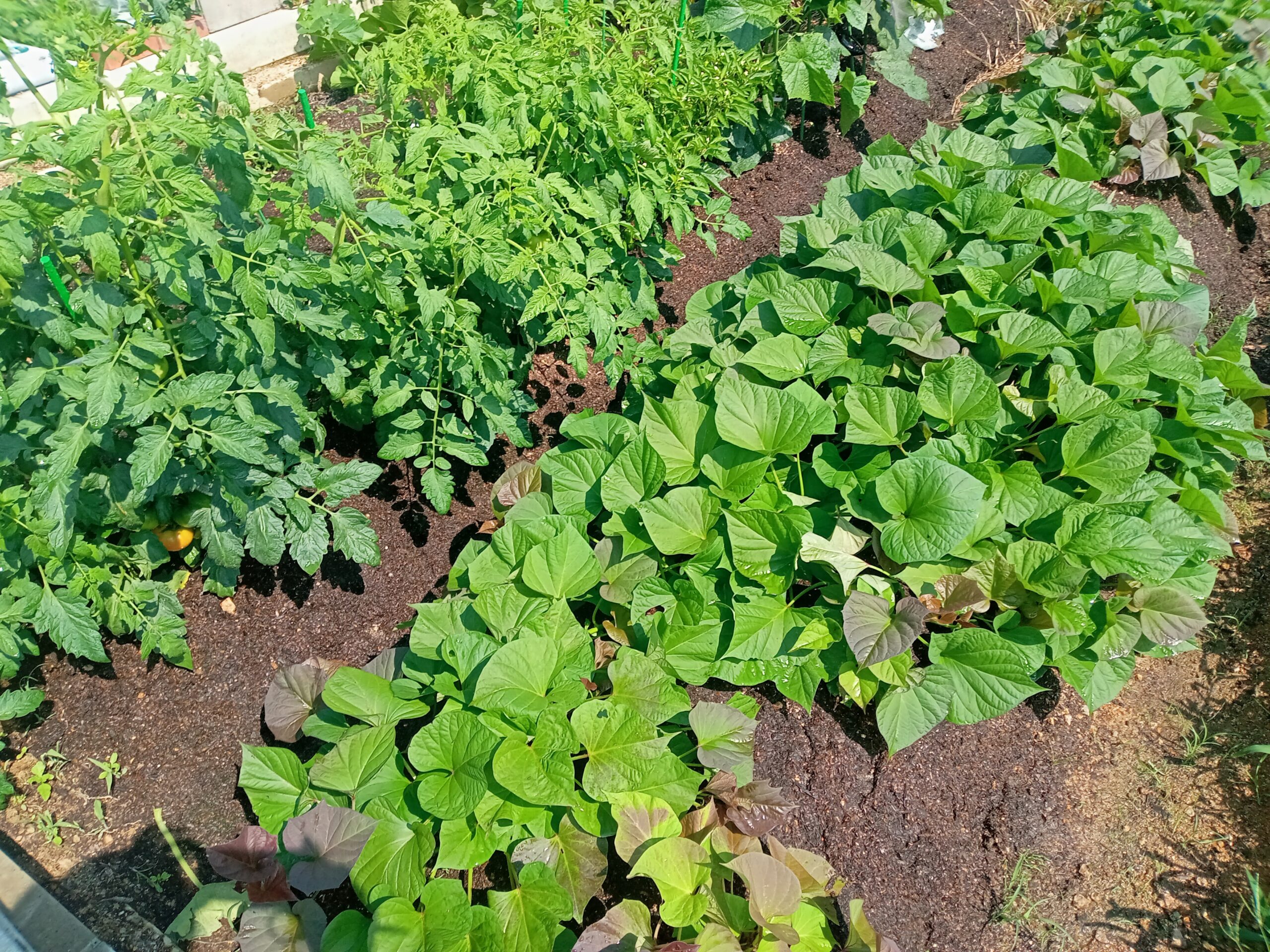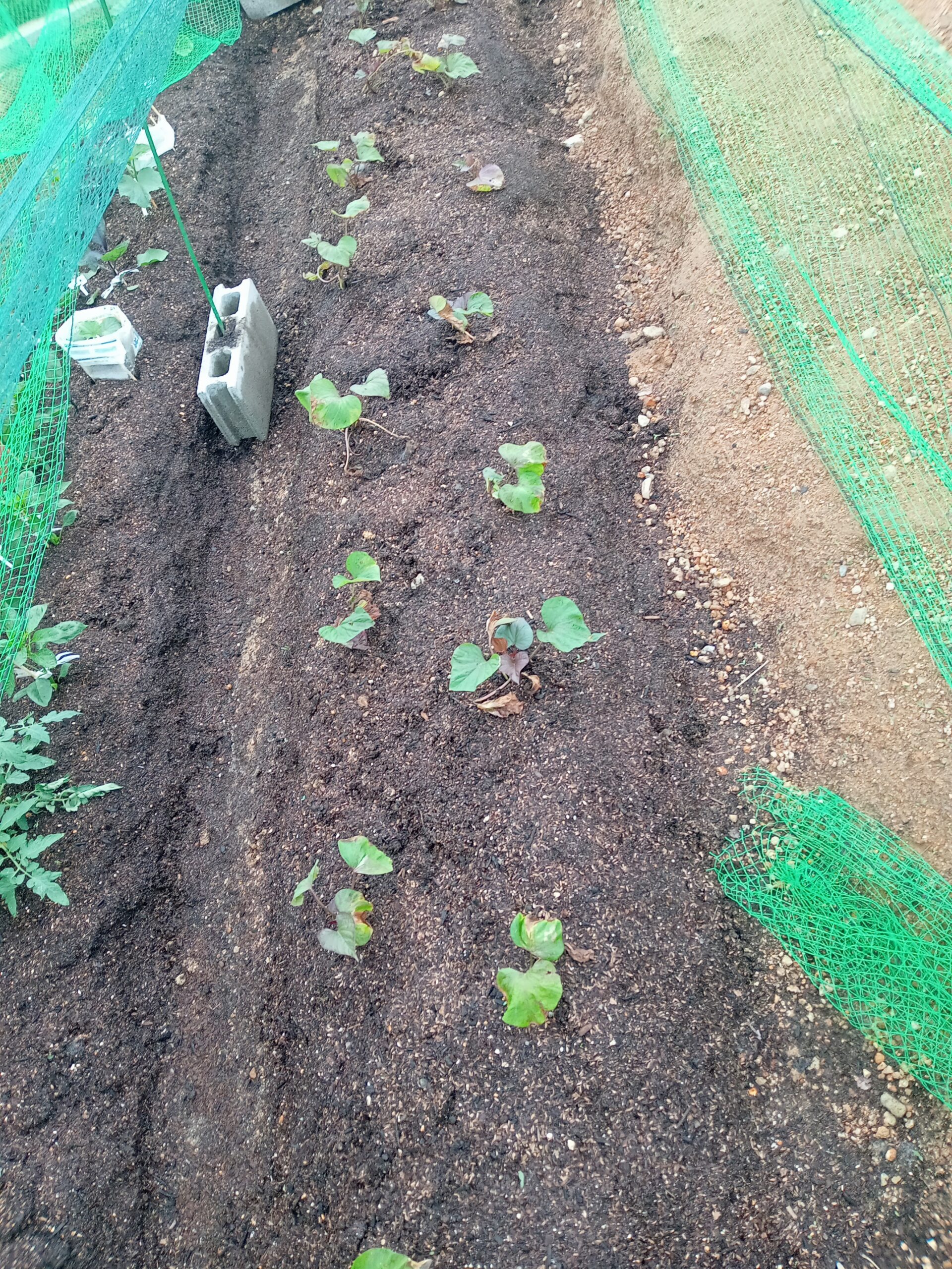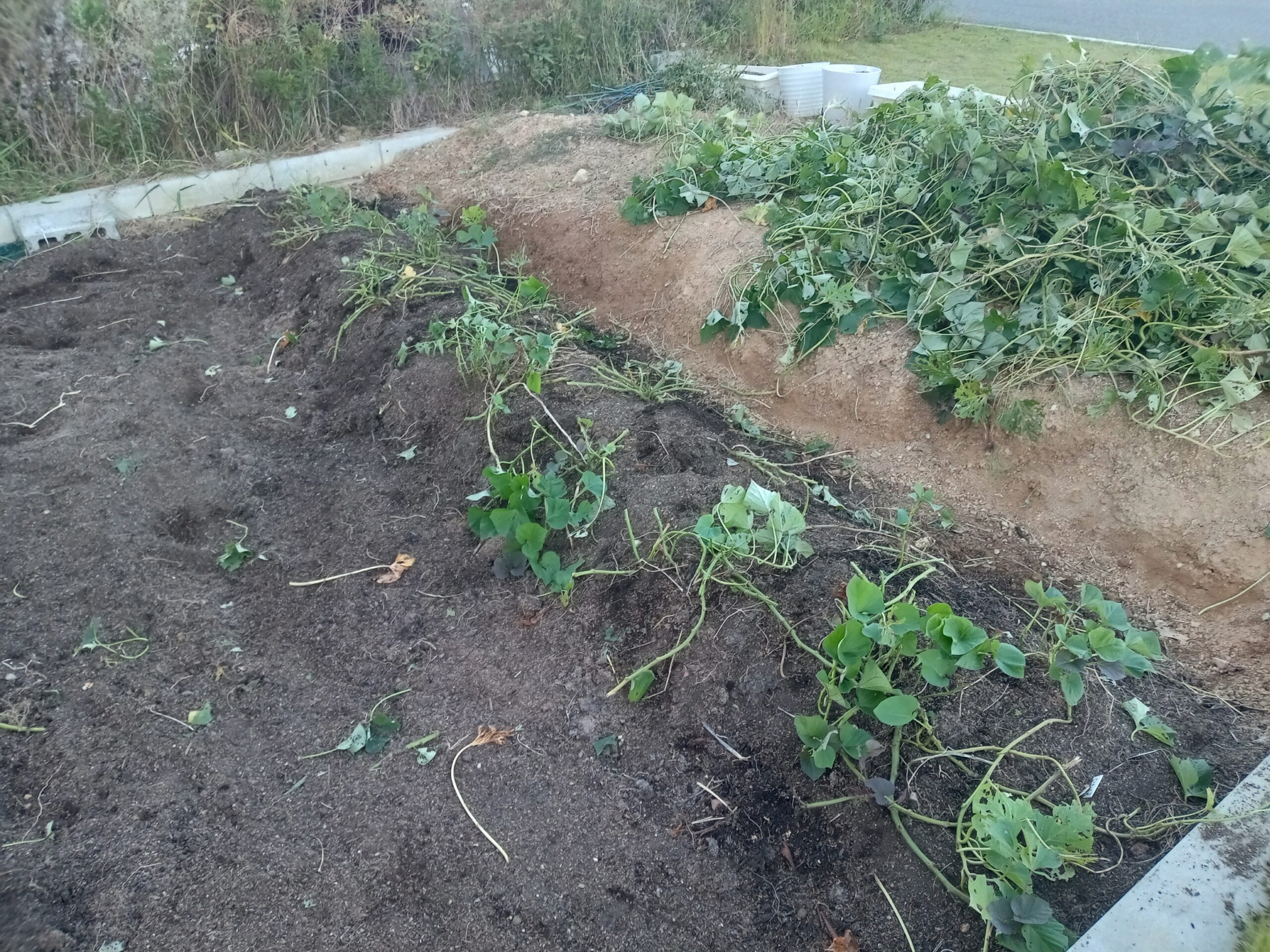 野菜の本を確認すると、本来なら“つる返し”という作業が必要だったそうですが、自然に任せた結果、、、つるが隣の畝を乗り越えて成長していました💦