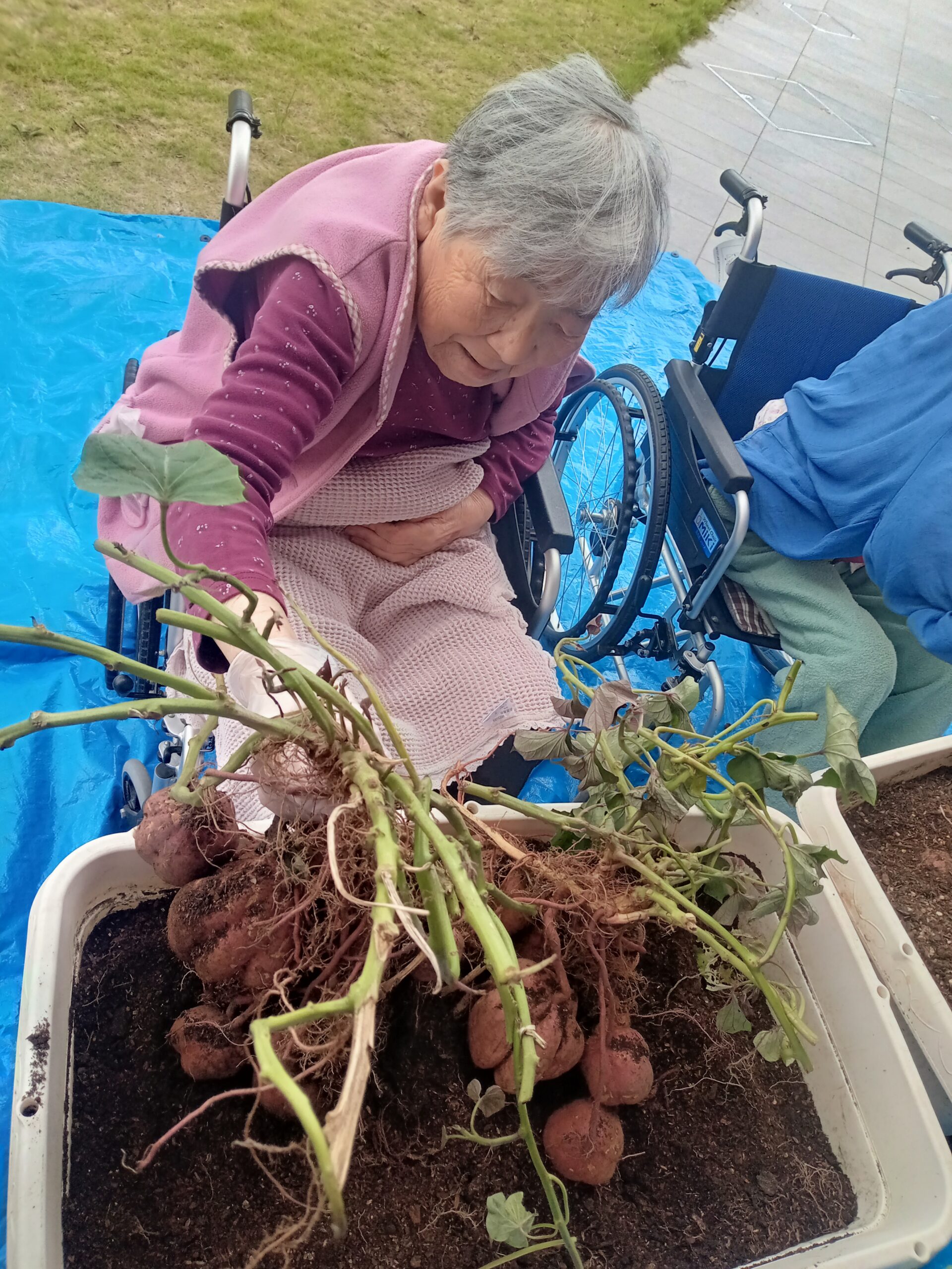 そして、ケアハウスの足腰のしっかりされた有志の方々に、畑でお芋ほりをしていただきました🍠