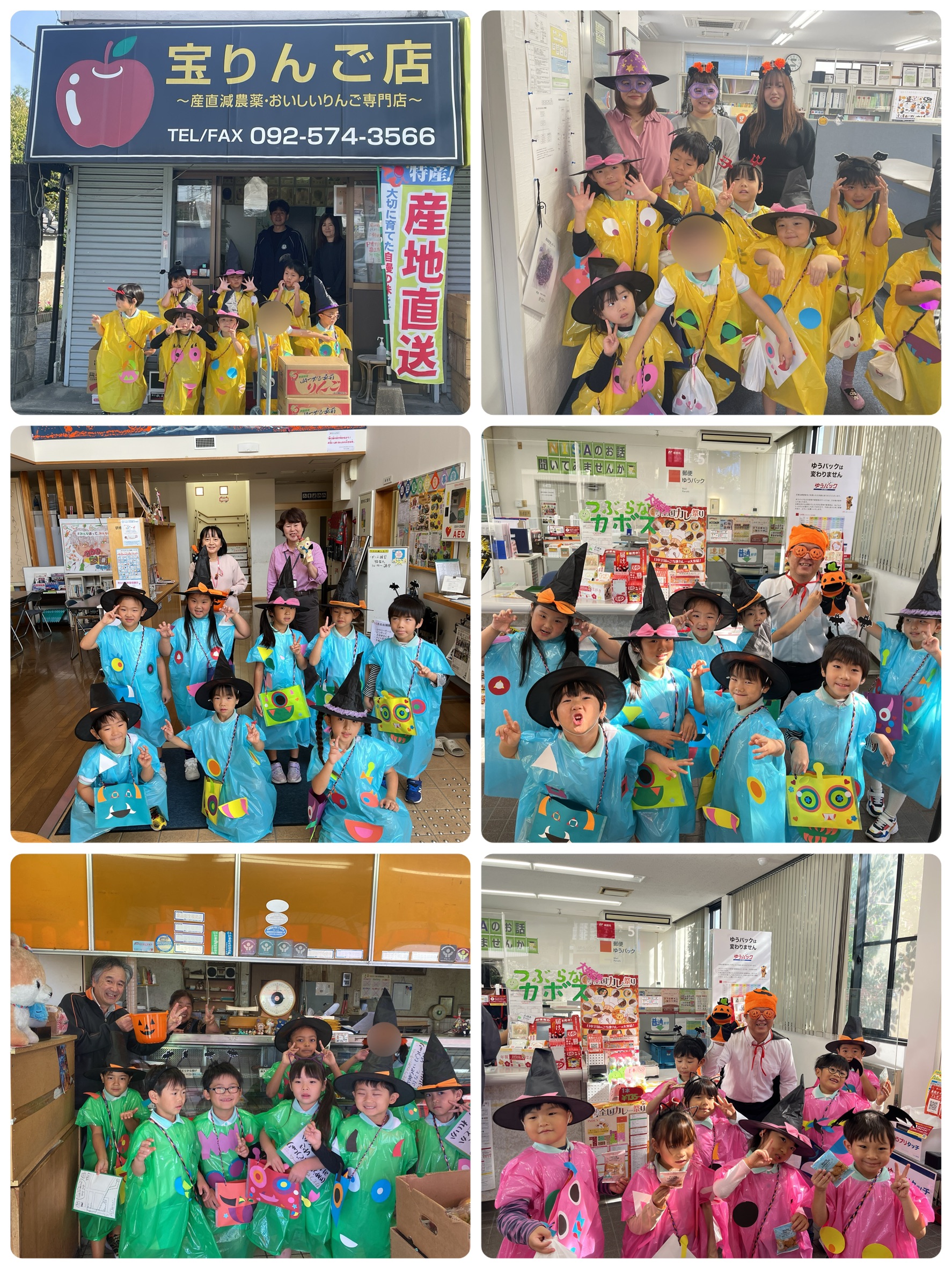 麦野郵便局、ほんだ肉屋、板付公民館、宝りんご、(株)都市開発に 「trick or treatお菓子をくれなきゃいたずらするぞぉー!!」と 元気よく各施設を訪ねてお菓子をもらい大喜びでした。 毎日、ハロウィンだったらな…♡と子どもたちの心の中の声も聞こえてきました(*^-^*)