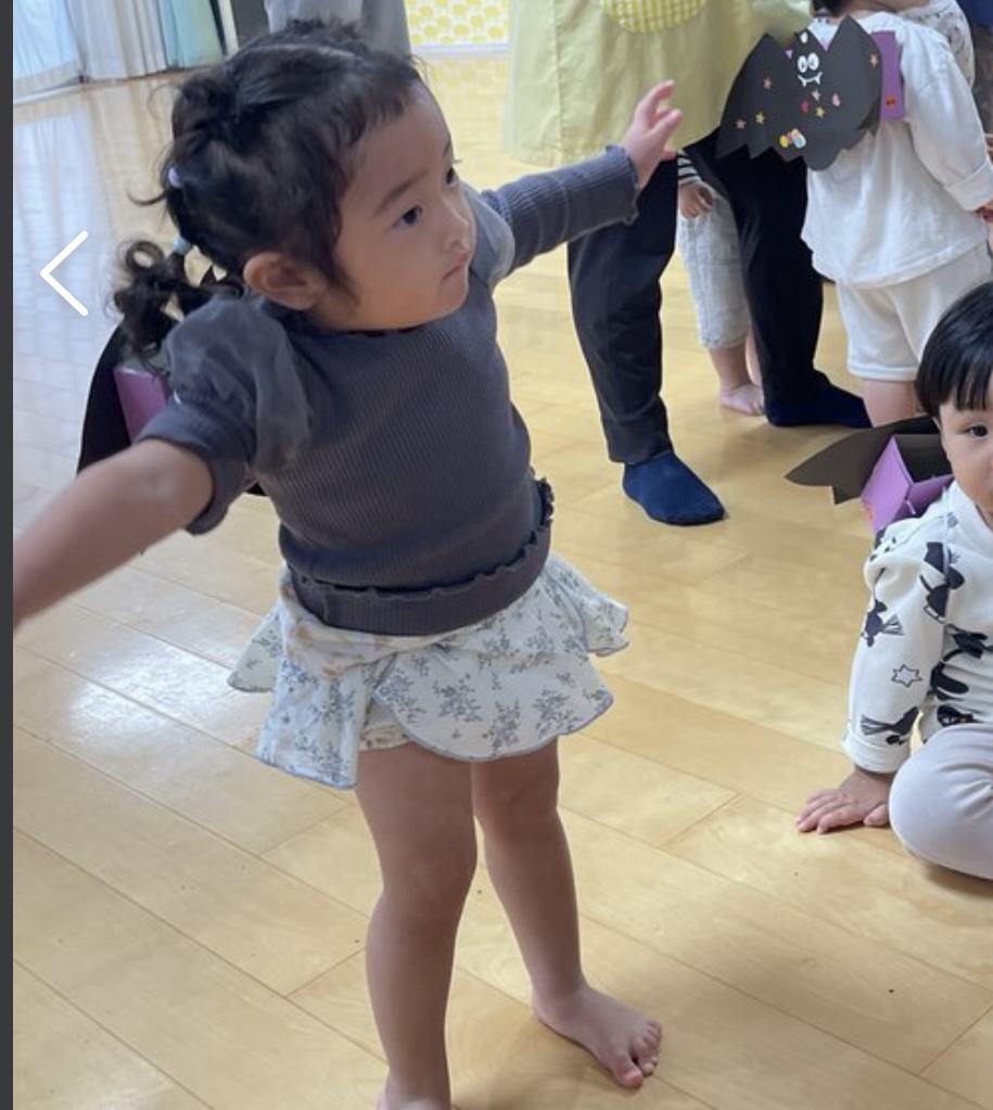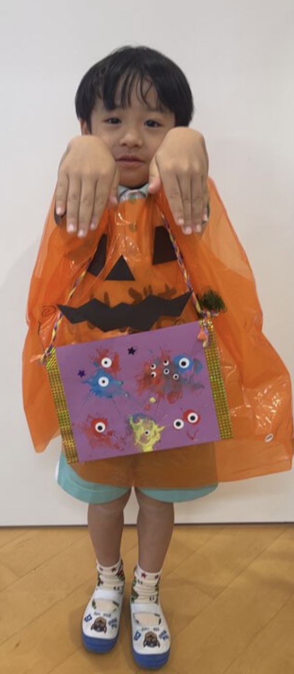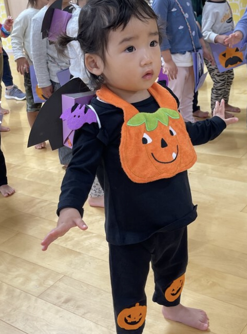 一緒にグーチョキパーでパンプキンを踊って、トリックオアトリートと、お菓子をもらい笑顔いっぱいです☺︎