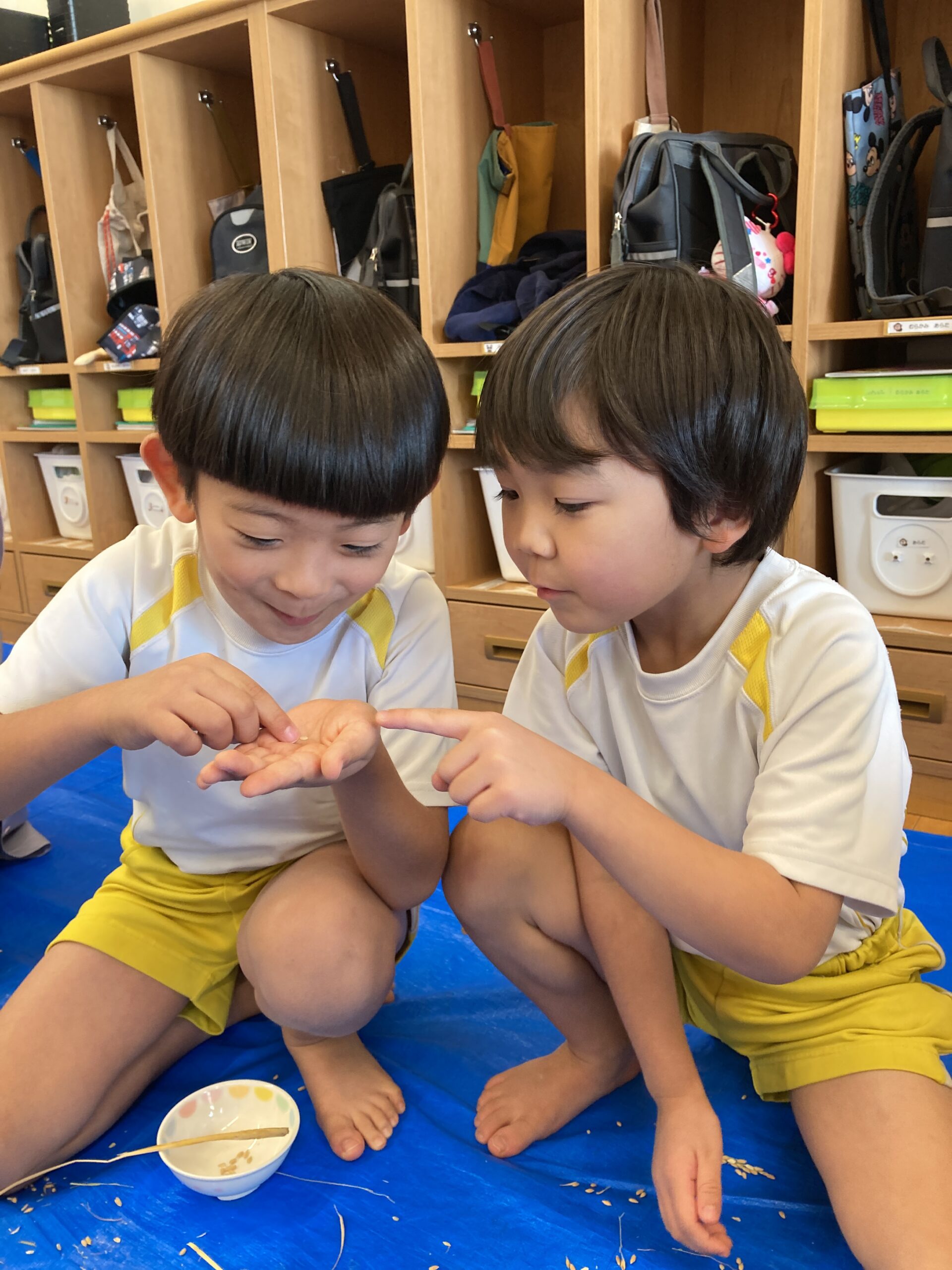 白米や米ぬかを触ったり、匂いをかいだり・・・探求心が沢山うまれてました🤩