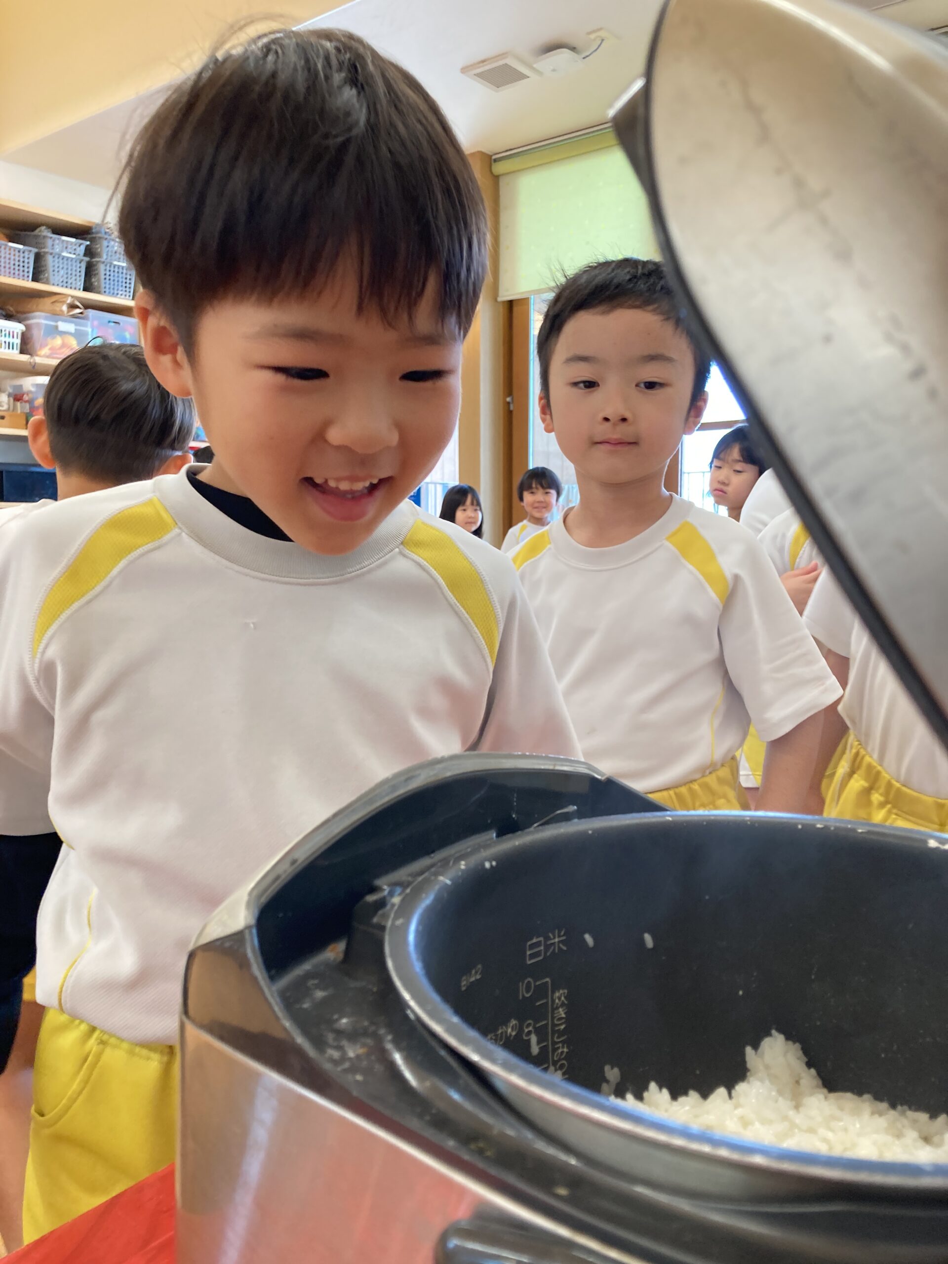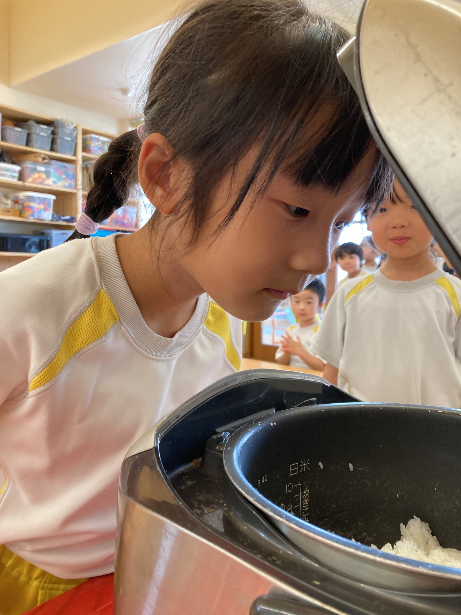 炊きたての匂いかいで「おいしそう~💛」と・・・