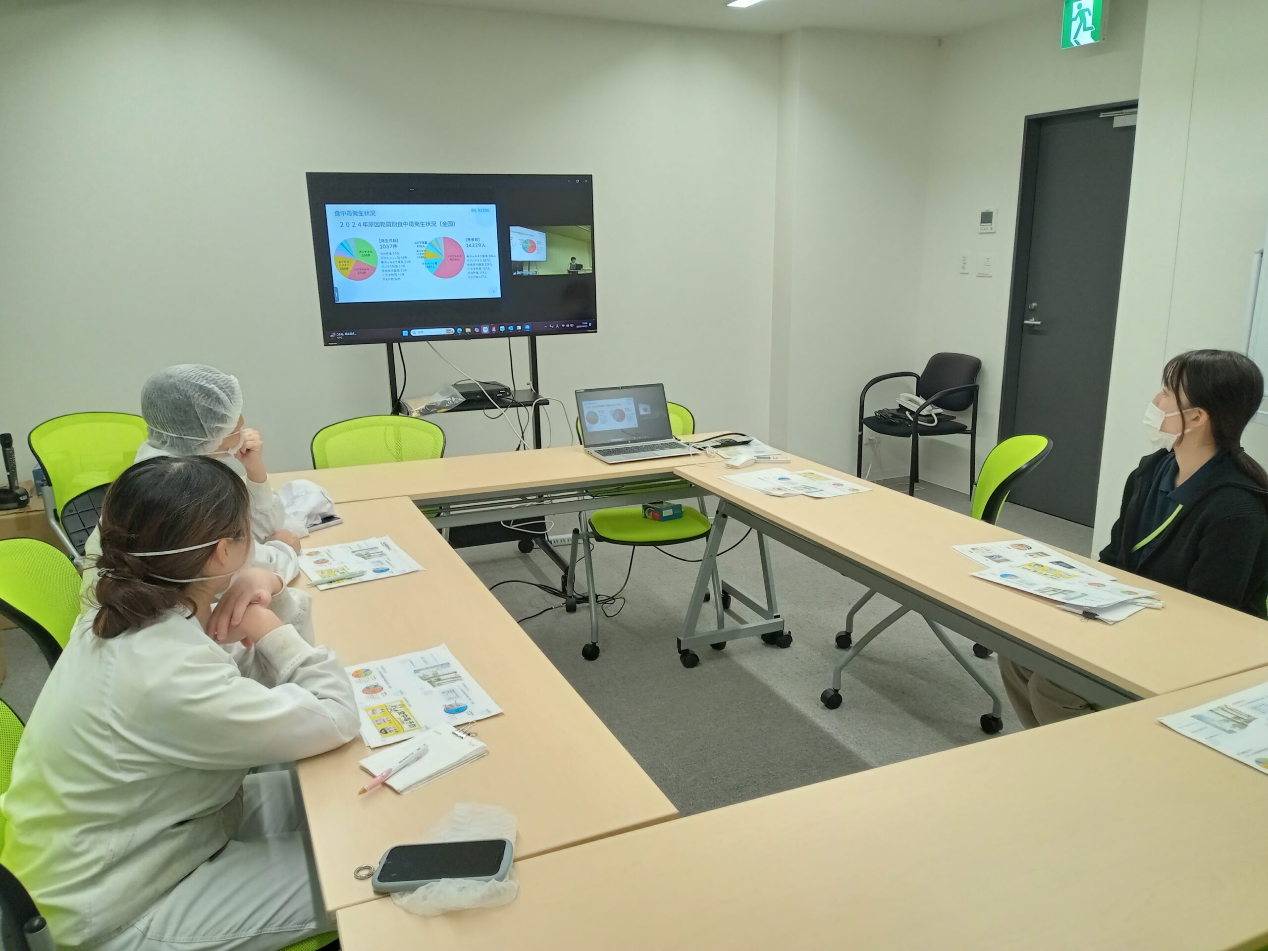 研修には2つテーマがあり、1つは衛生・食中毒予防関係のお話で、今年のテーマは『食品の温度管理』でした。もう1つは年によって様々なテーマで、今年は『食の多様性への対応』でした。