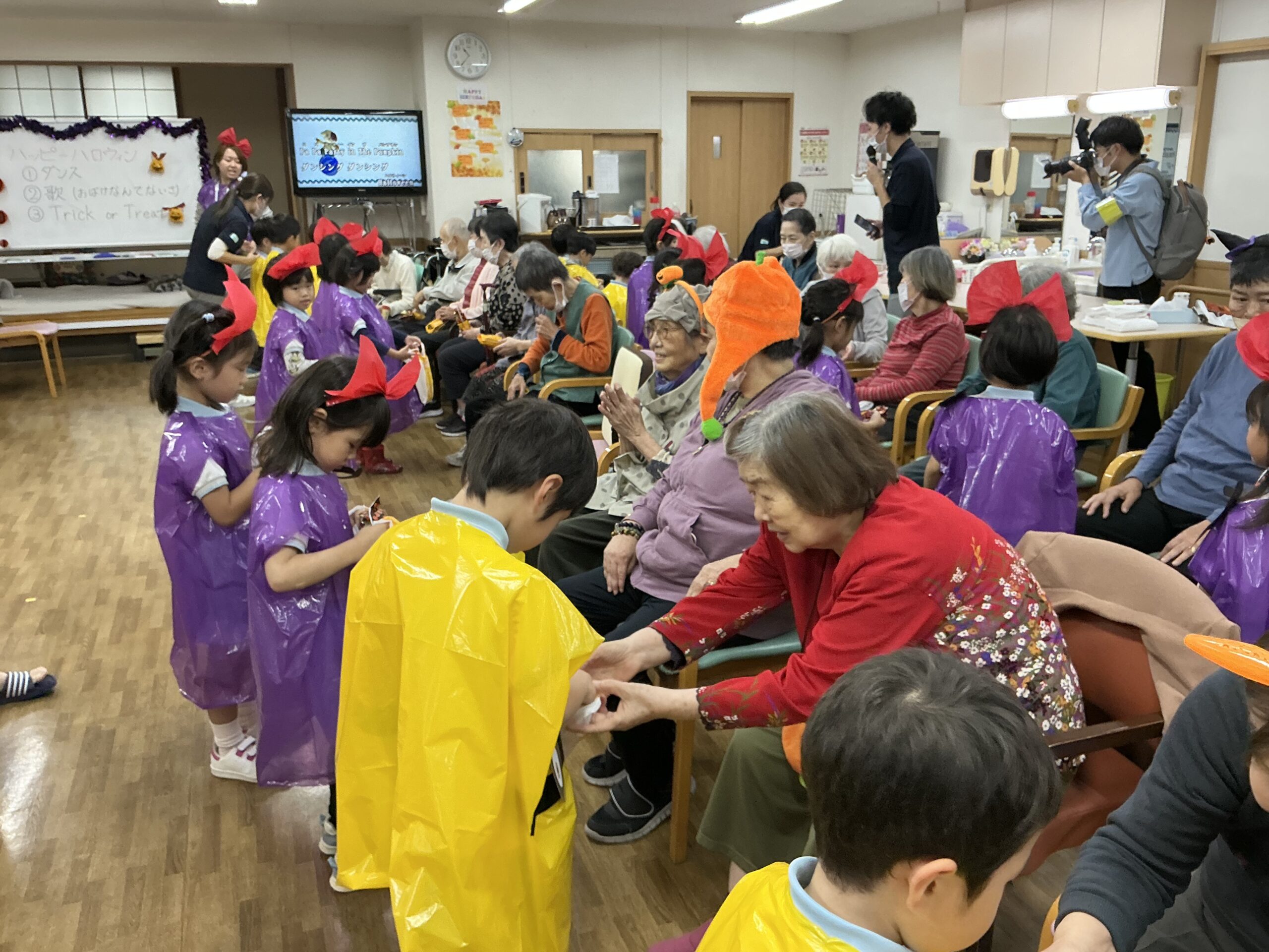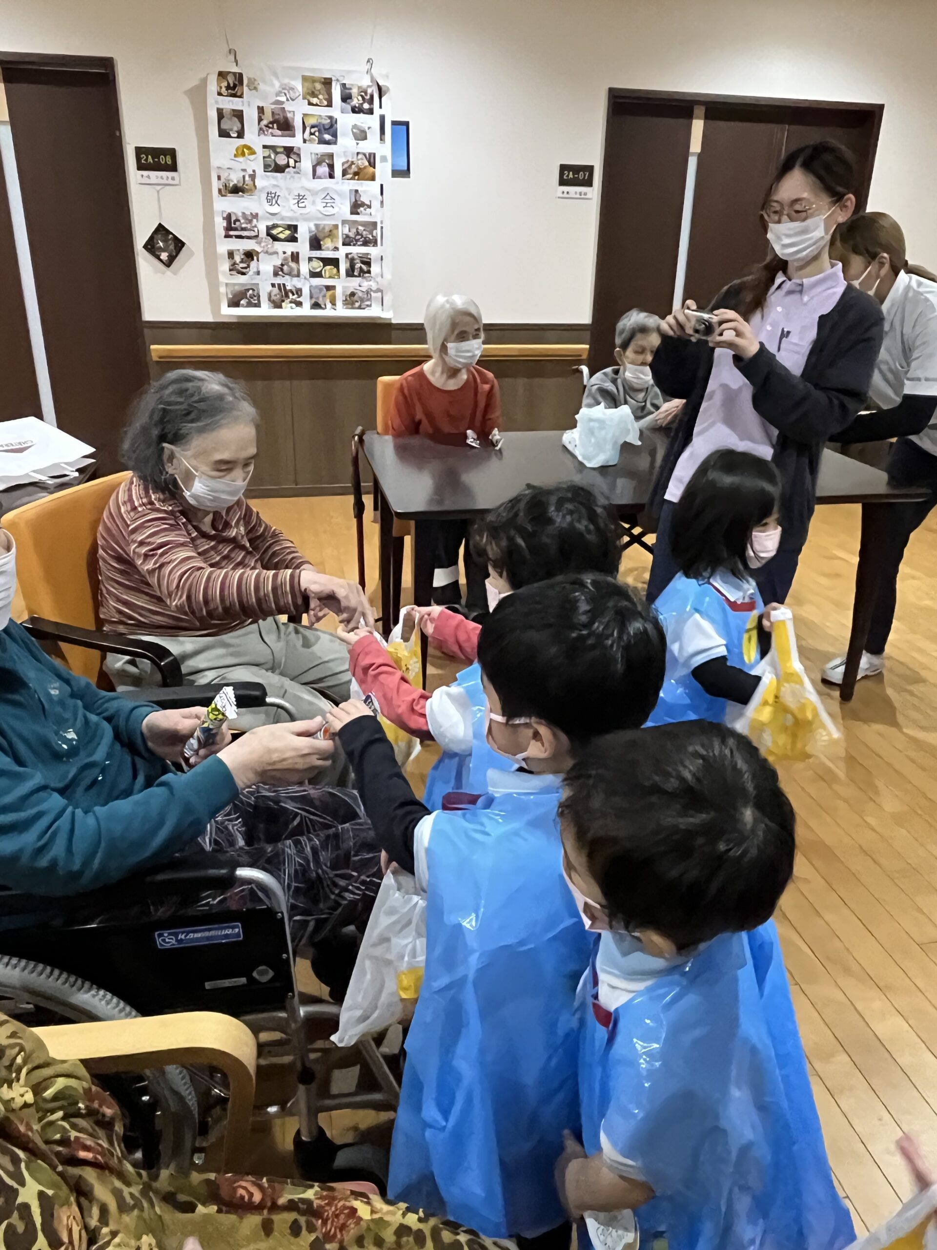 3歳児クラスそら組、ディグニティ内浜さんにもお邪魔しました😊少し緊張しながらもお菓子をもらい喜んでいました✨