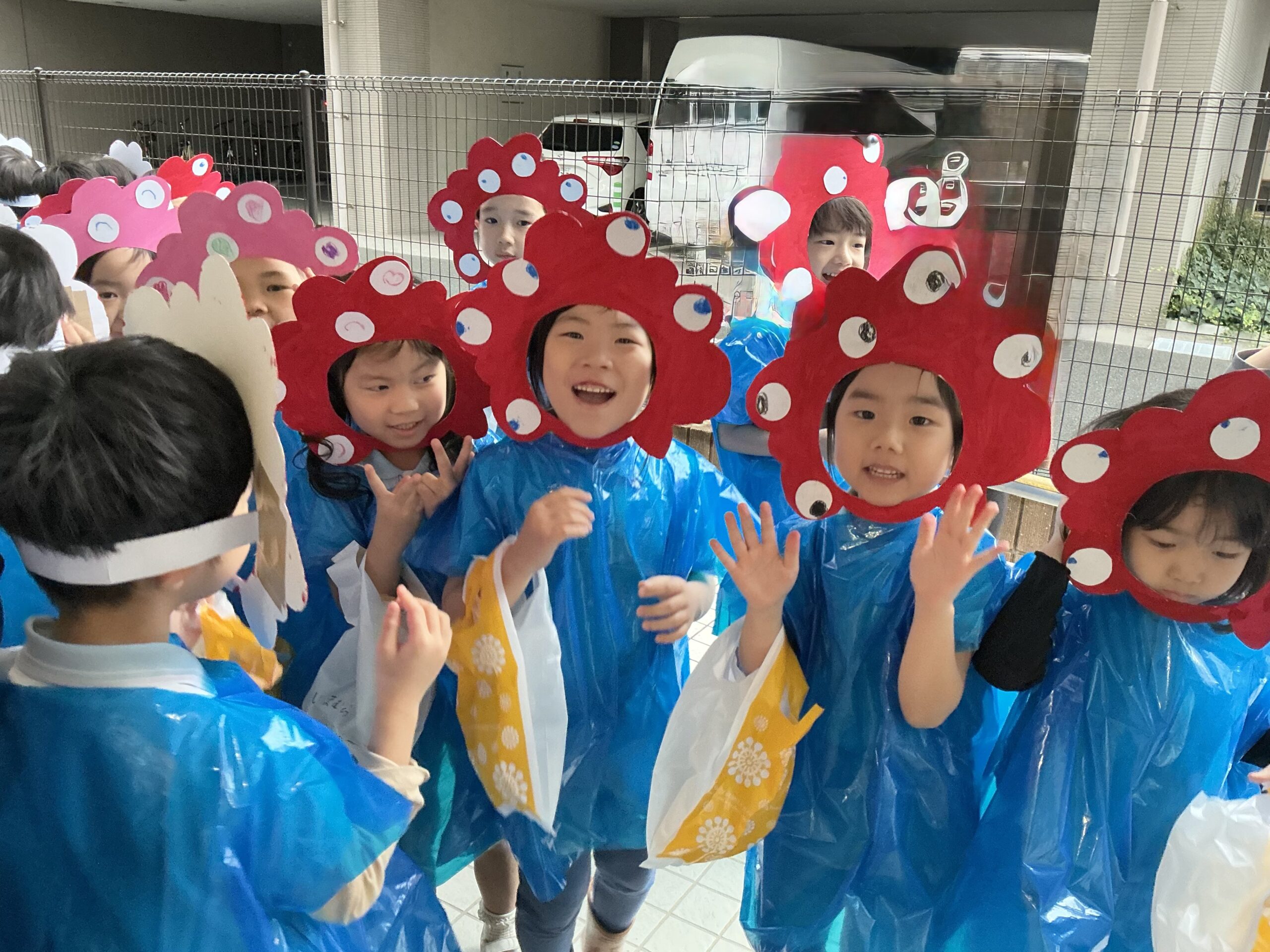 5歳児クラスひかり組はミャクミャクです✨ミャクミャクの目は6個で1個はしっぽのところにあるんだよ!と子ども達が教えてくれました😊