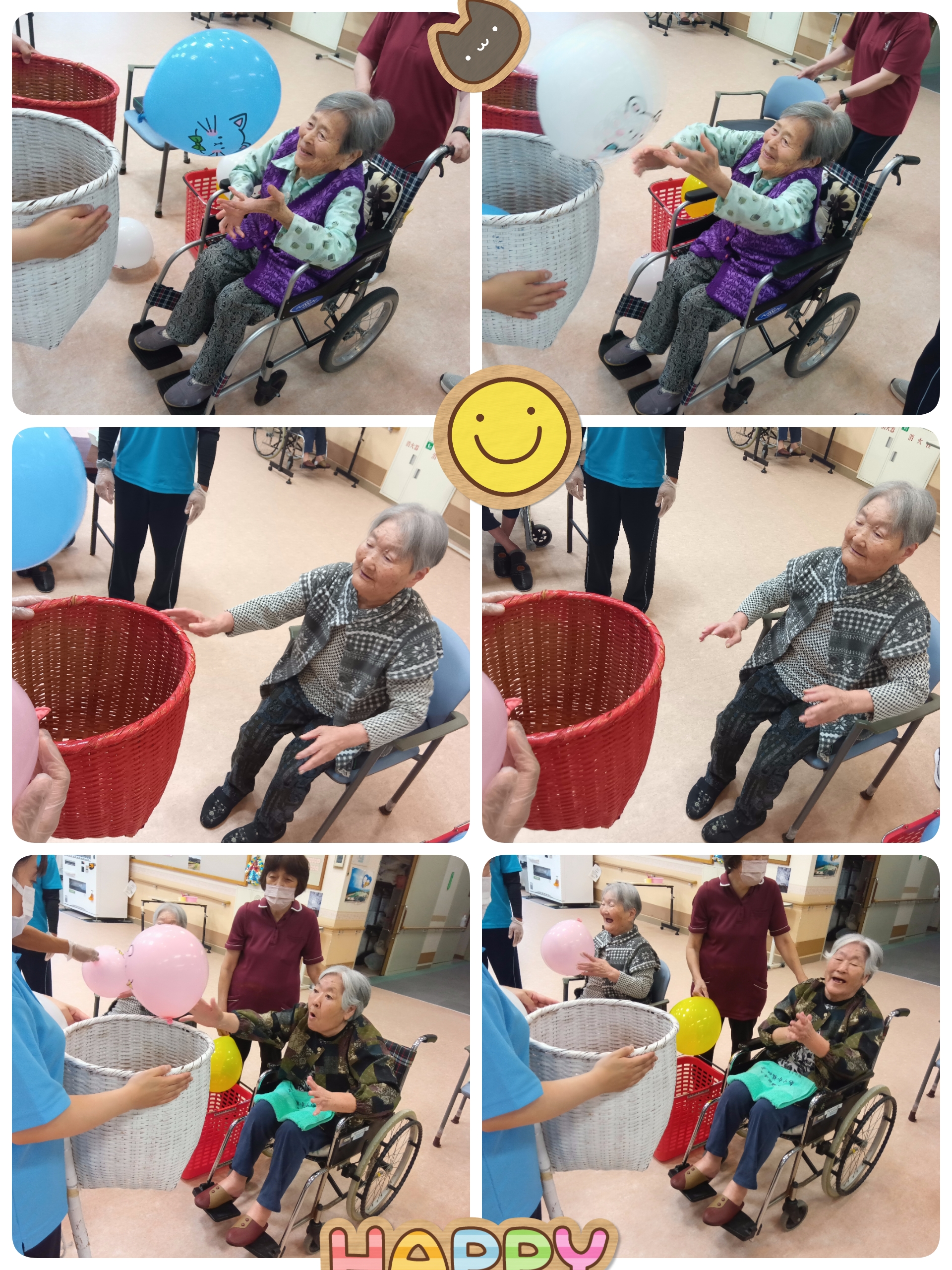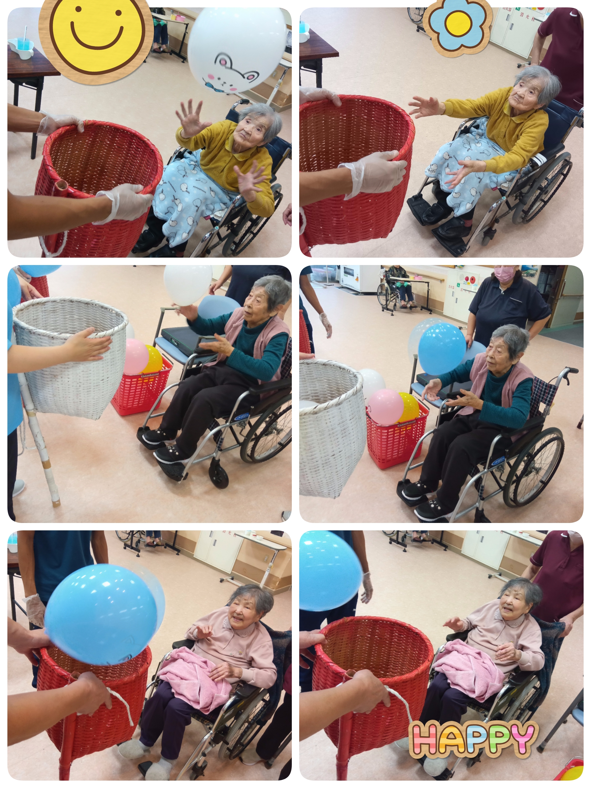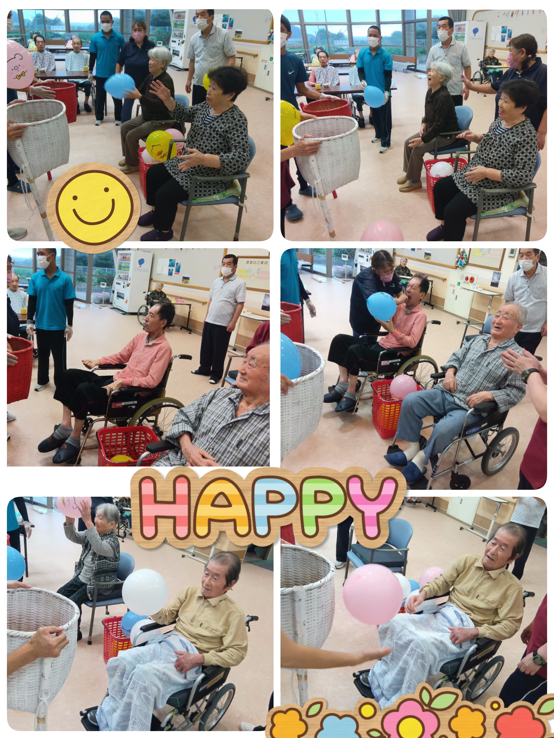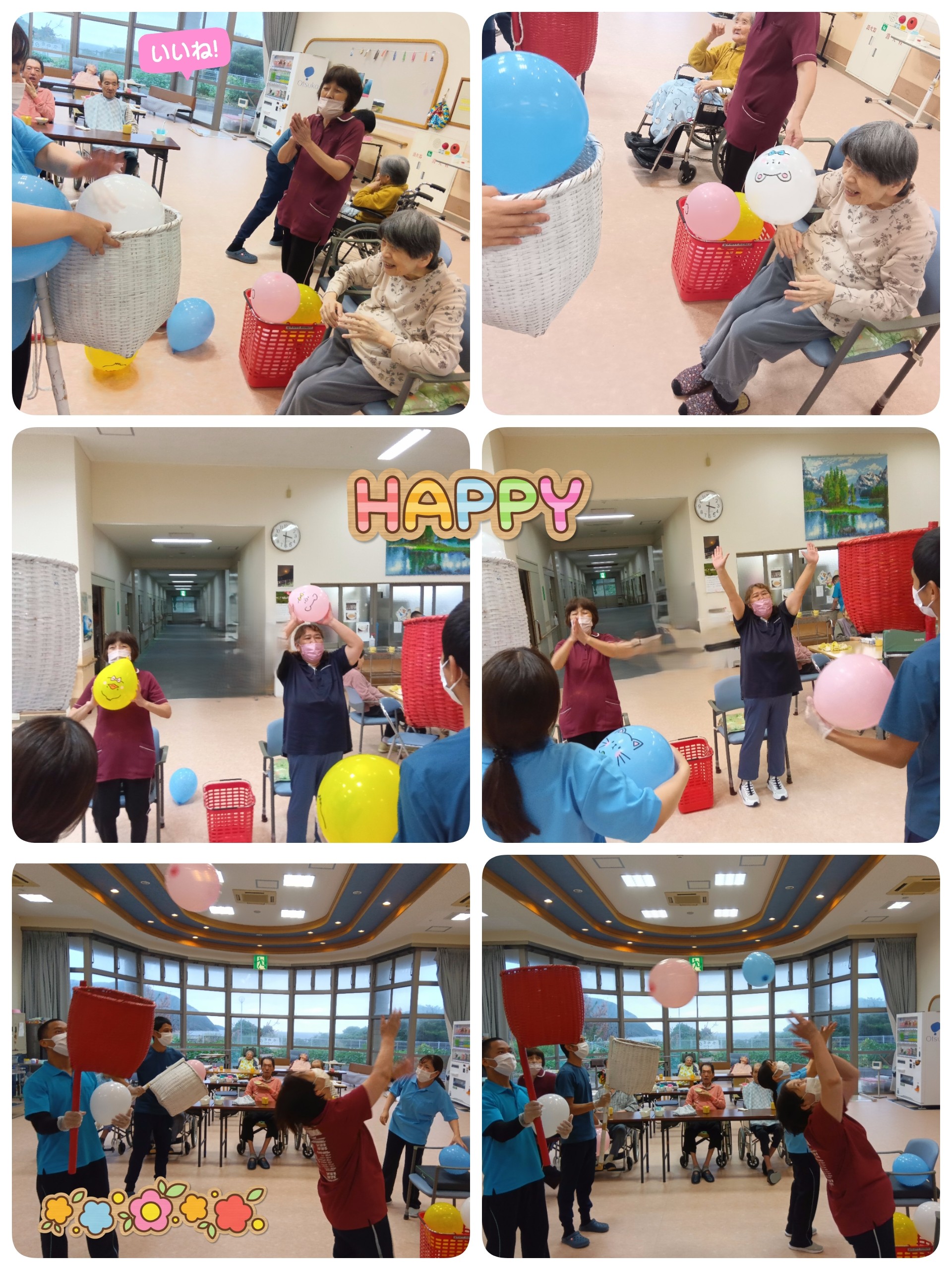 赤かごと白かごの中にどれだけ風船お入れれるかを競うレクレーションを行いました。
