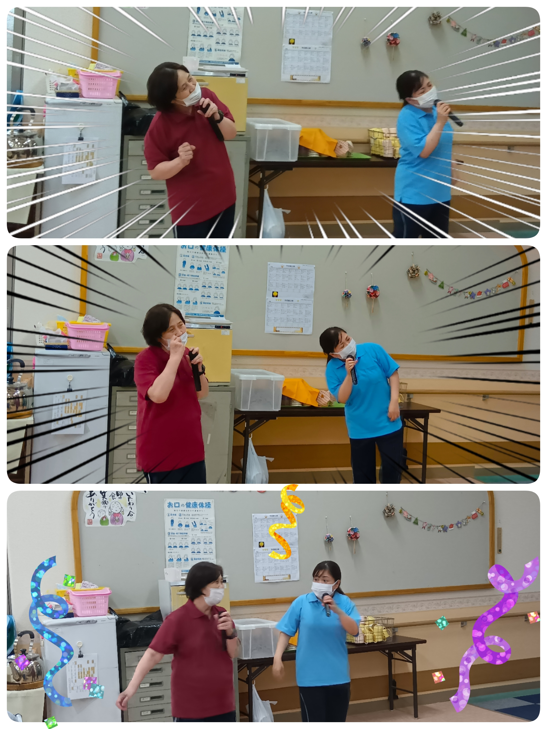 身体も温もった後は利用者様と職員による恒例のカラオケです。