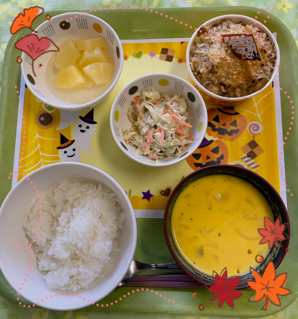 焼きたて熱々のグラタンにご利用者様もほぼ完食でした。
