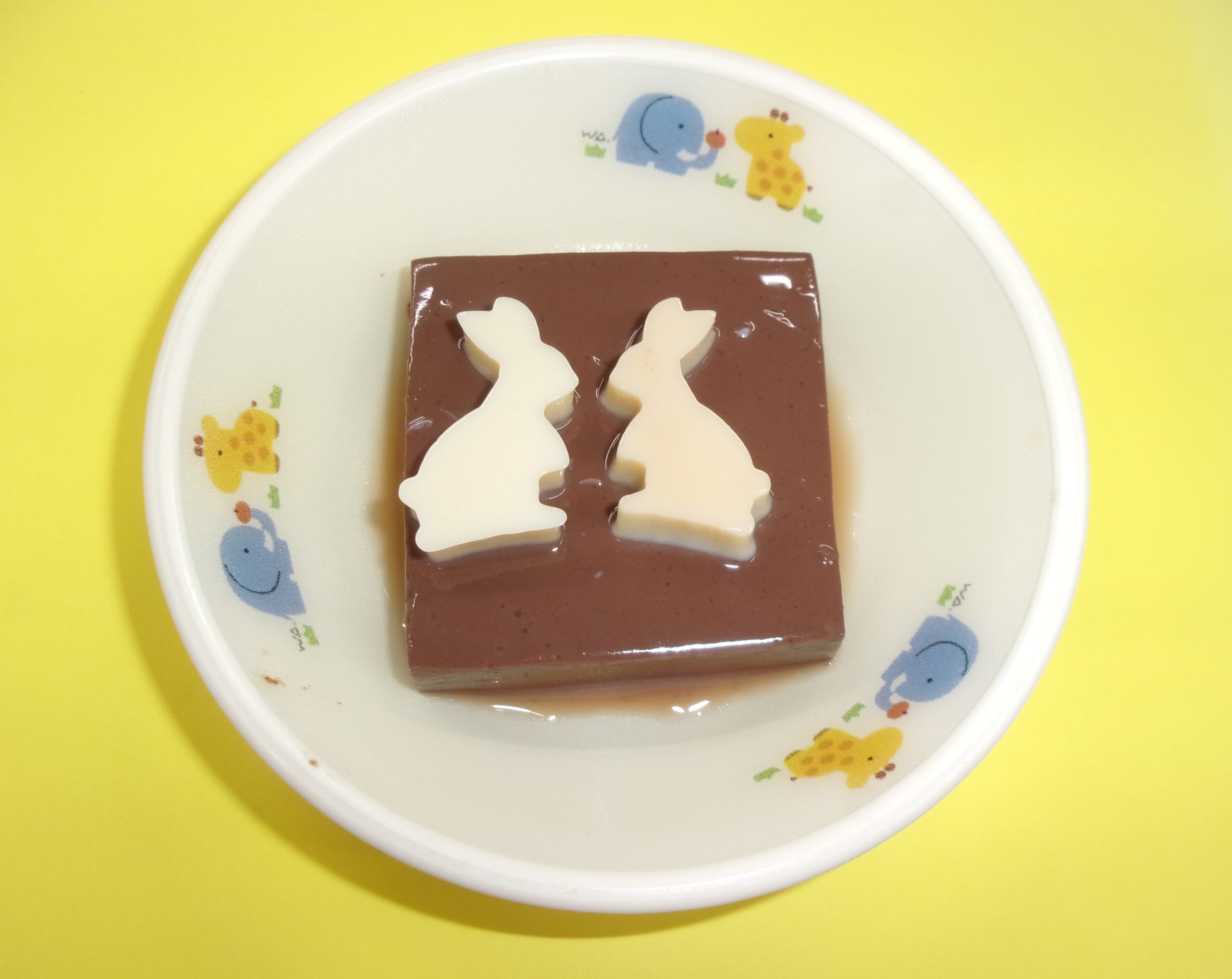 ココアゼリーの上に豆乳ゼリーのうさぎを飾りました🐰こどもたちの喜ぶ姿が見られて良かったです。夜はきれいな月も見られました。