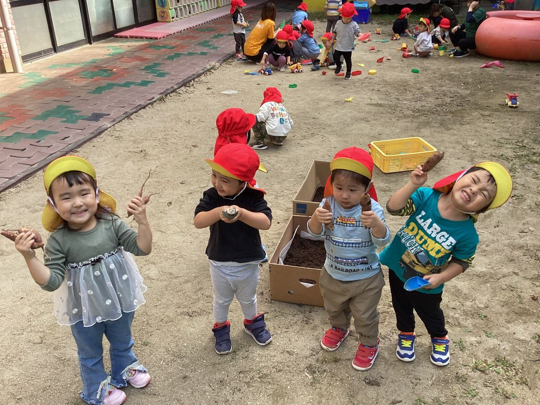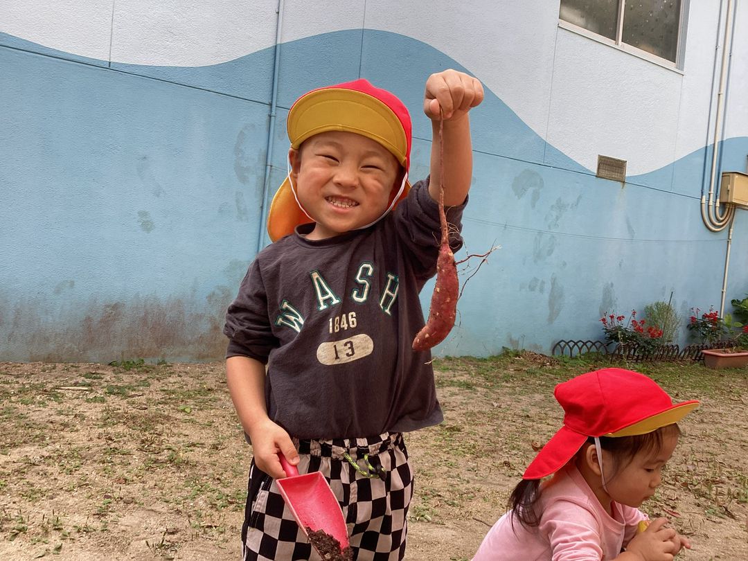 食育の一環として、本物の土の感触、匂い、芋の収穫!!