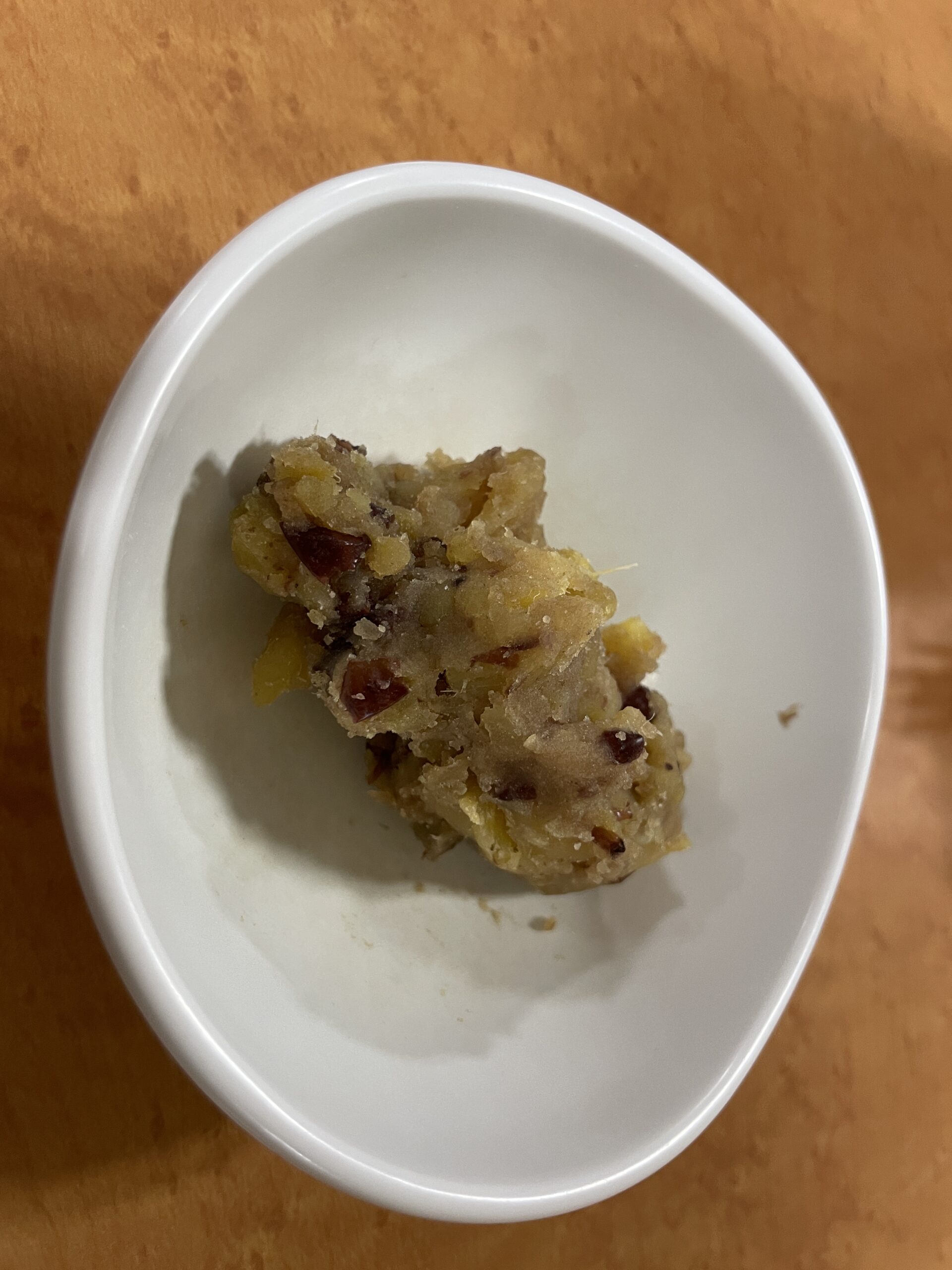 小さくつぶしていきます。それを小さな三角のおにぎりにしていただくおやつです。