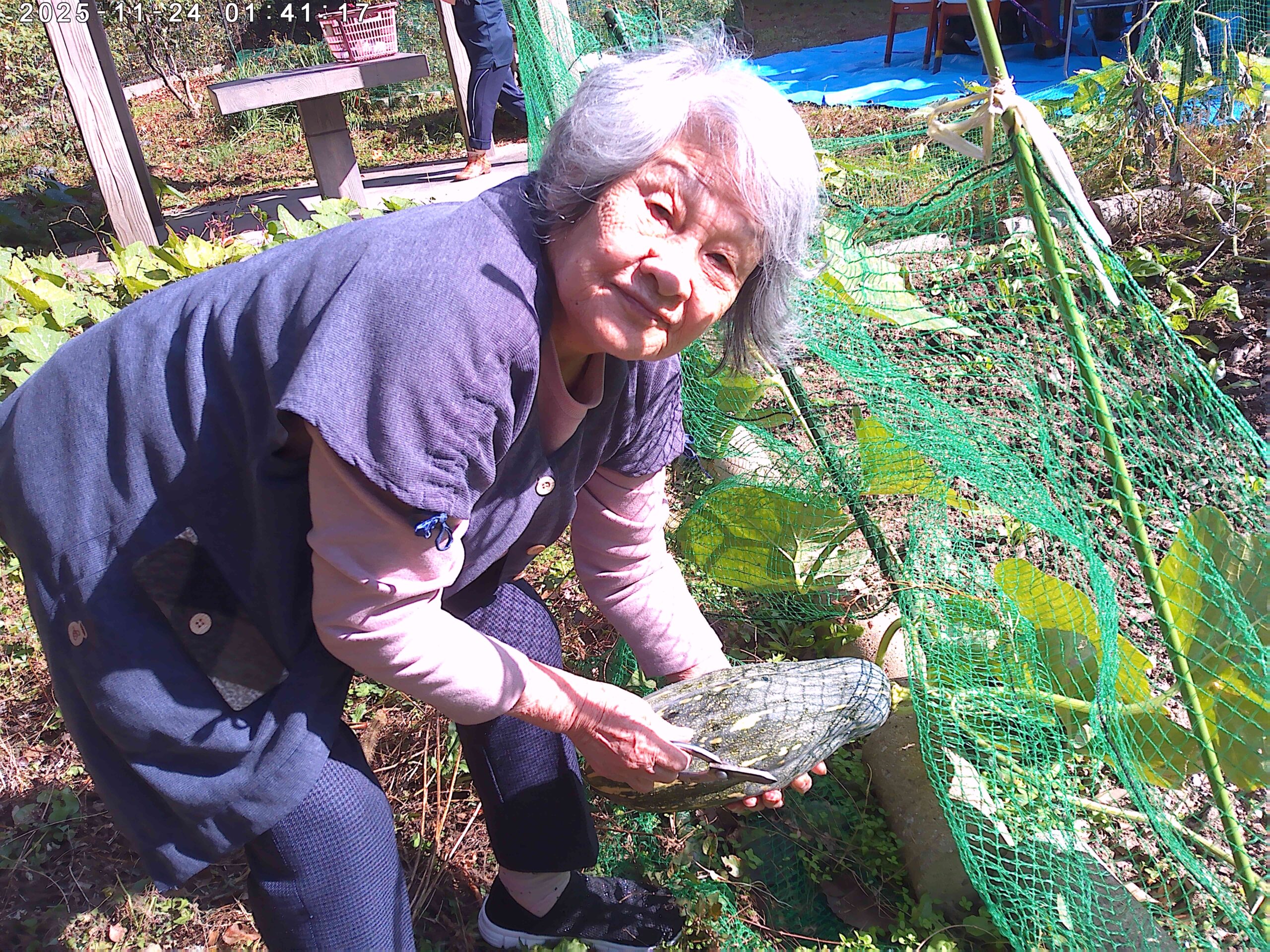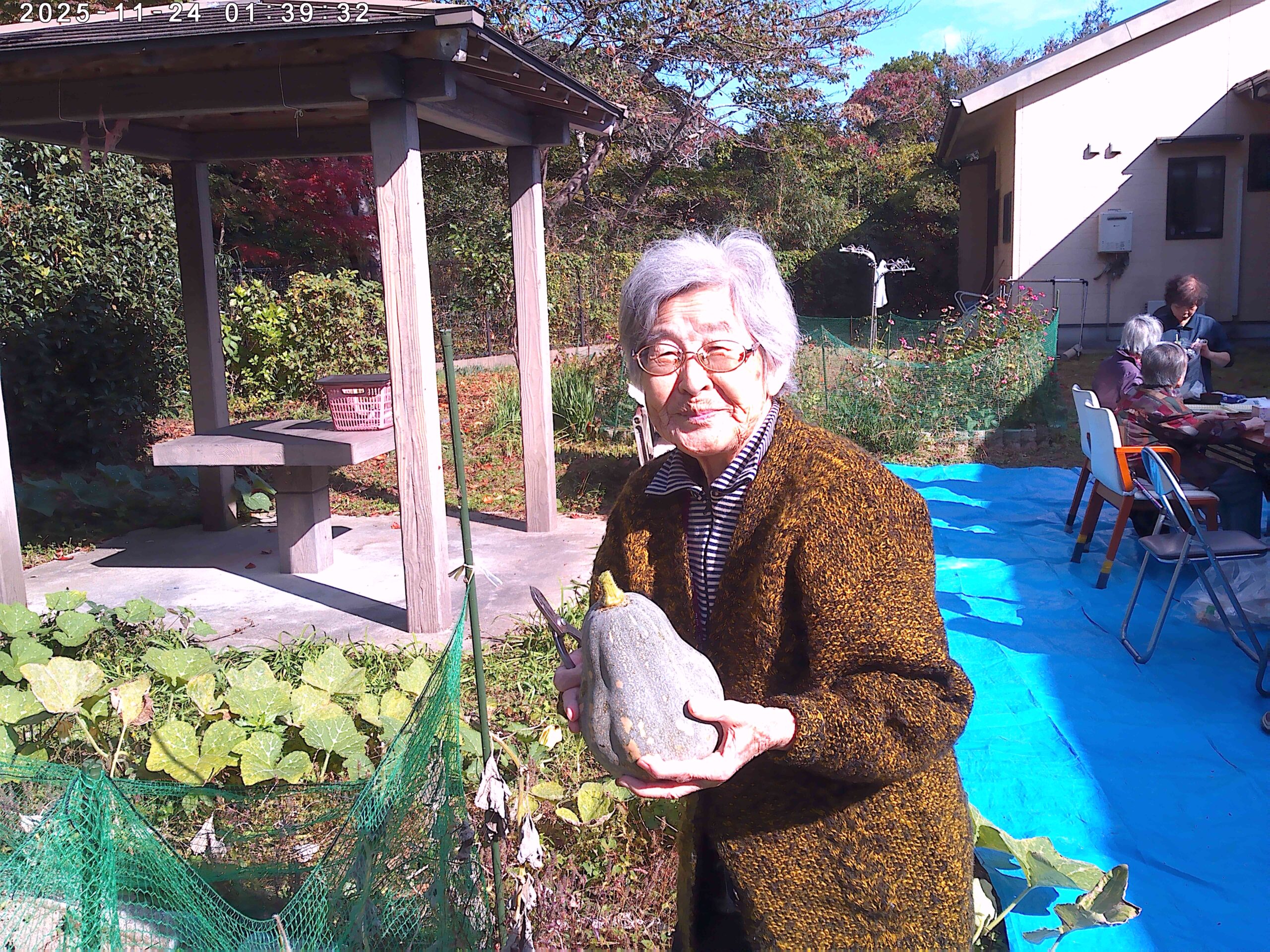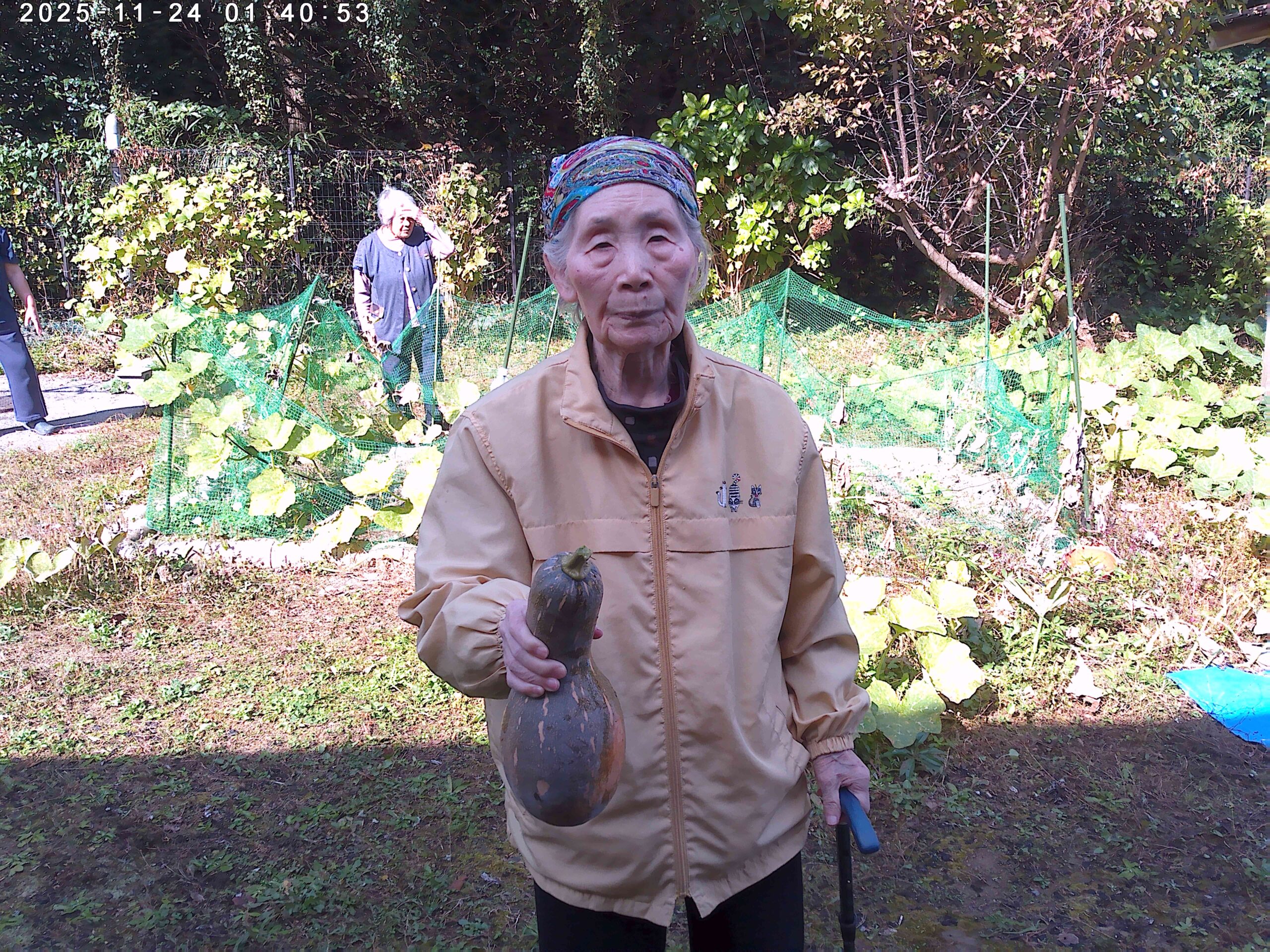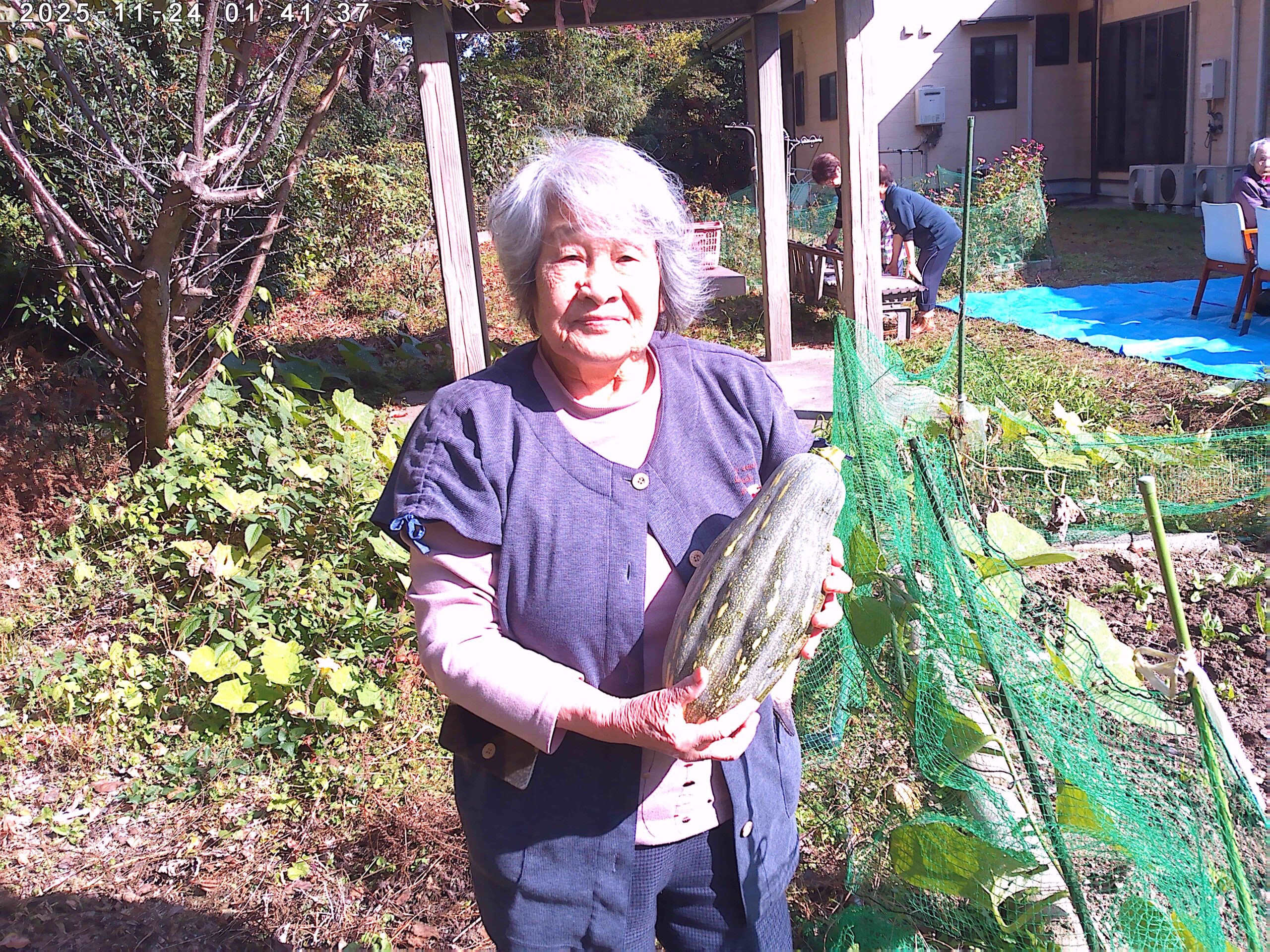 本日、職員が育てていた、へちまかぼちゃが収穫の時期を迎えましたので、ご入居者様と