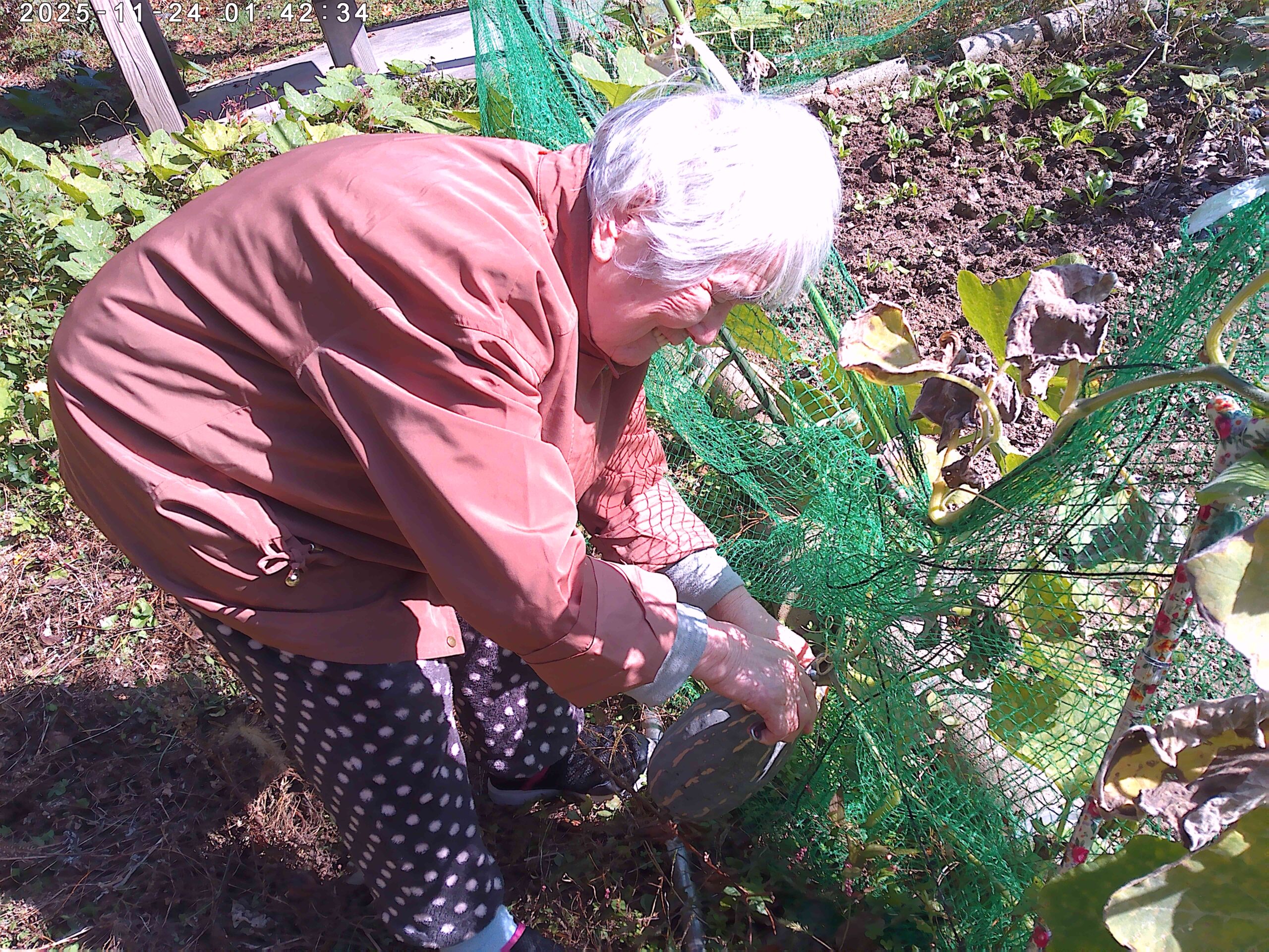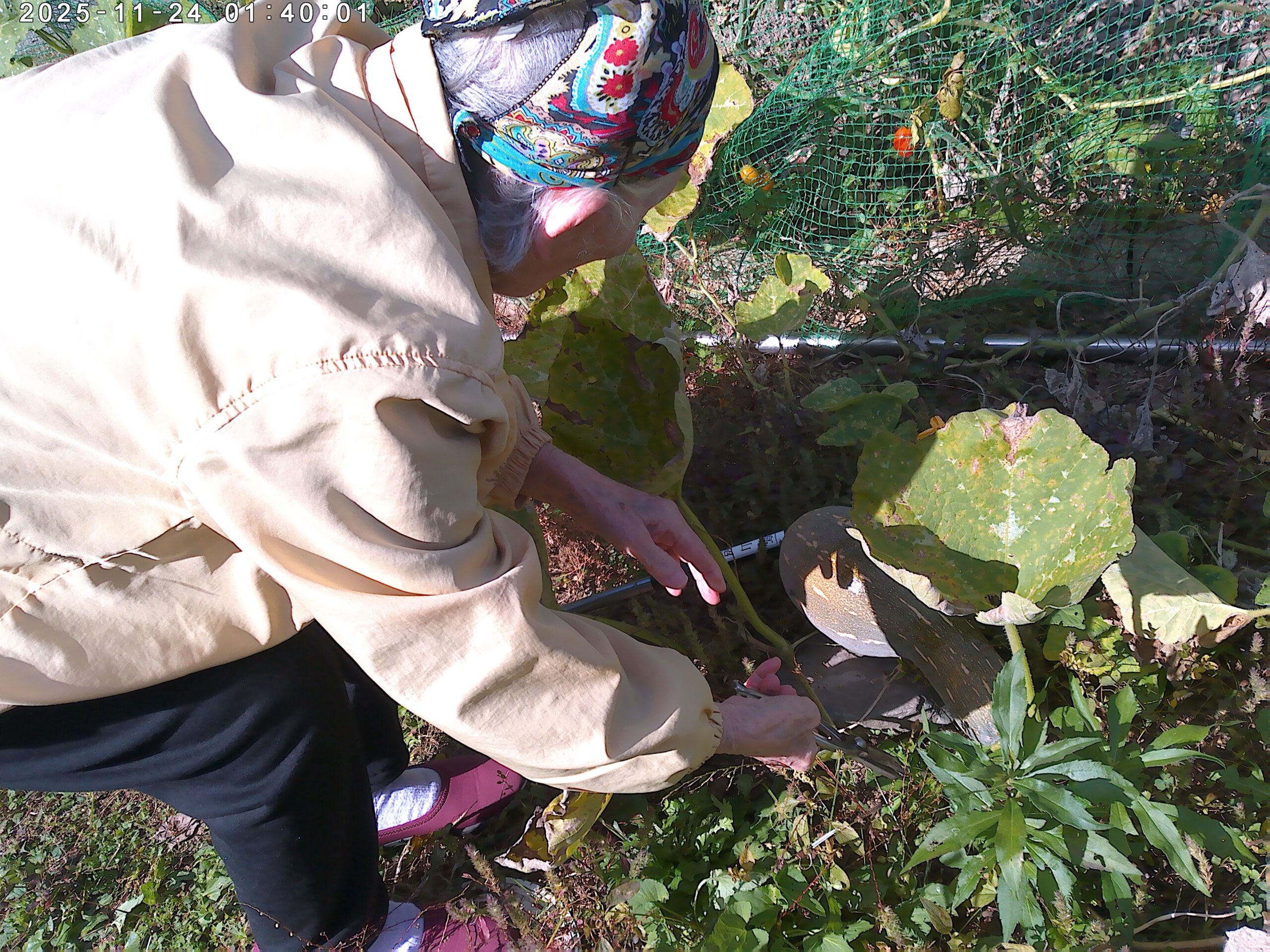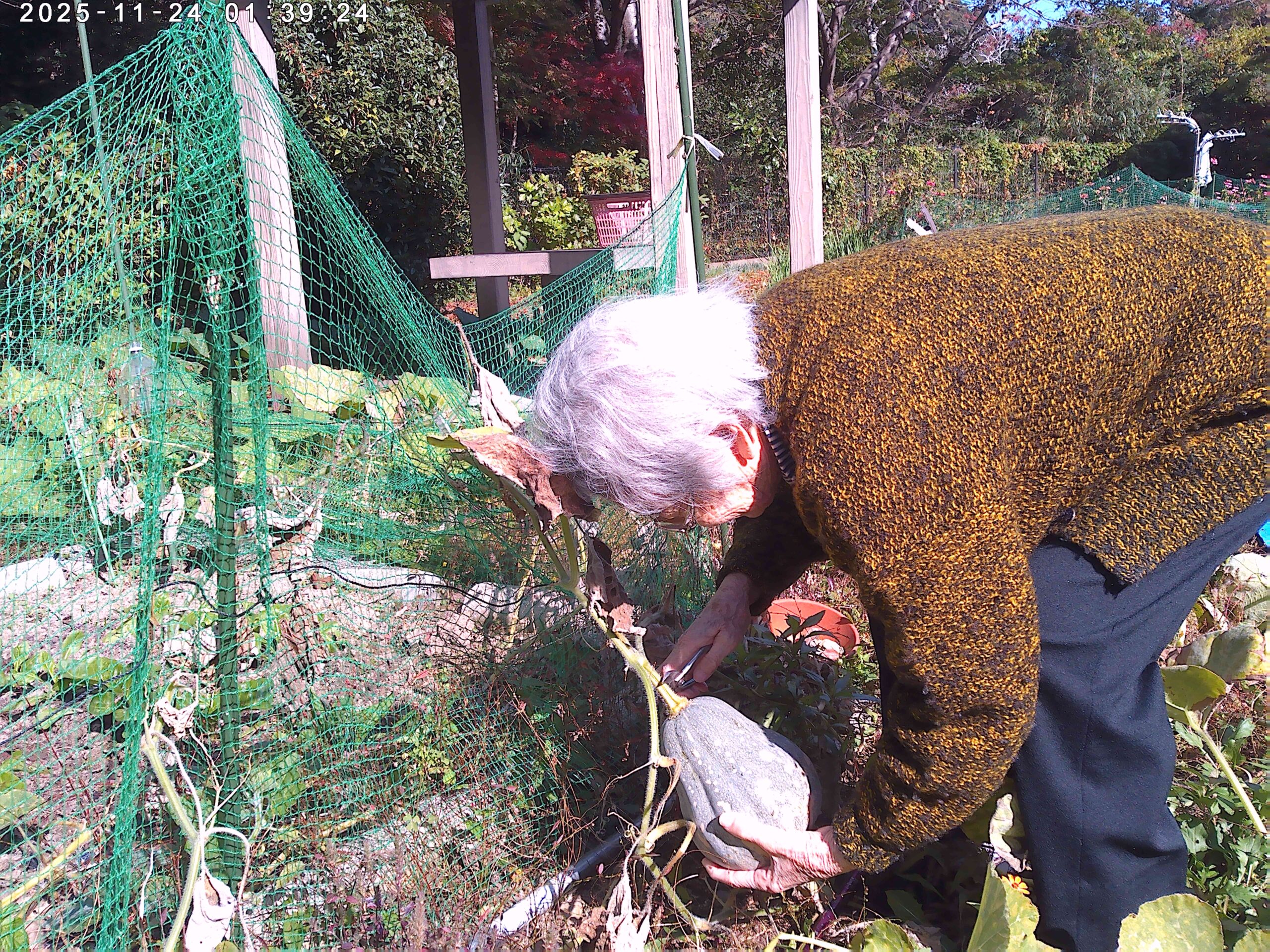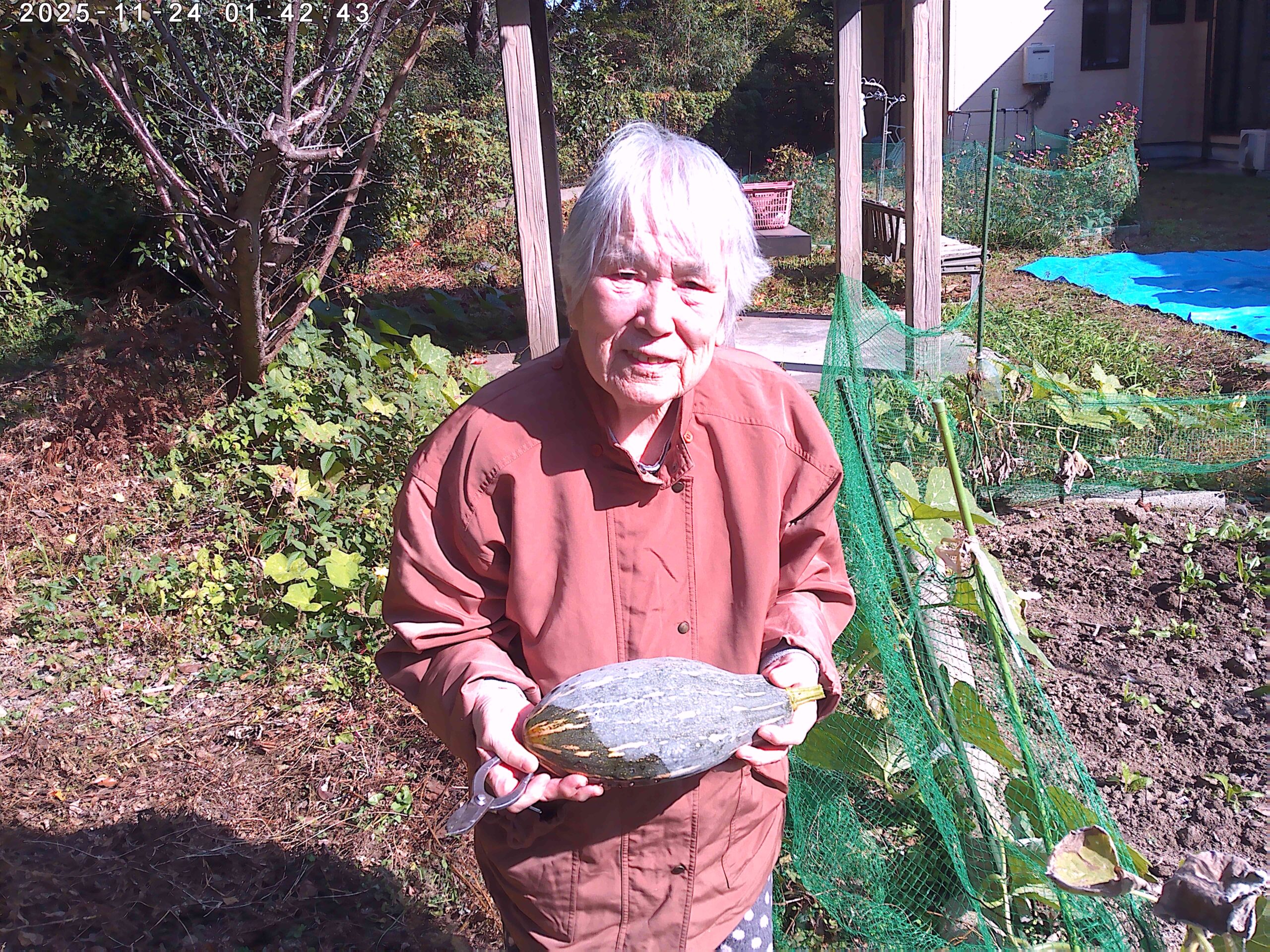 本日、職員が育てていた、へちまかぼちゃが収穫の時期を迎えましたので、ご入居者様と