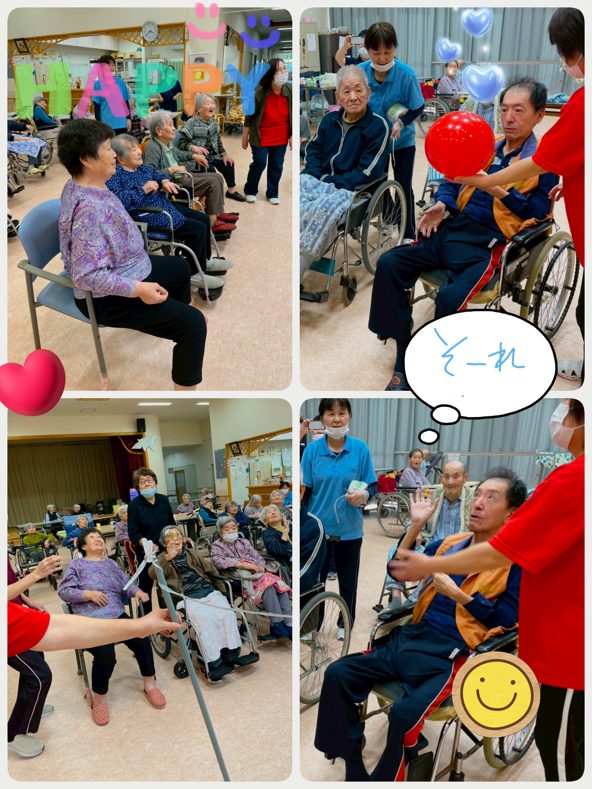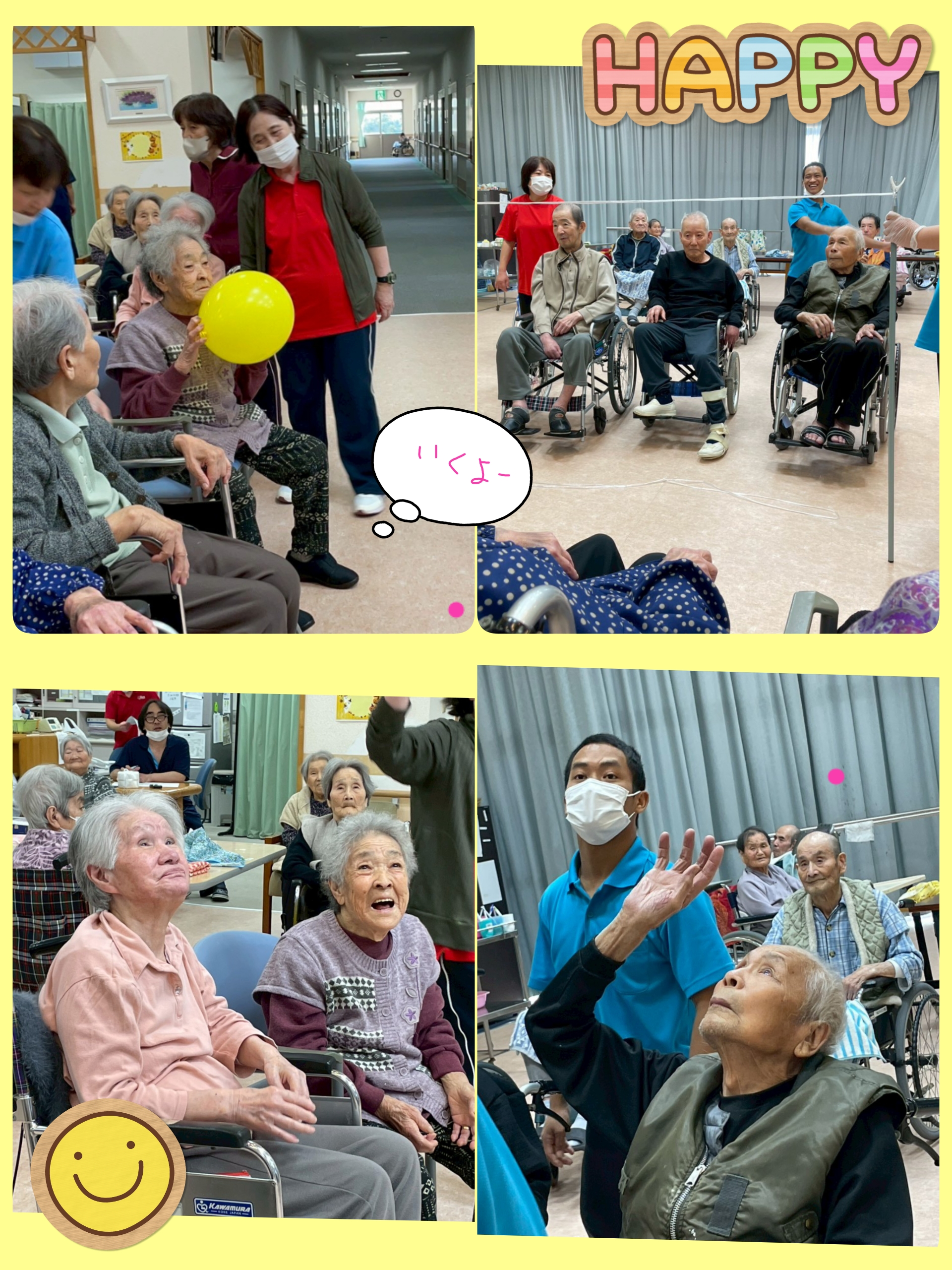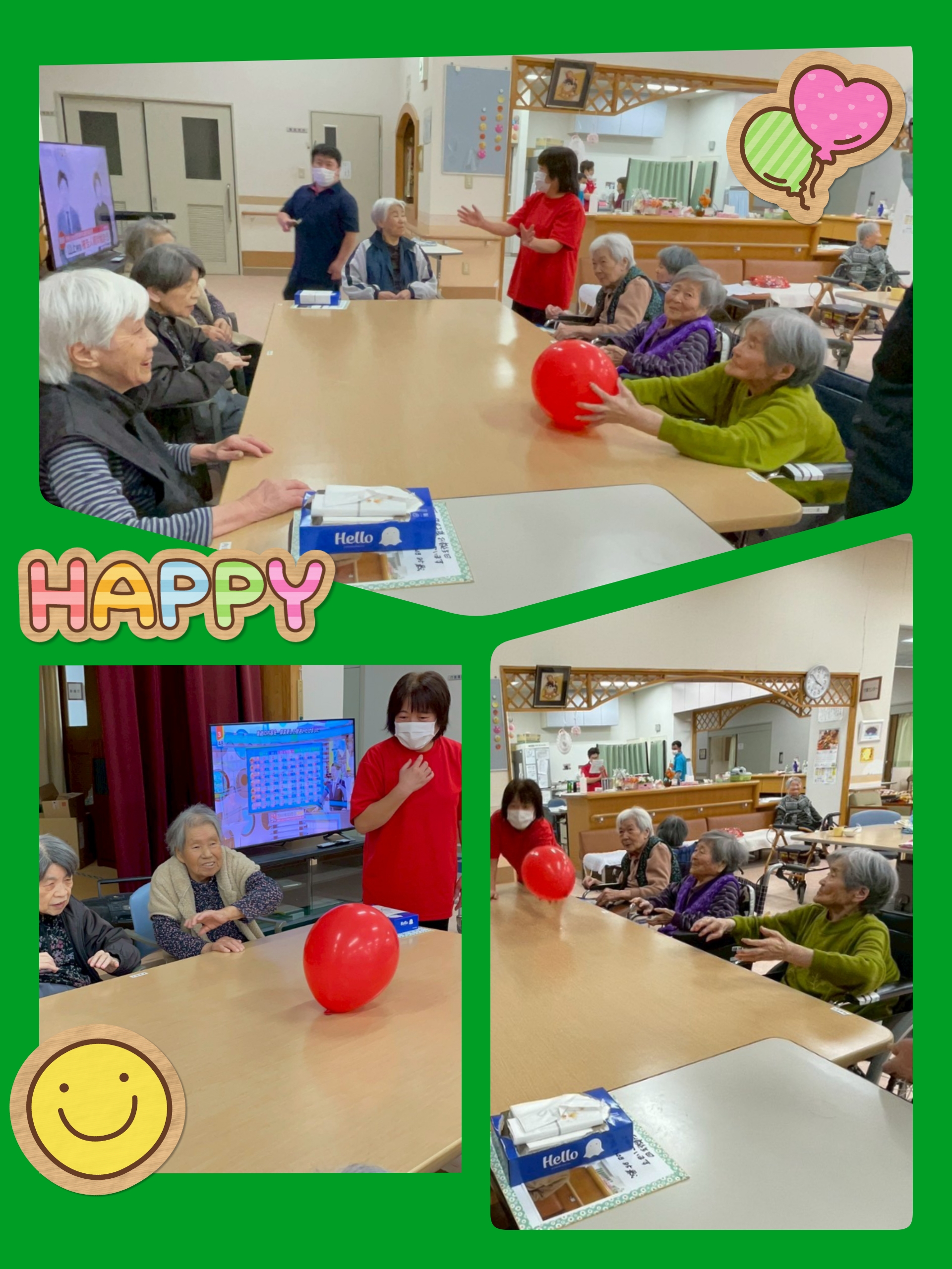 先日行われた誕生会の様子と風船バレーレクの様子を