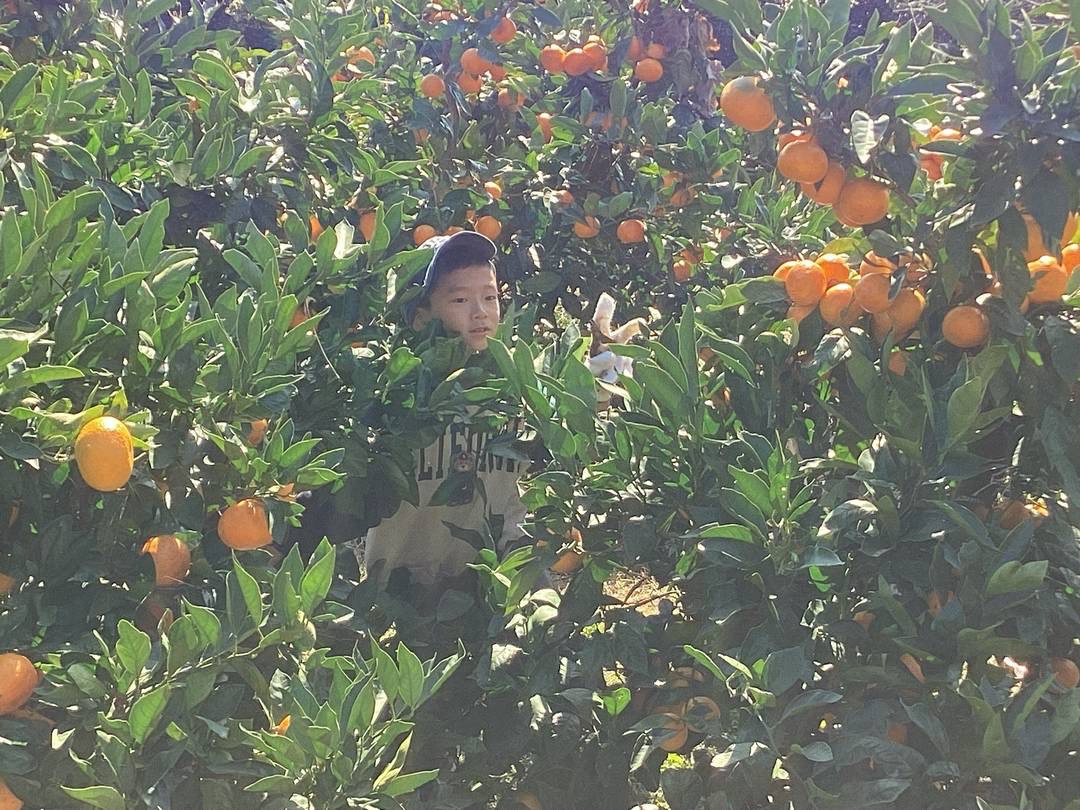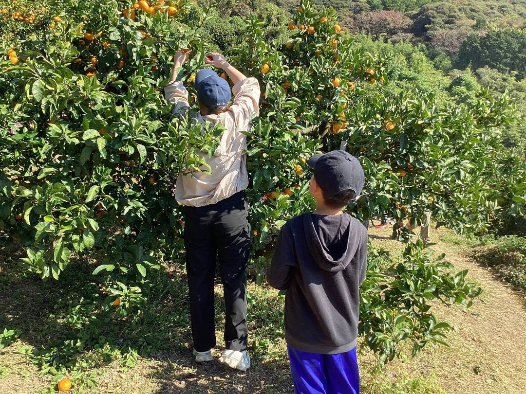 農園の方に、みかんの切り方や美味しいみかんの木の見分け方を教えてもらってから、みかん狩りスタートです😊