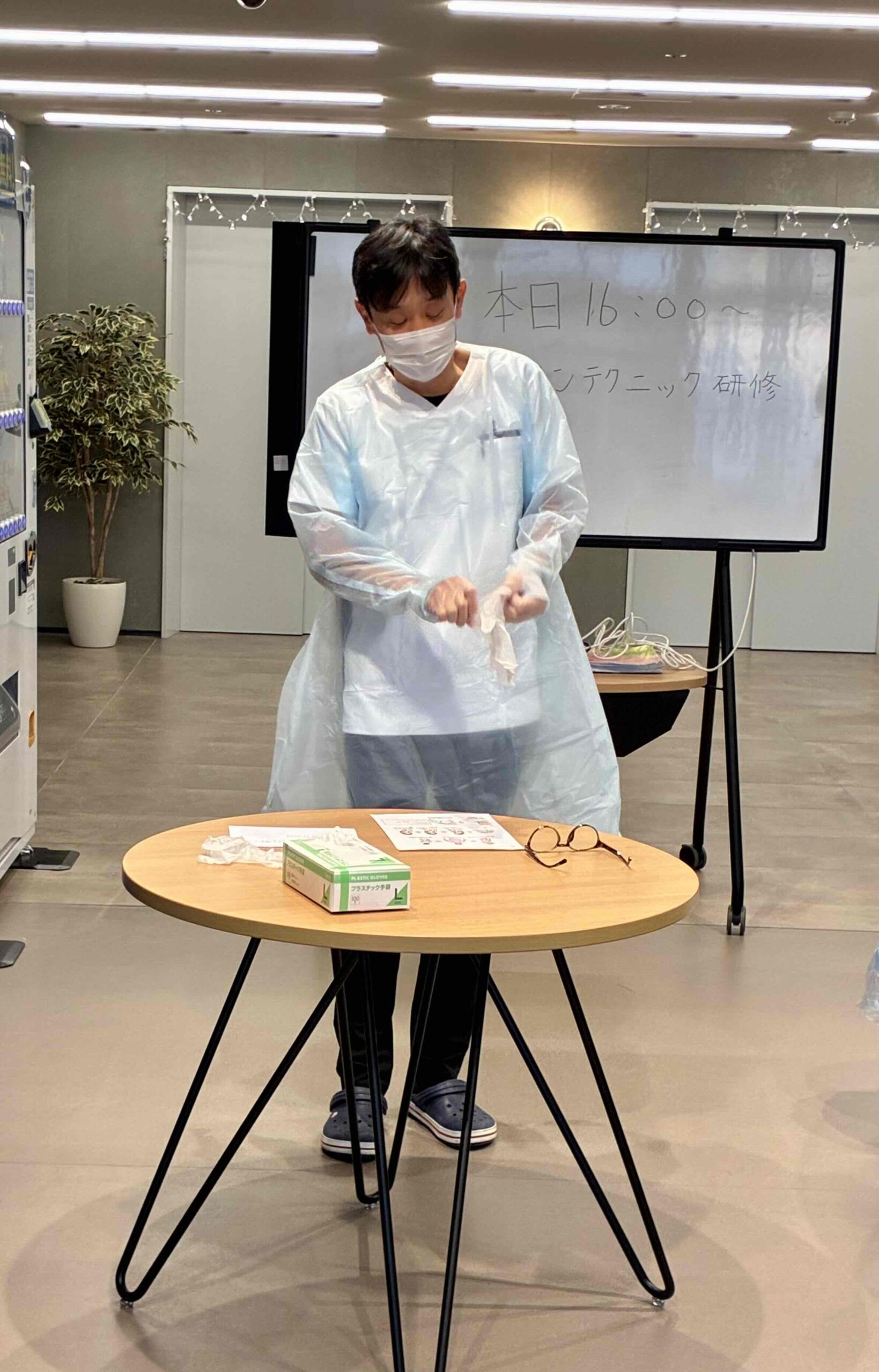看護職員を講師とした「ガウンテクニック研修」を実施しました。