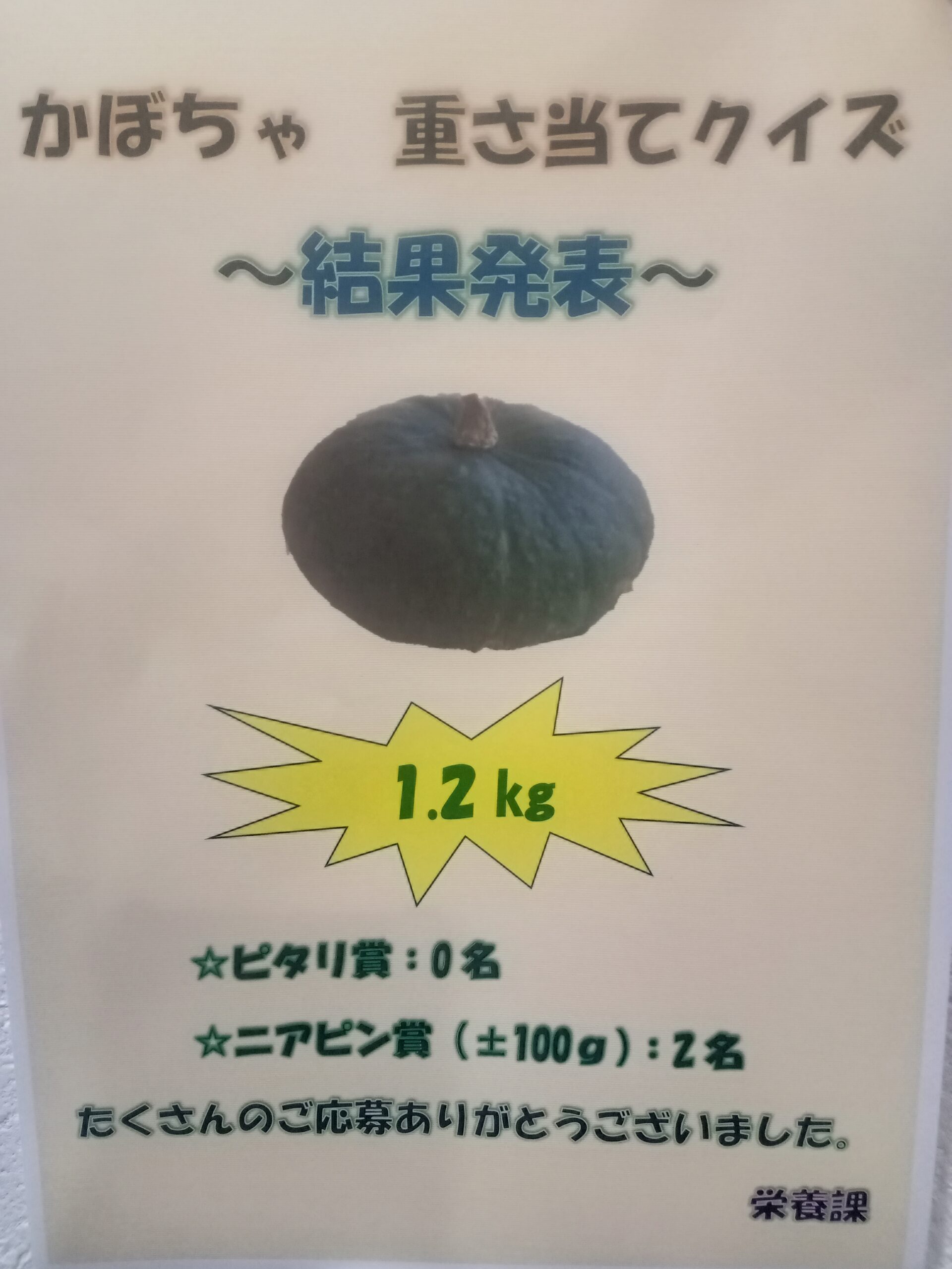先月実施のかぼちゃ重さ当て❓クイズ❓