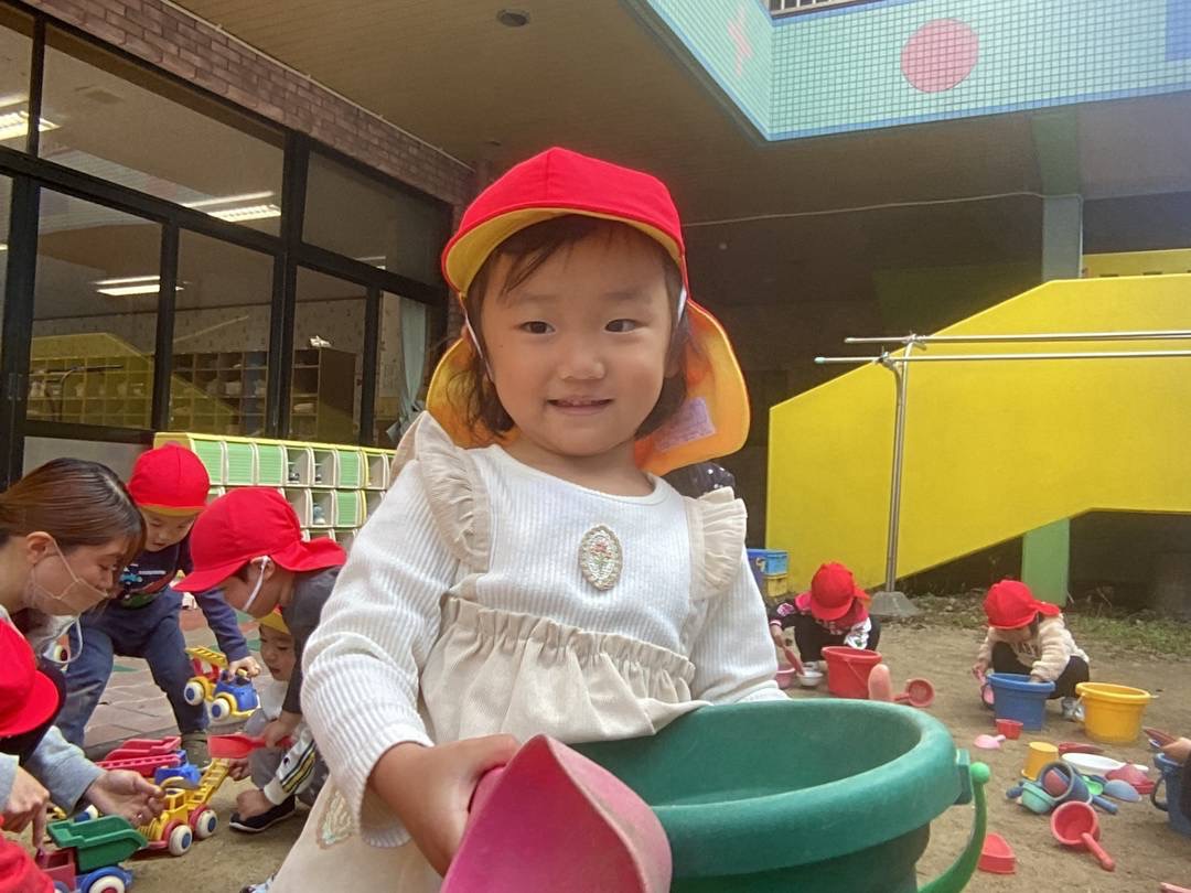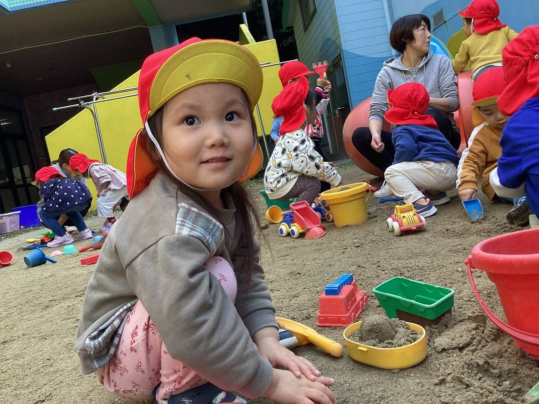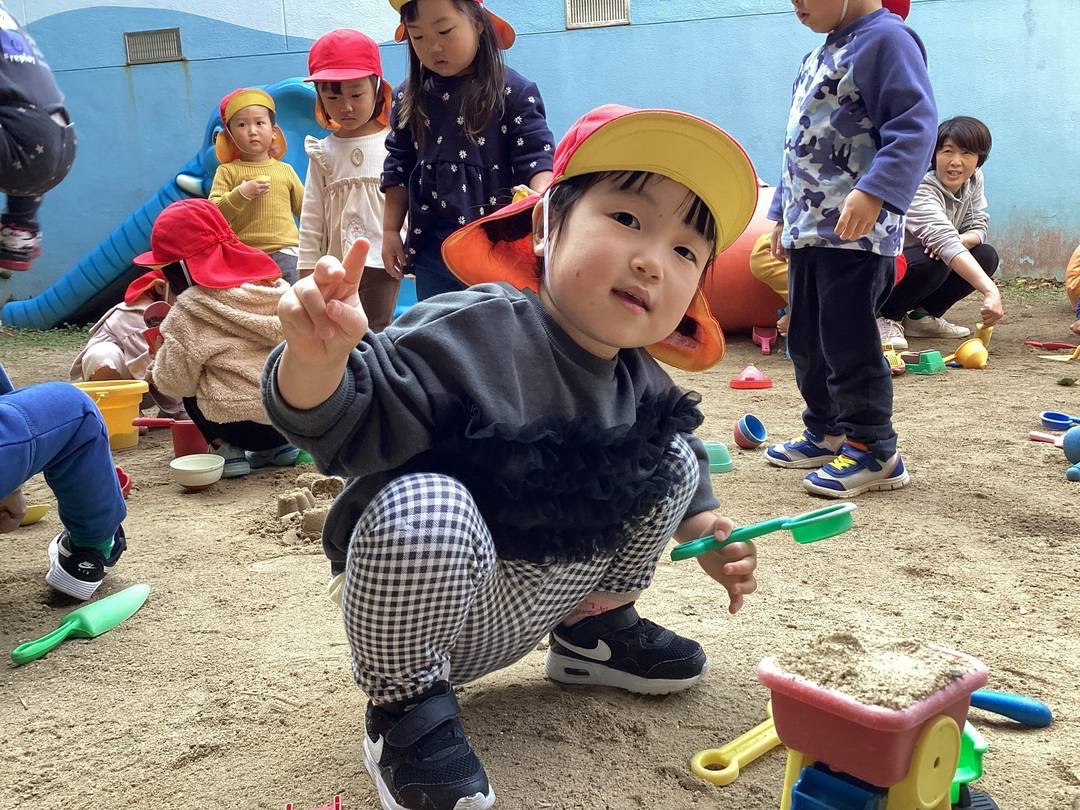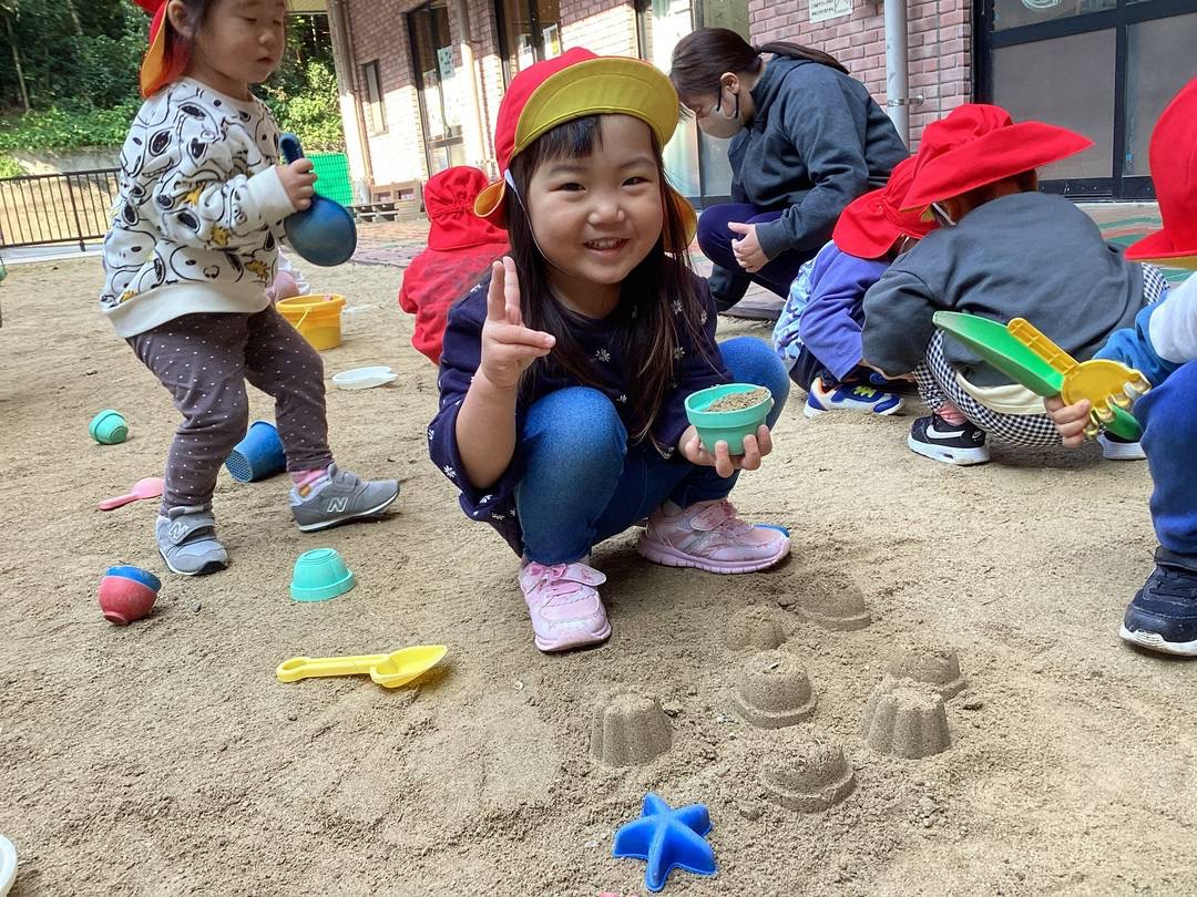 女の子は型抜きをして、ままごと遊びをしていましたが、湿った砂を多くしないと型が取れないことも