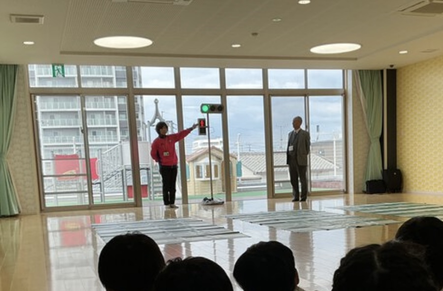 信号機の赤・青・黄色の並んでいる順番の意味も教えてもらいました。