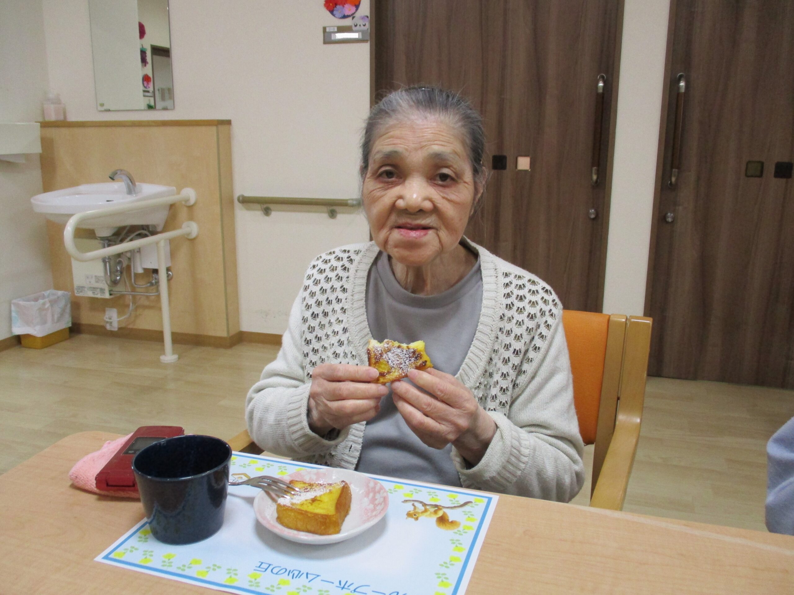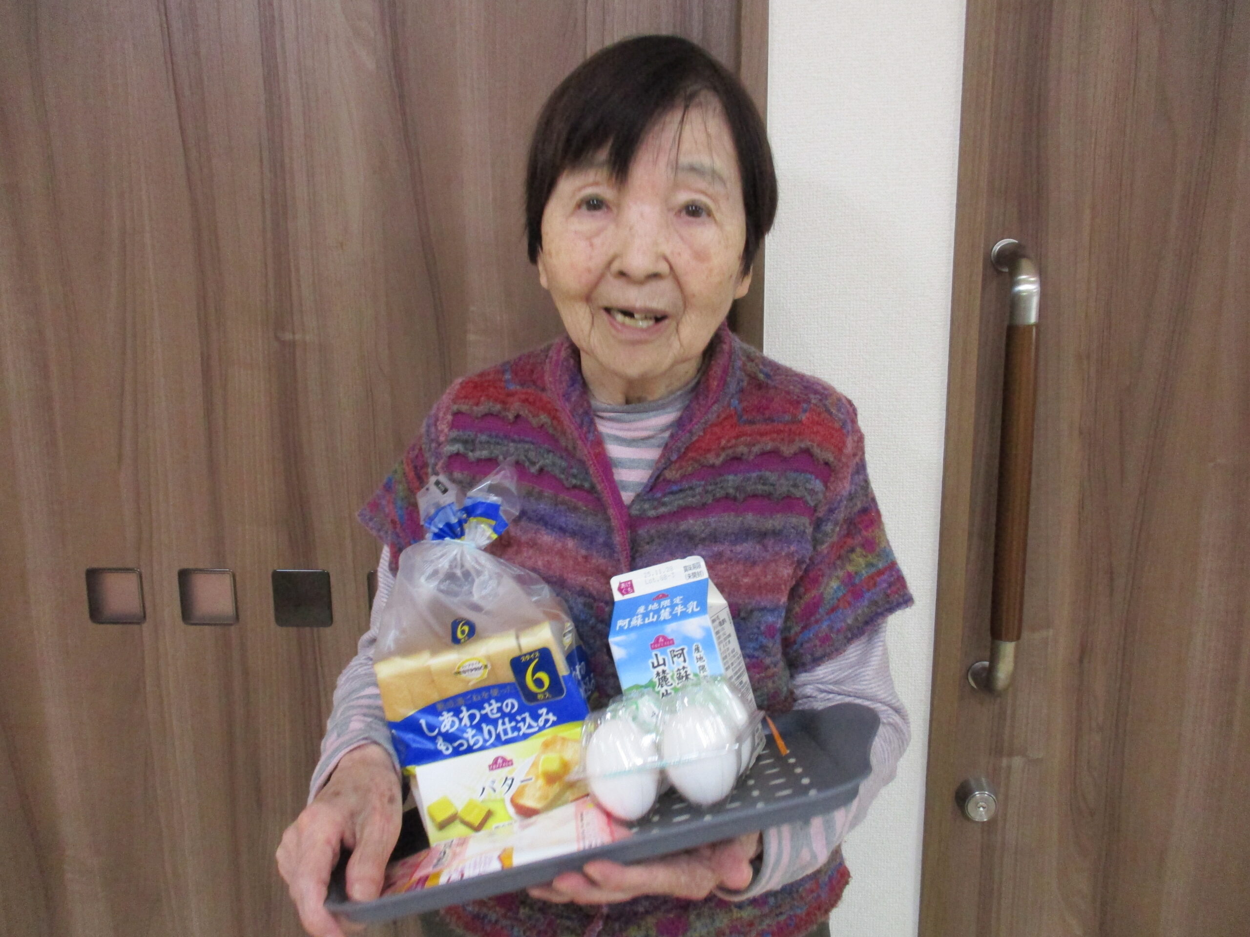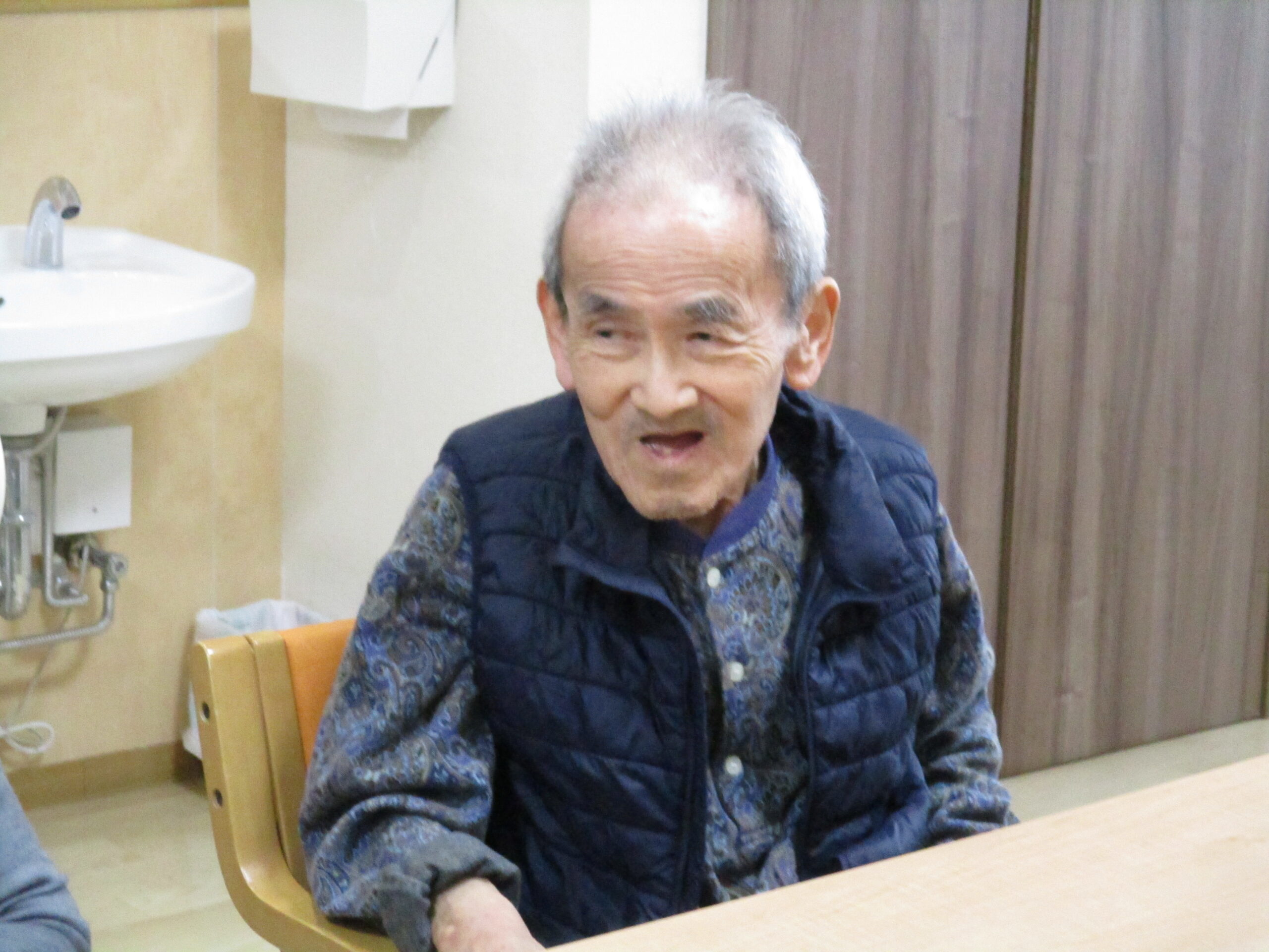 ほおばる寸前に笑顔を求められ、戸惑うご入居者様😅