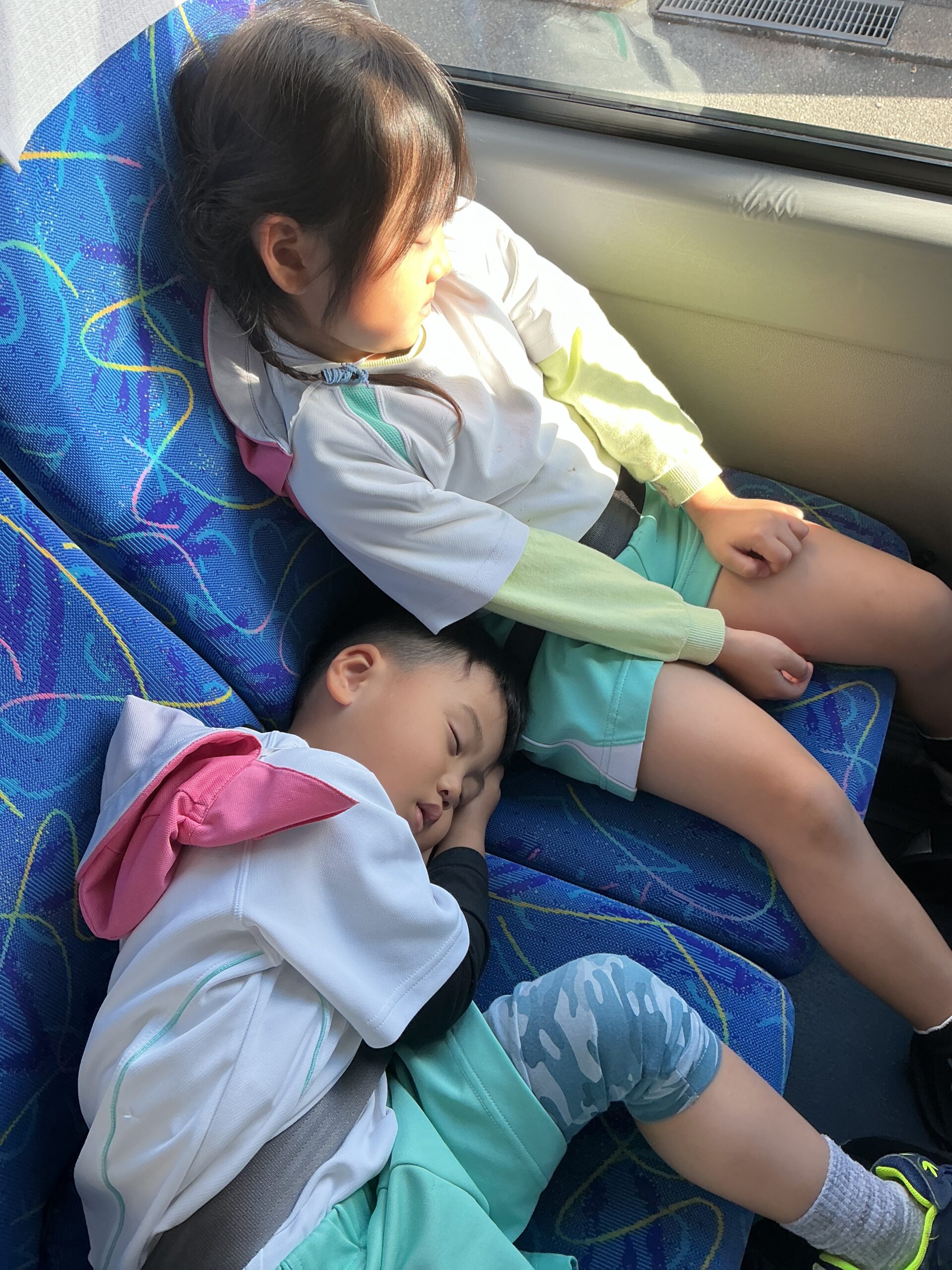 近くの公園で遊び、たくさん身体を動かして疲れた子ども達・・・