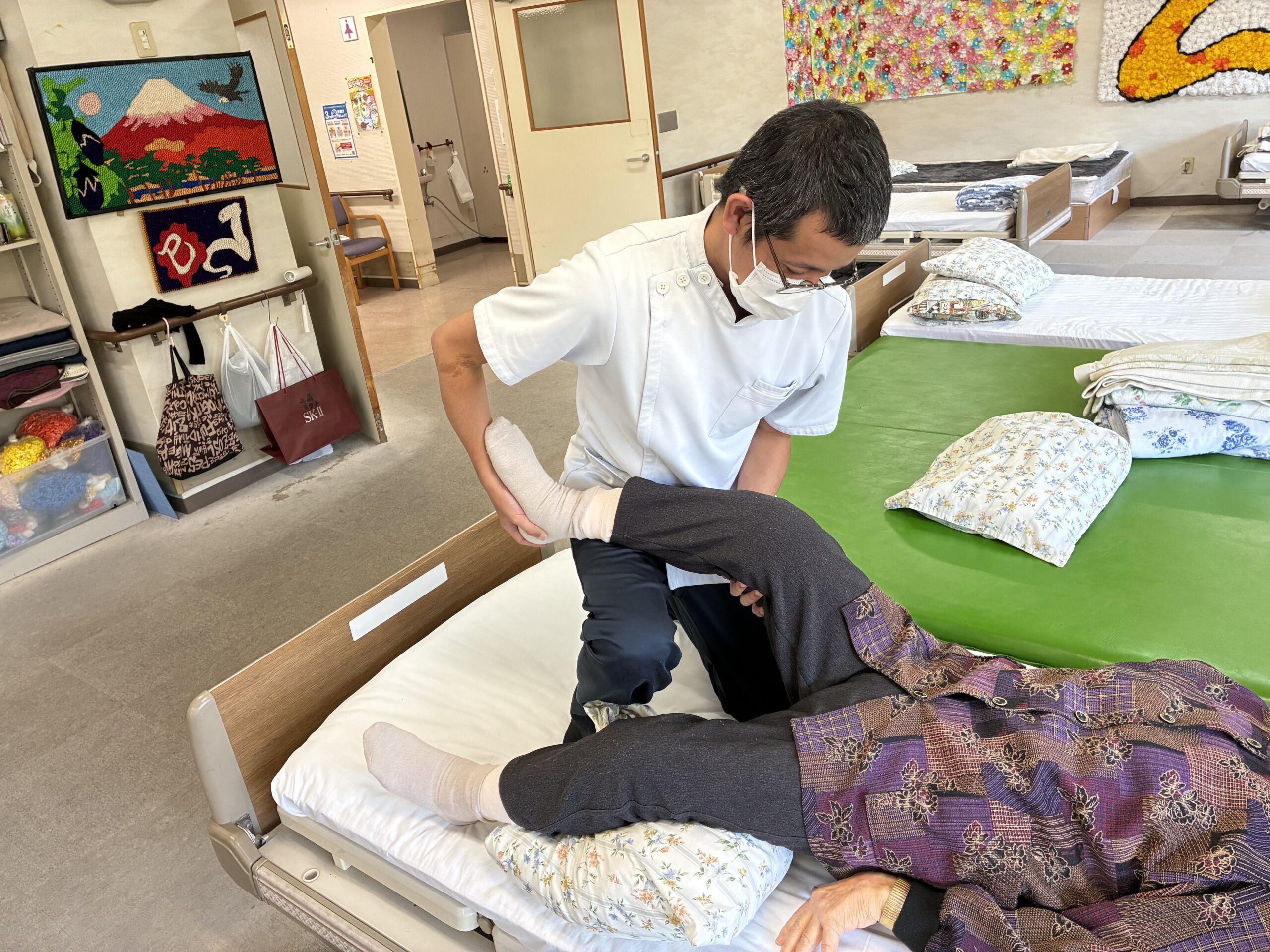 普段、動かさない範囲で関節運動を行うことにより関節可動域の維持拡大を図っています。