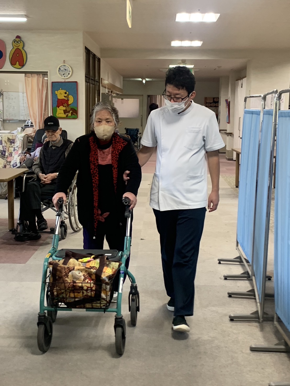 ↑↑↑ 歩行器を使用しての歩行訓練です。