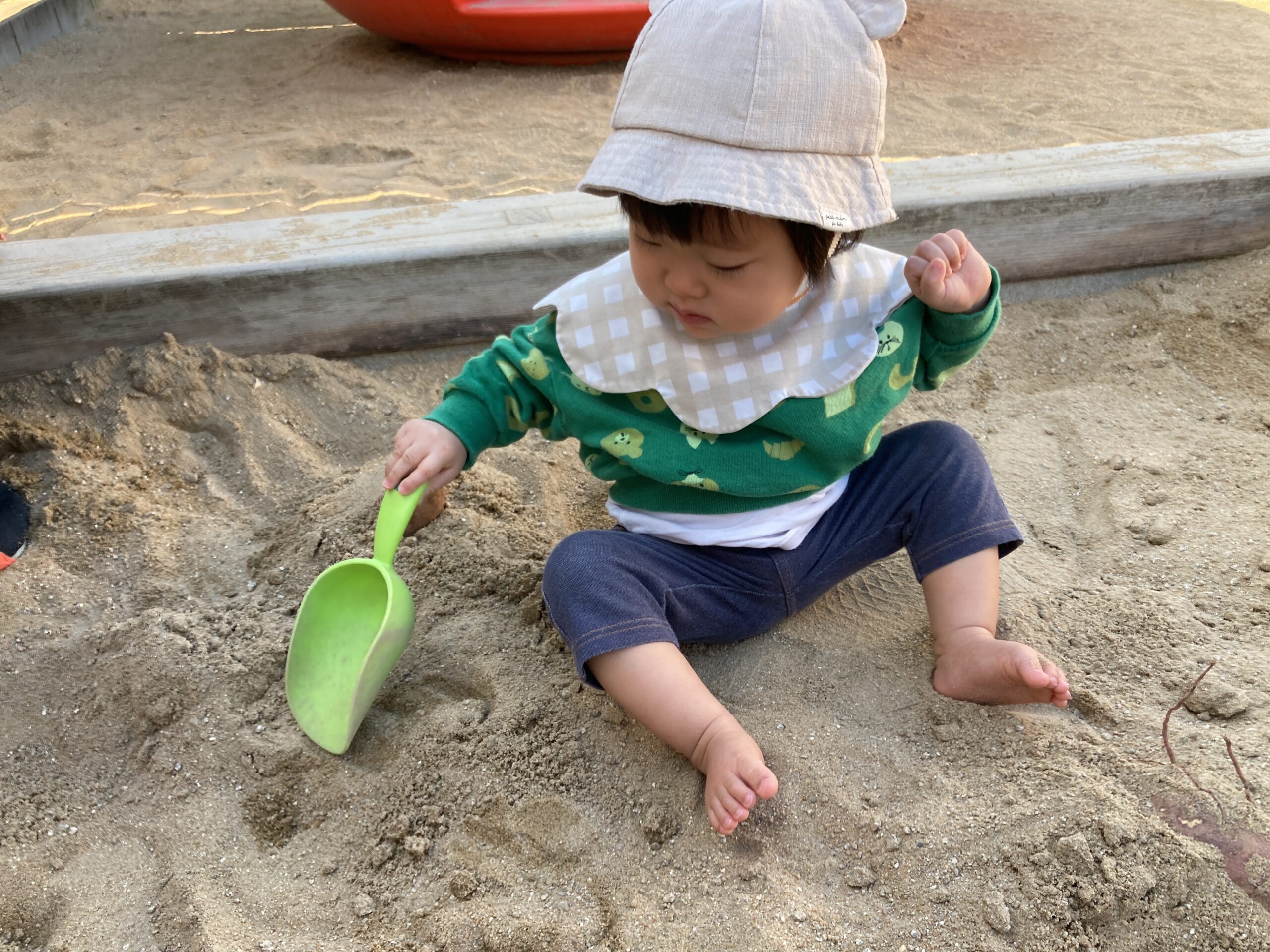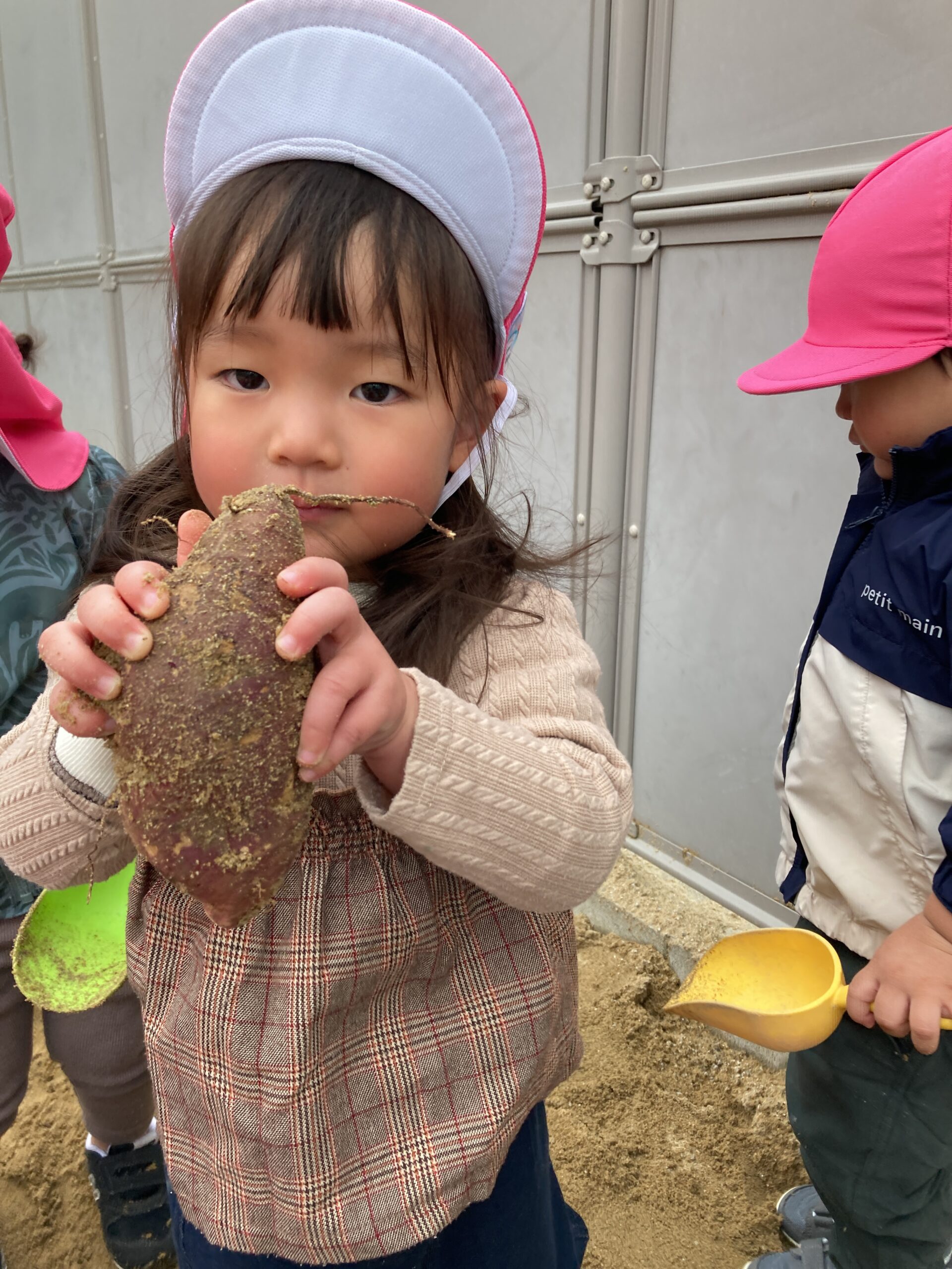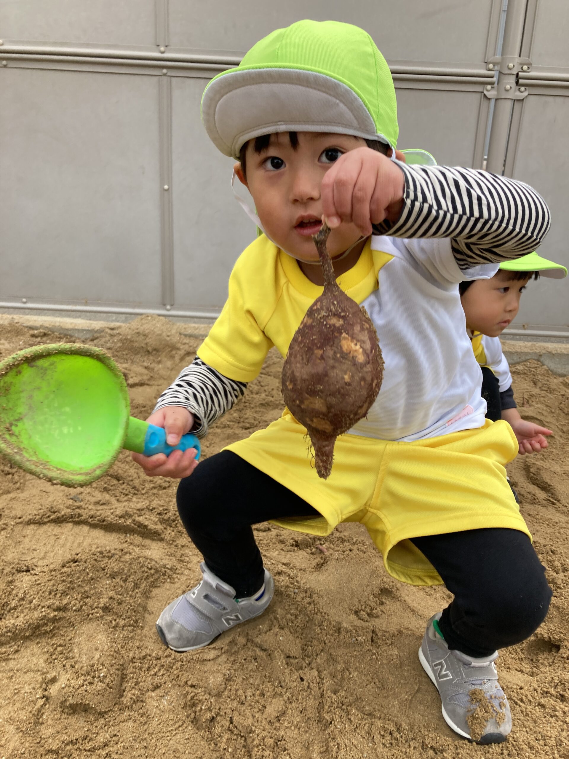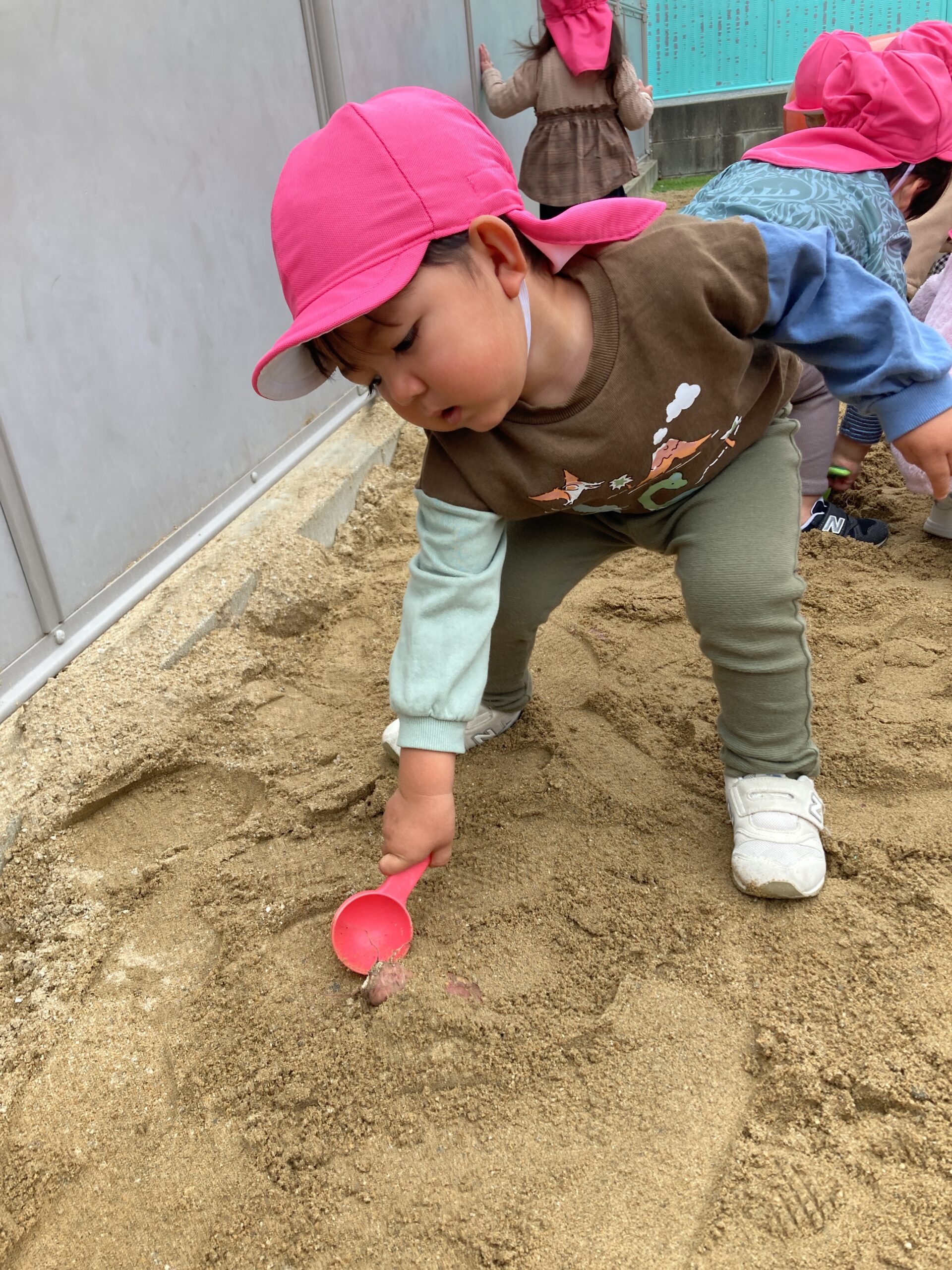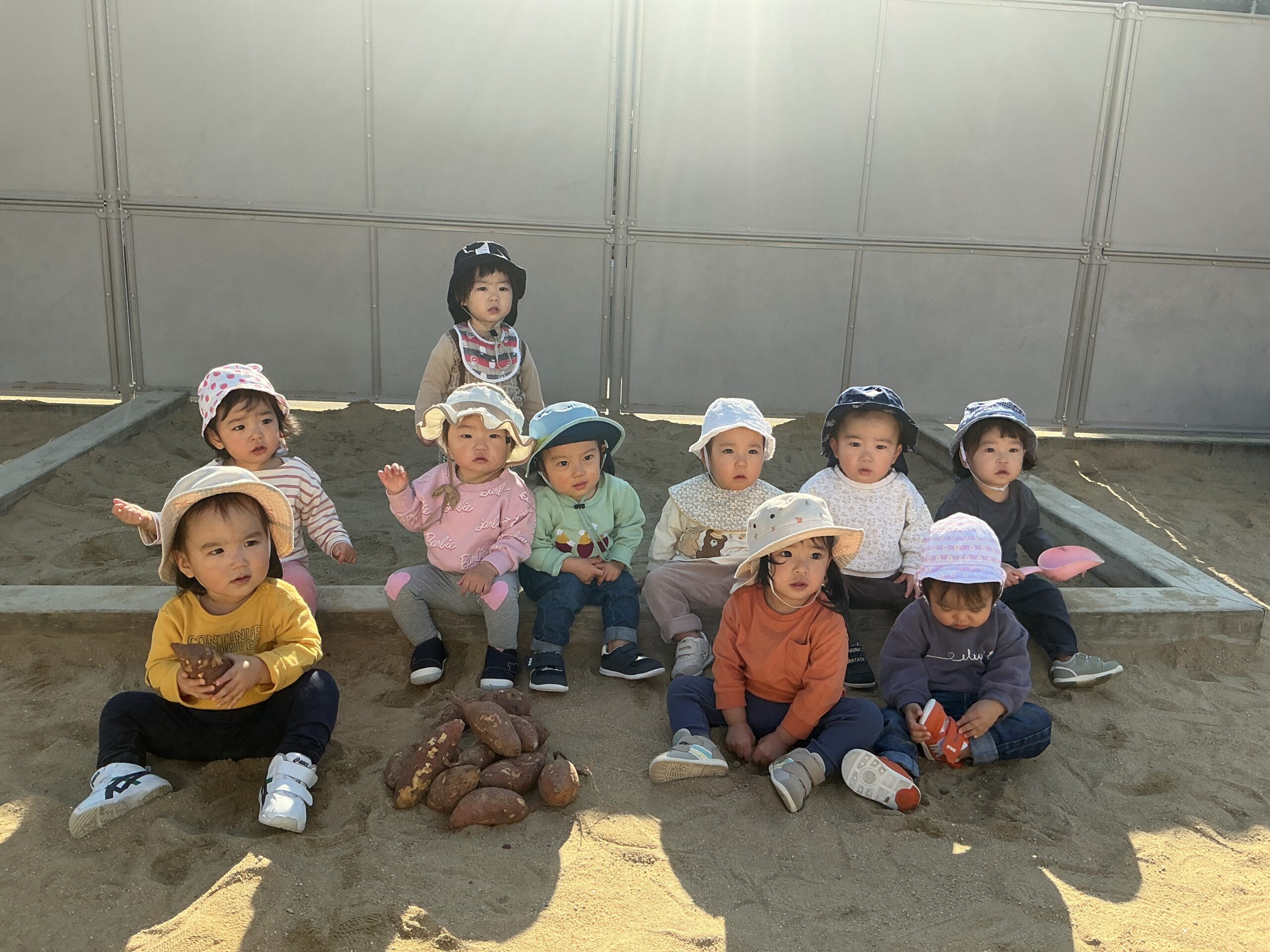 以上児さんの芋ほり大会に続いて、未満児さんも保育園の砂場を使用して、