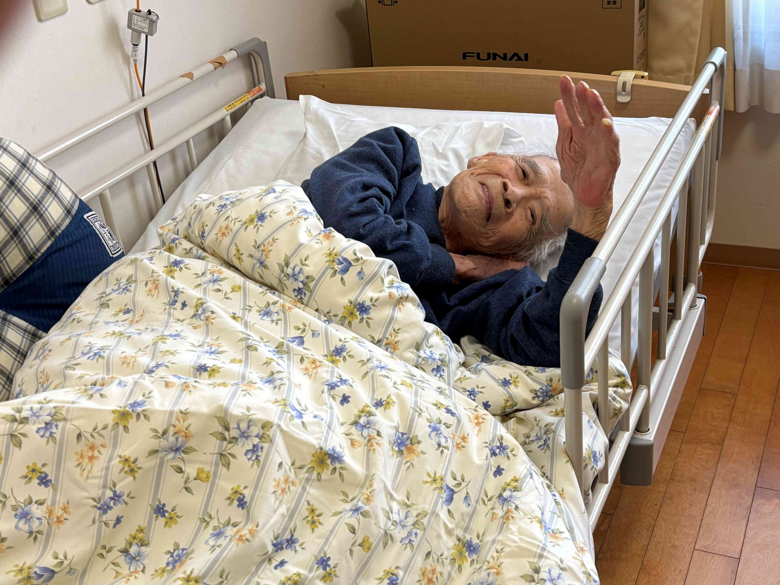 ベッド上でしたが起きていらっしゃいました