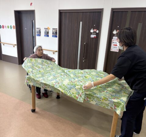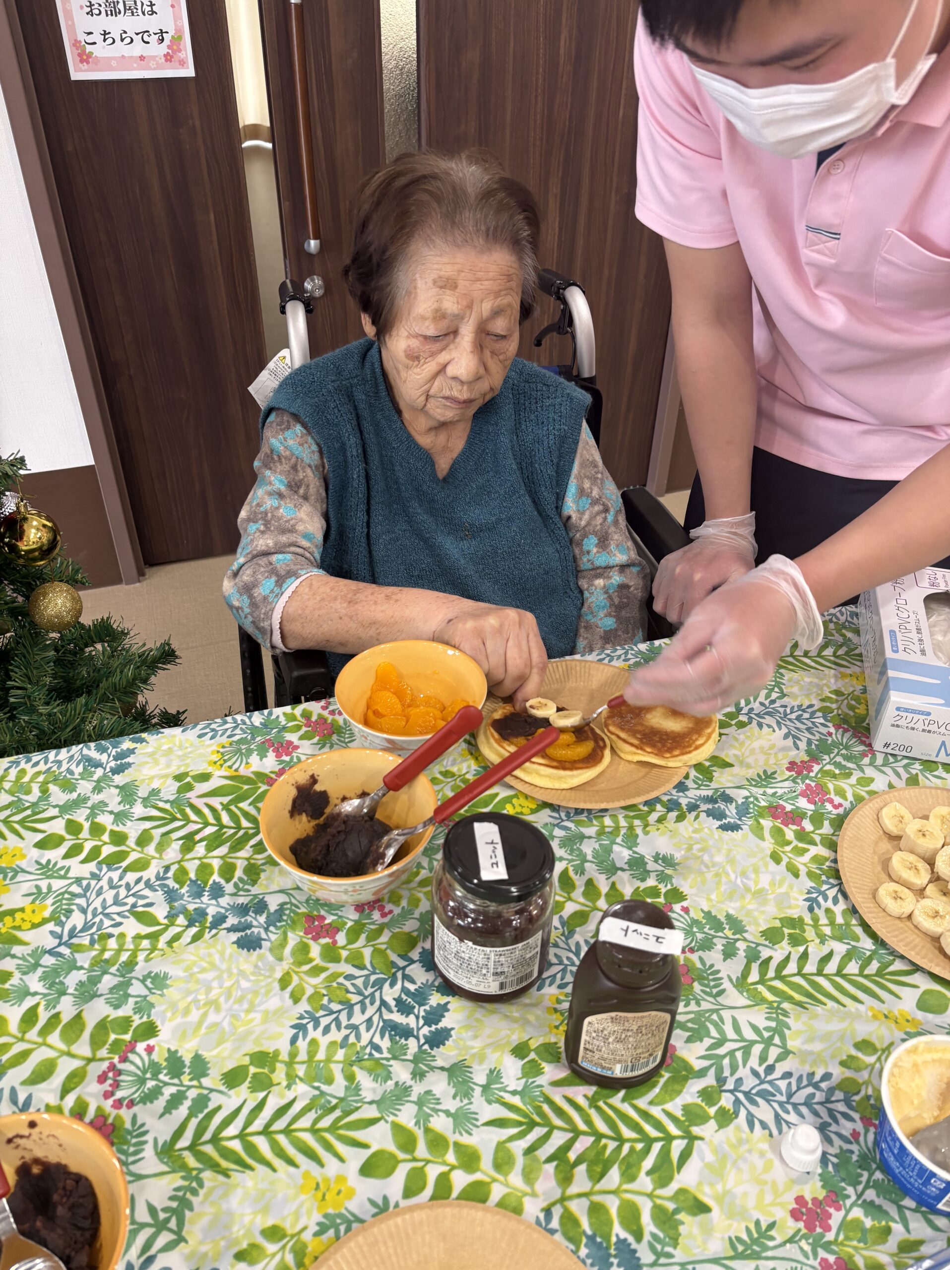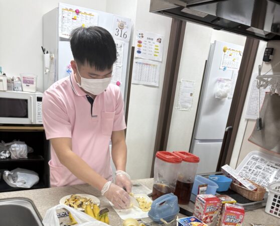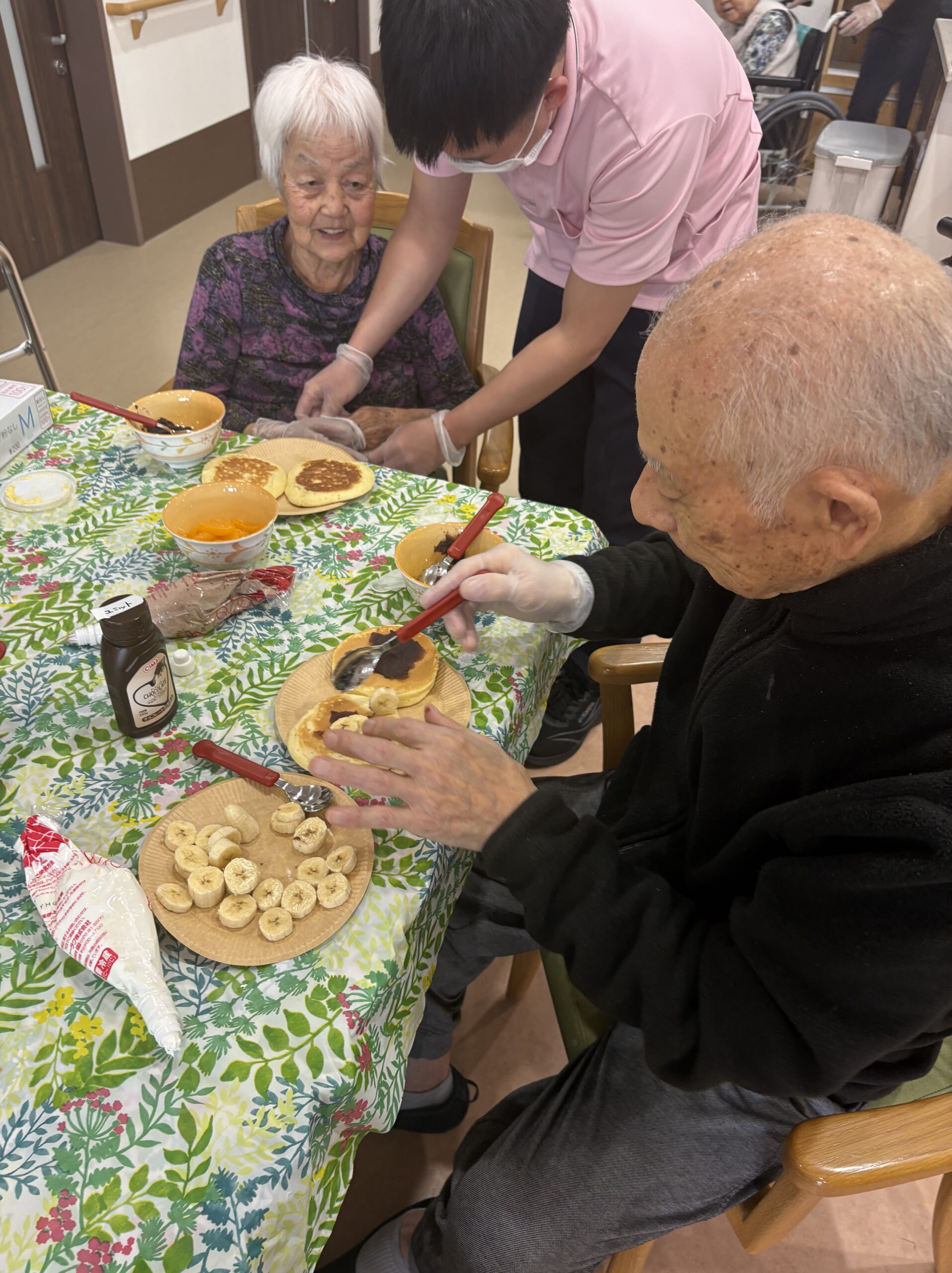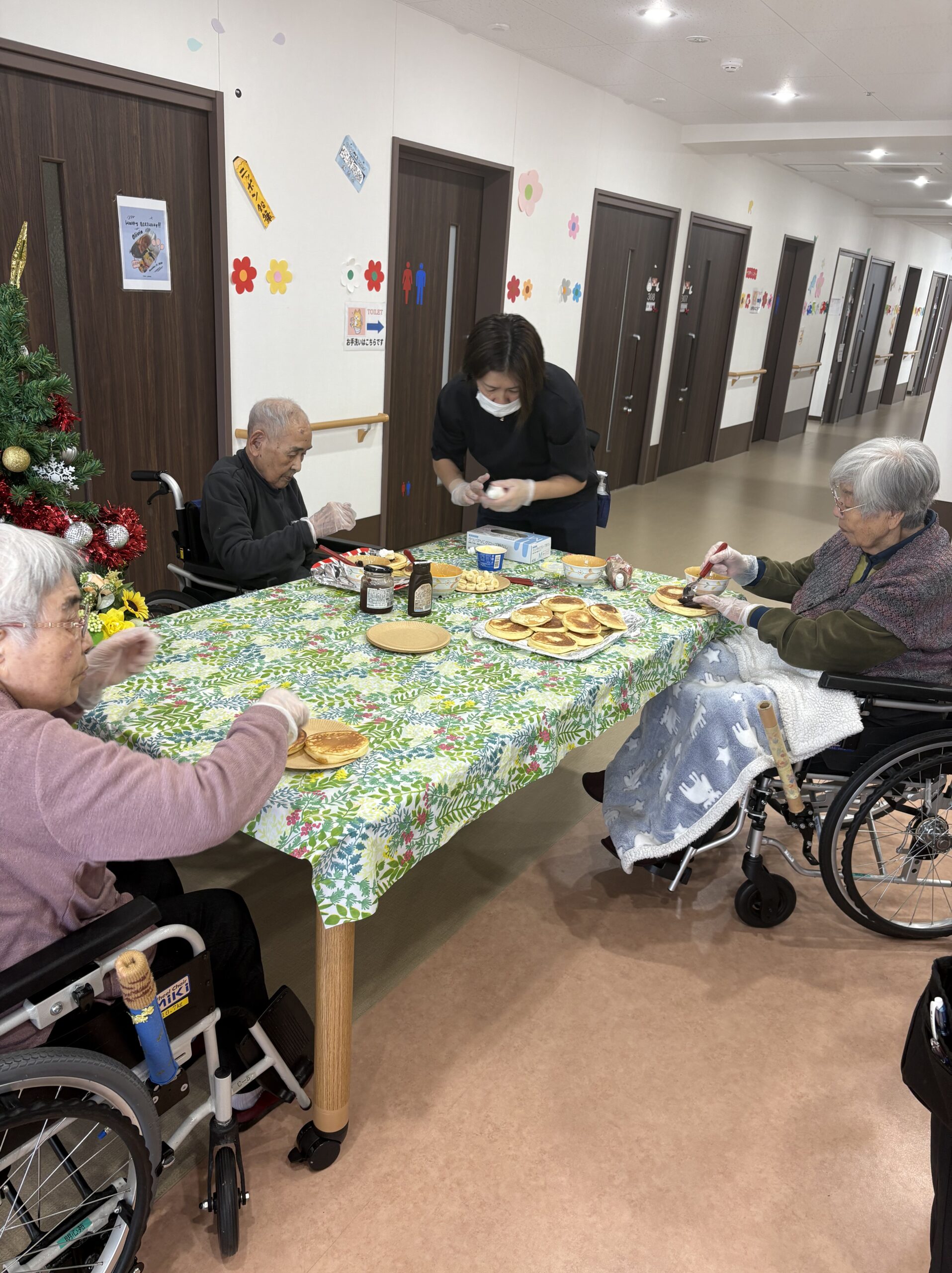 生地を入居者様に見守られながら作成👩🏻🍳