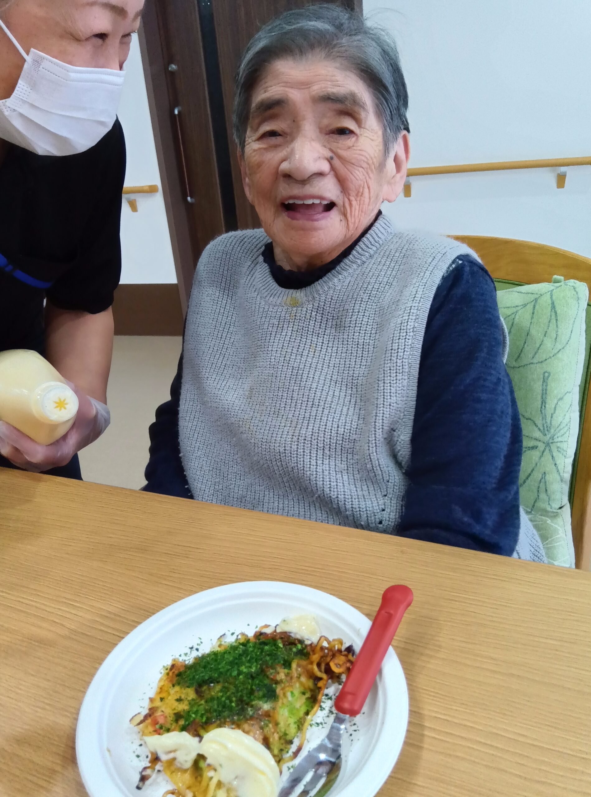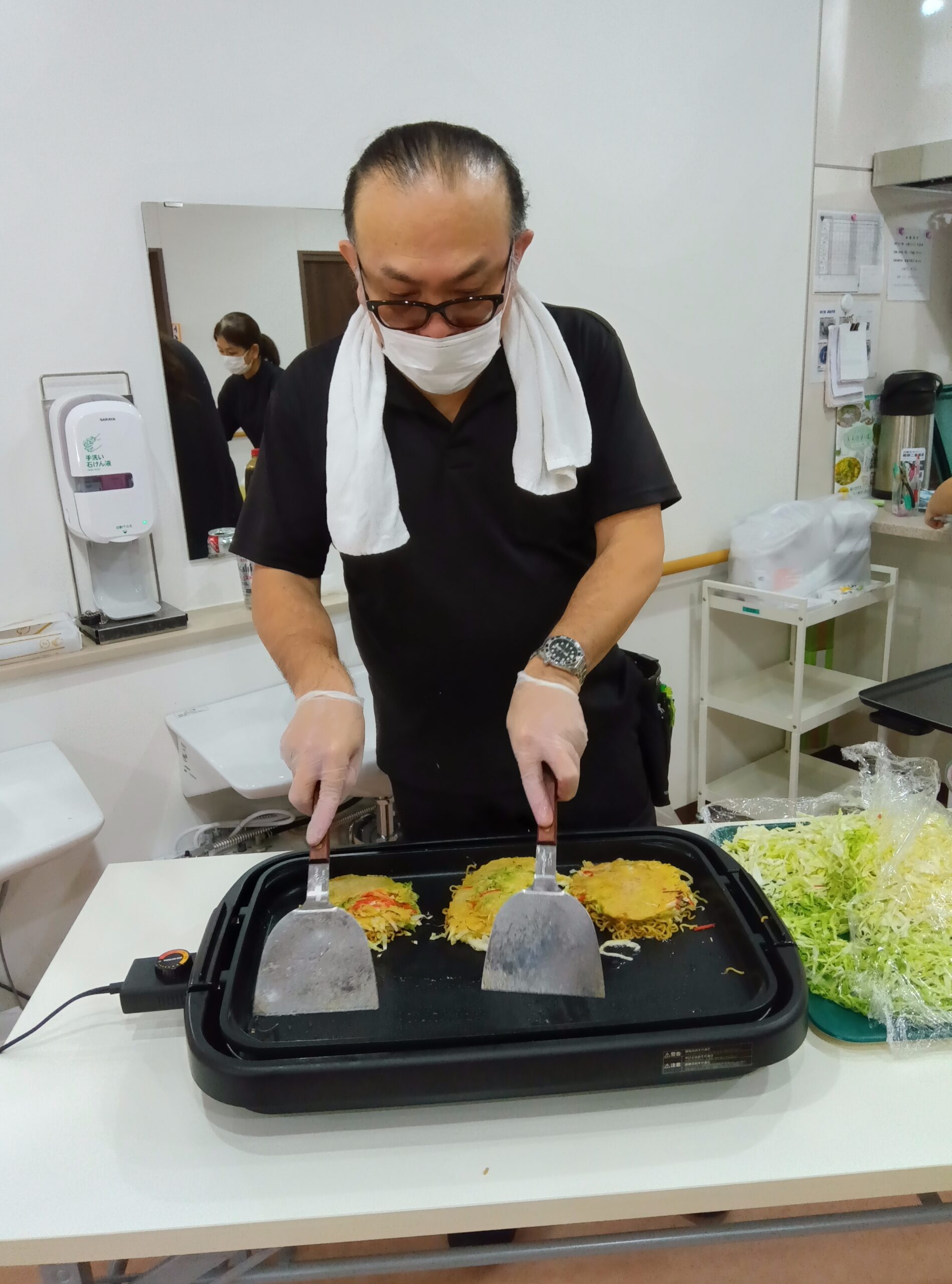源・若松ユニットではお好み焼きを作成しておりました~🥢
