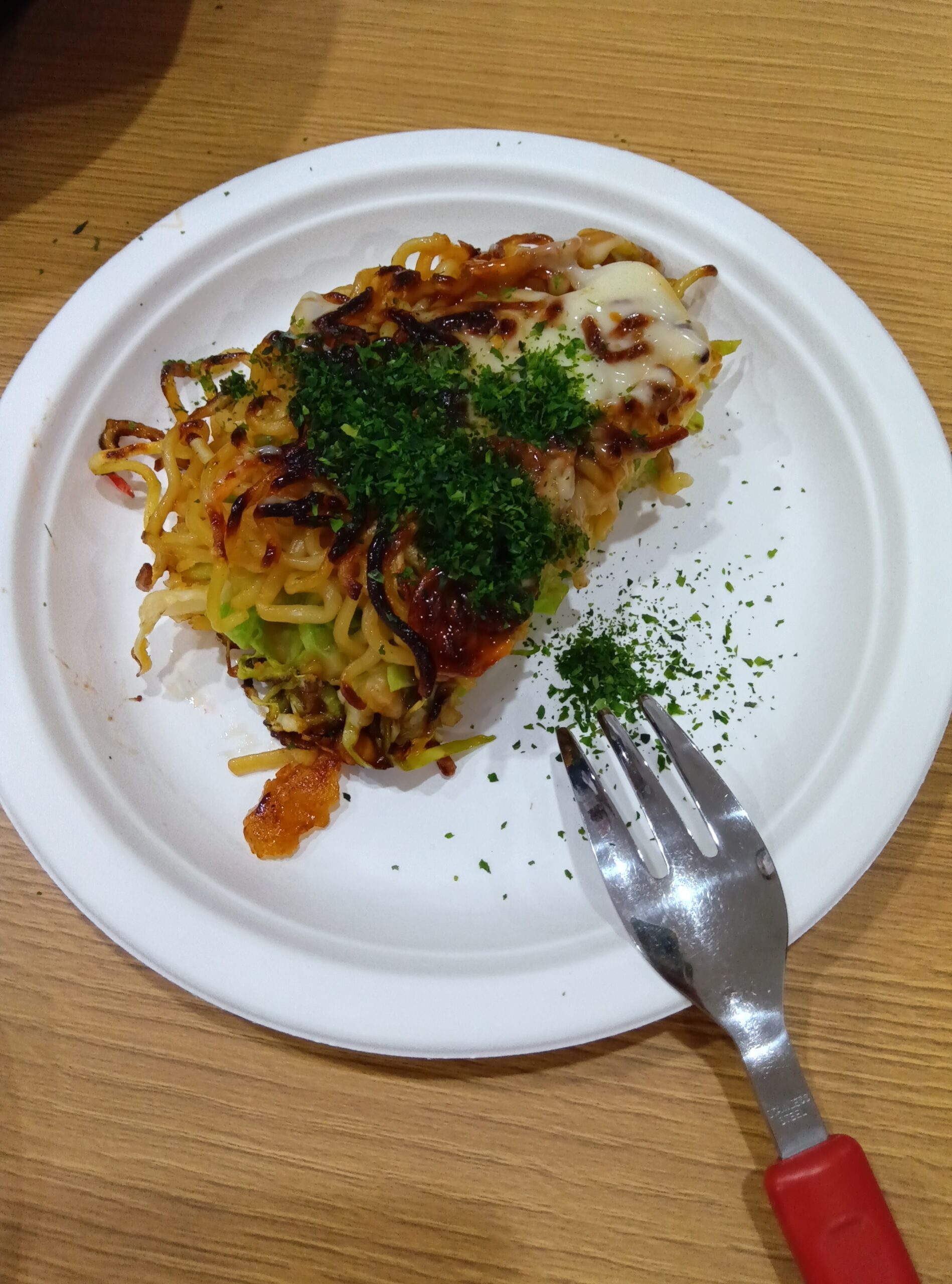 焼きそばも入っており本格的なお好み焼きです😊