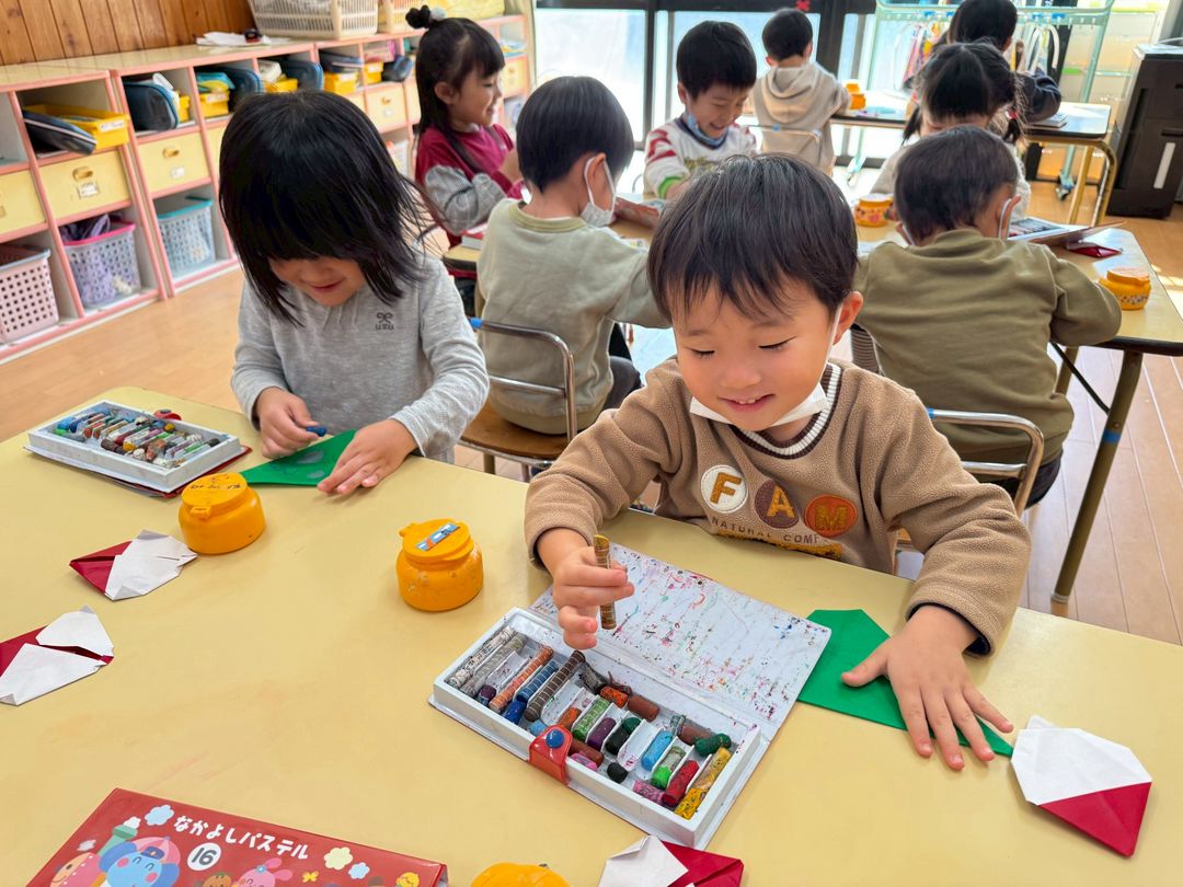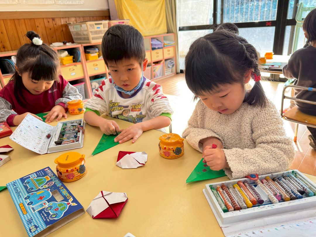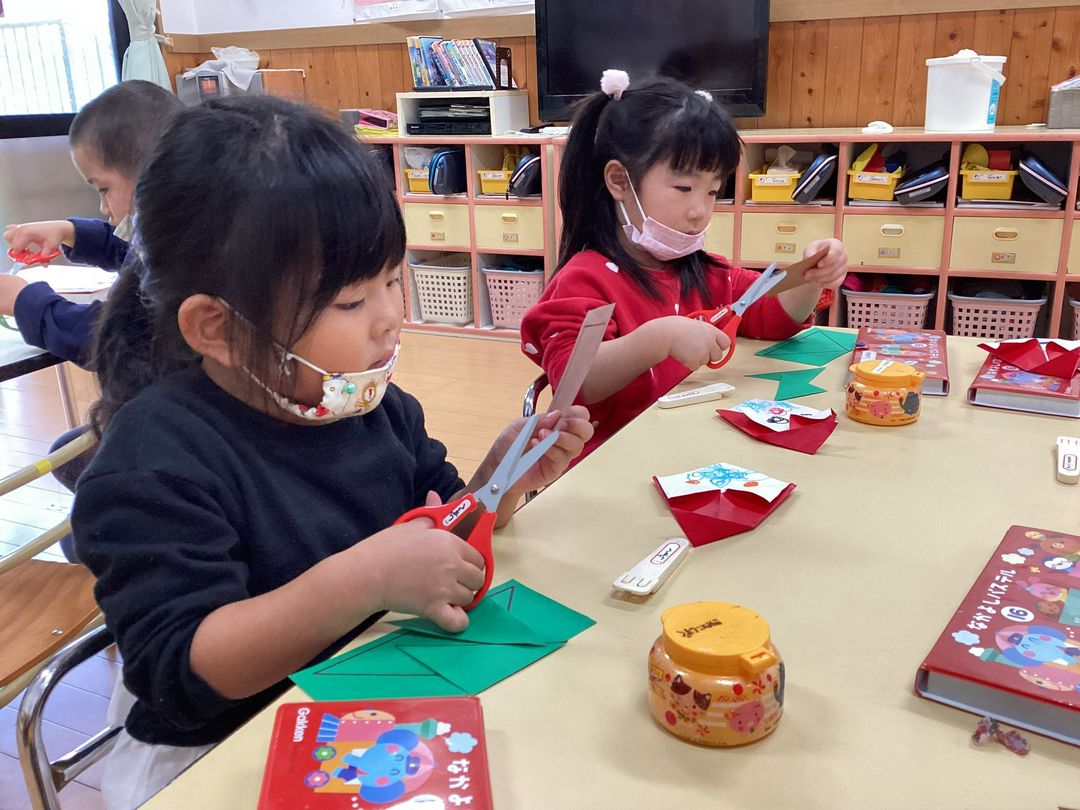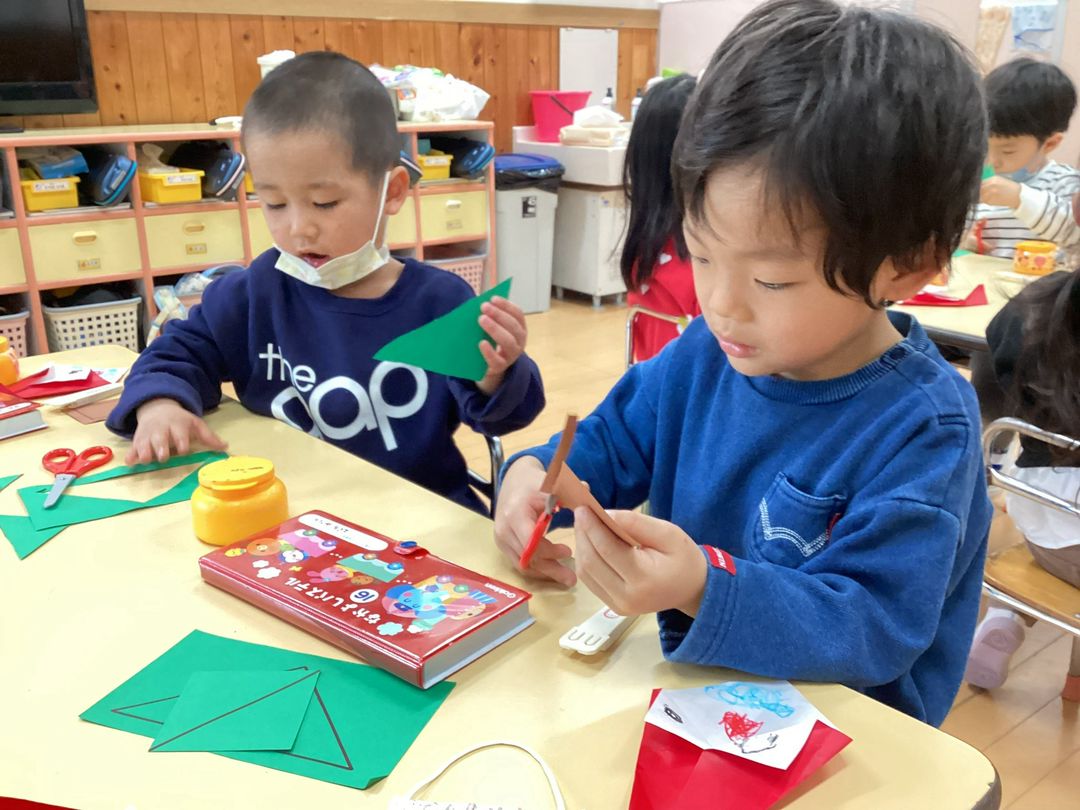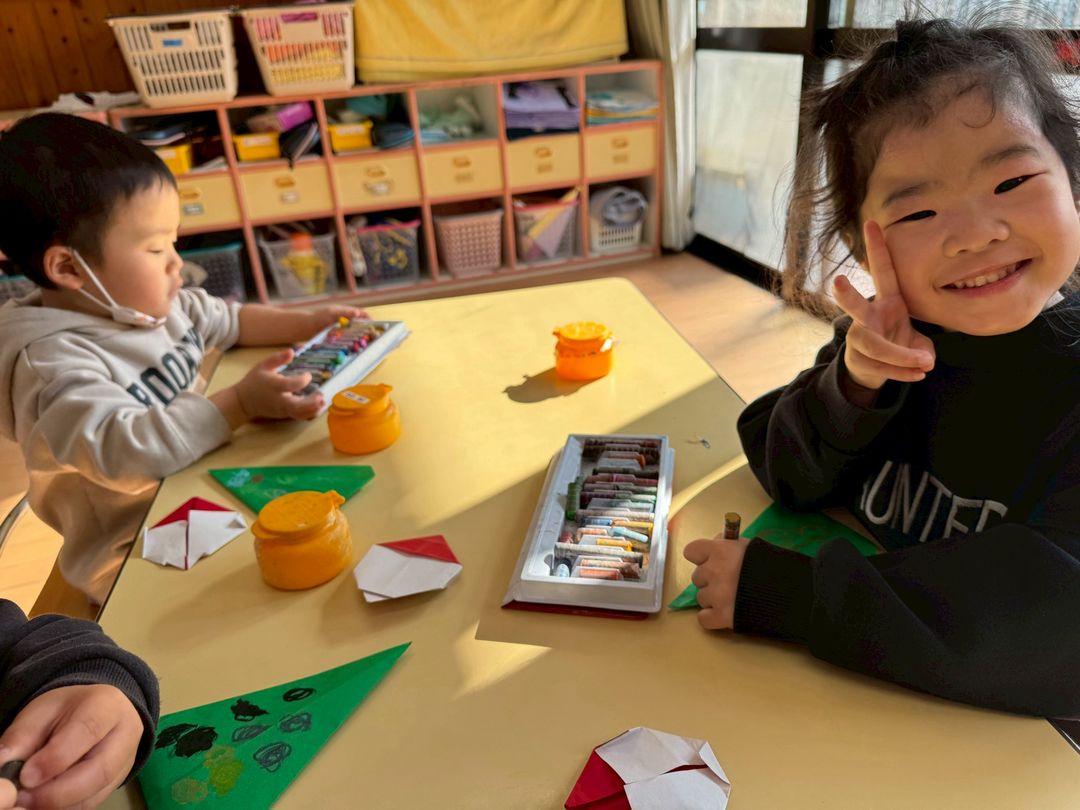 クリスマス製作を作りながら、サンタさんに何のプレゼントをお願いしようかな~?と、お友だち同士で楽しそうに話をしていました🎅