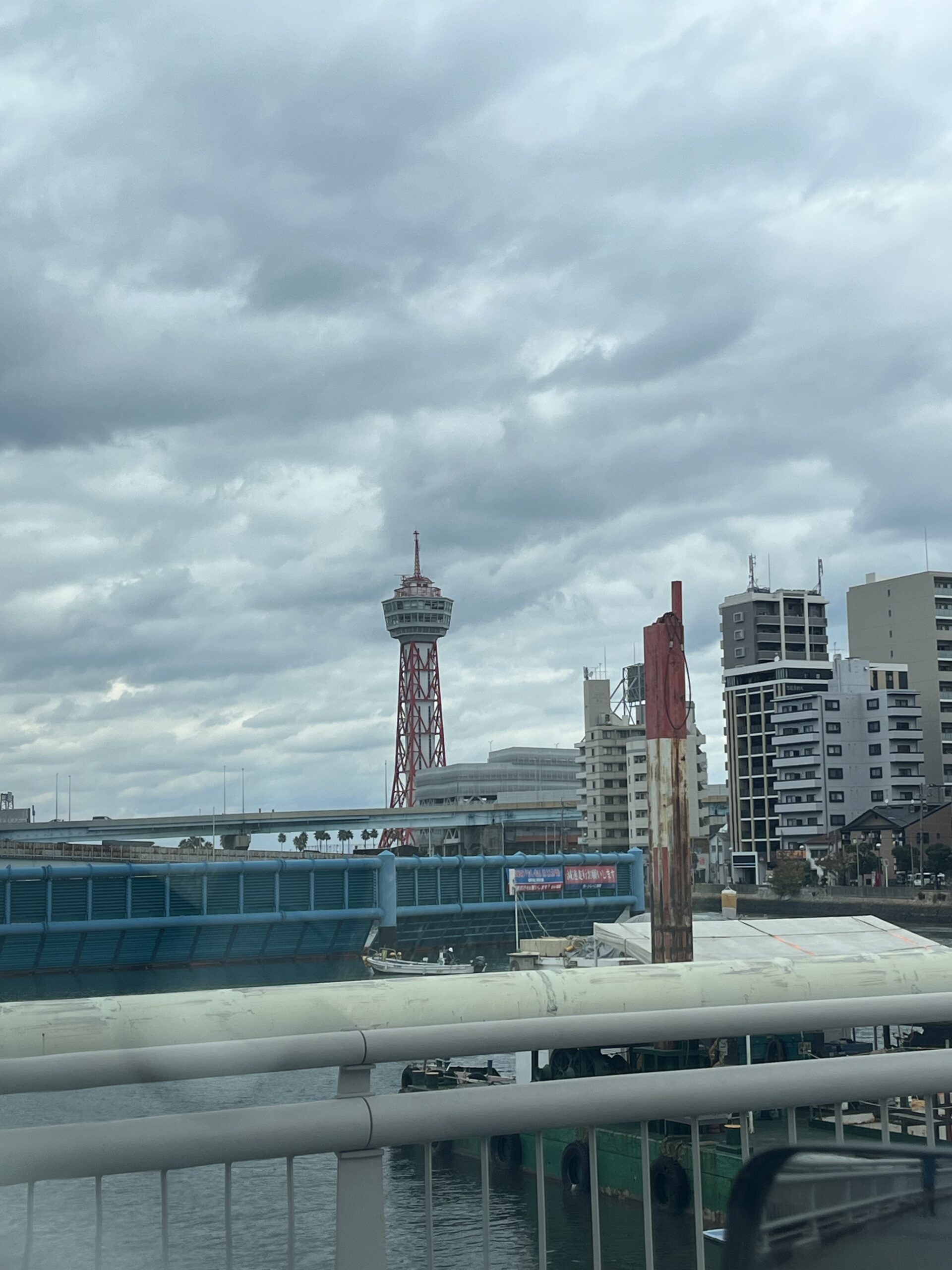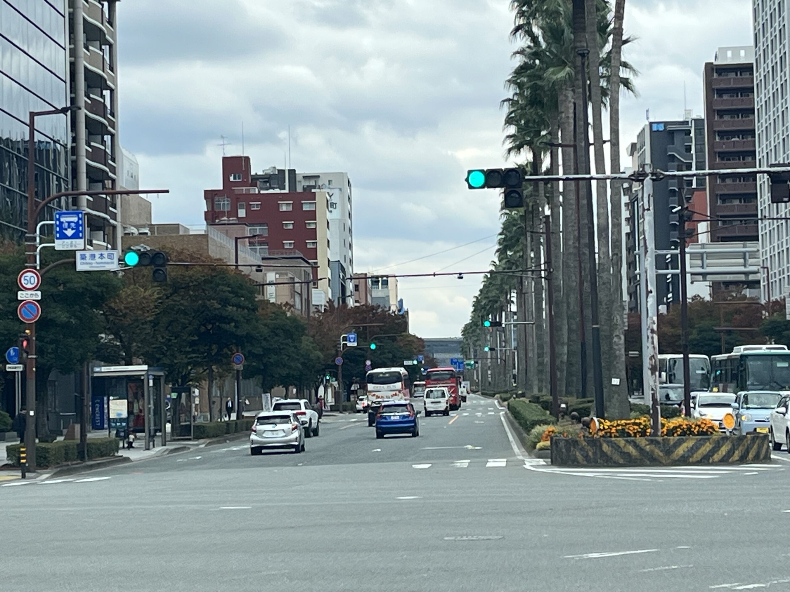 奥に見える平らな建物は博多駅。国際センターから一直線で行ける距離なんです。