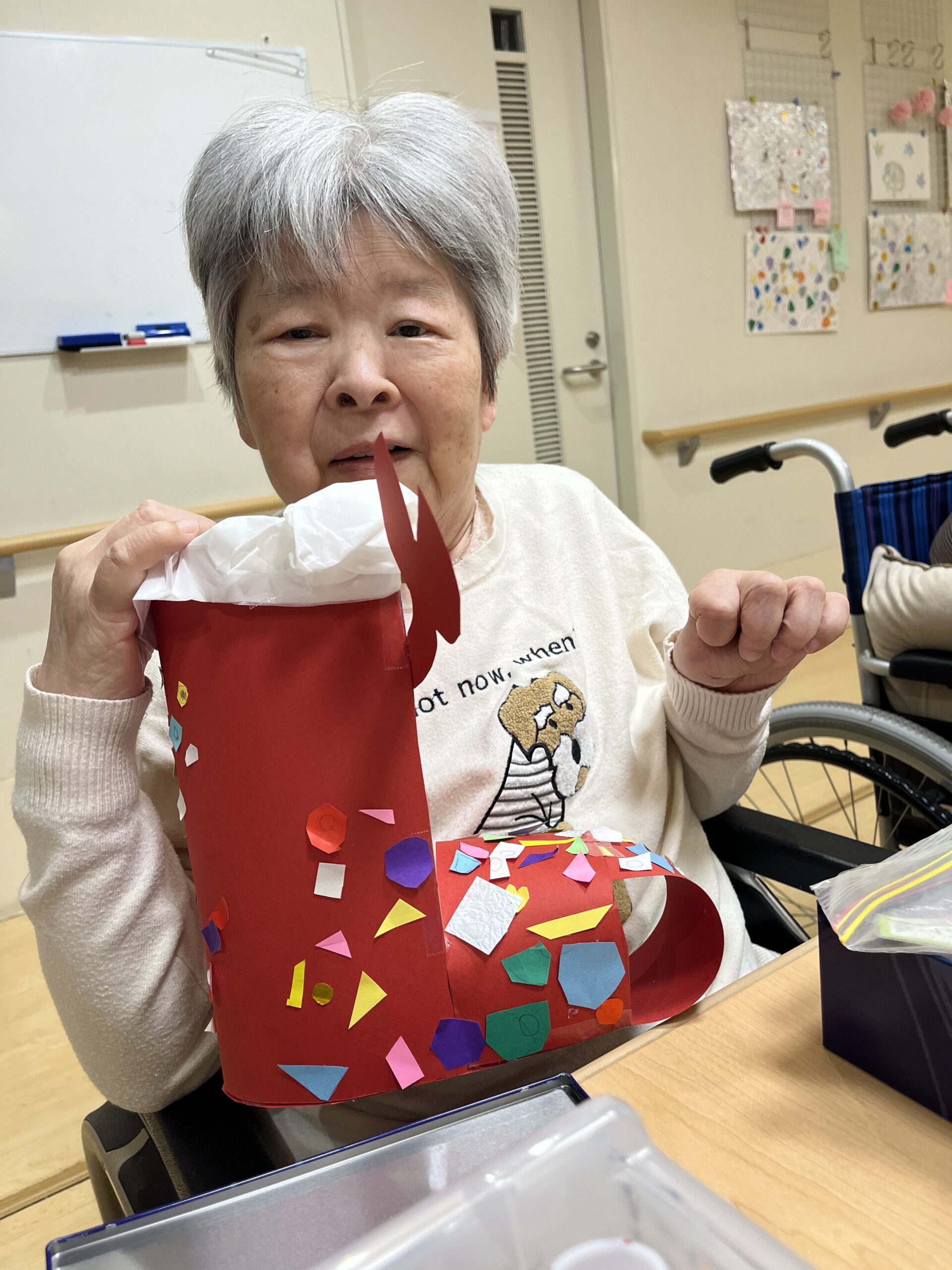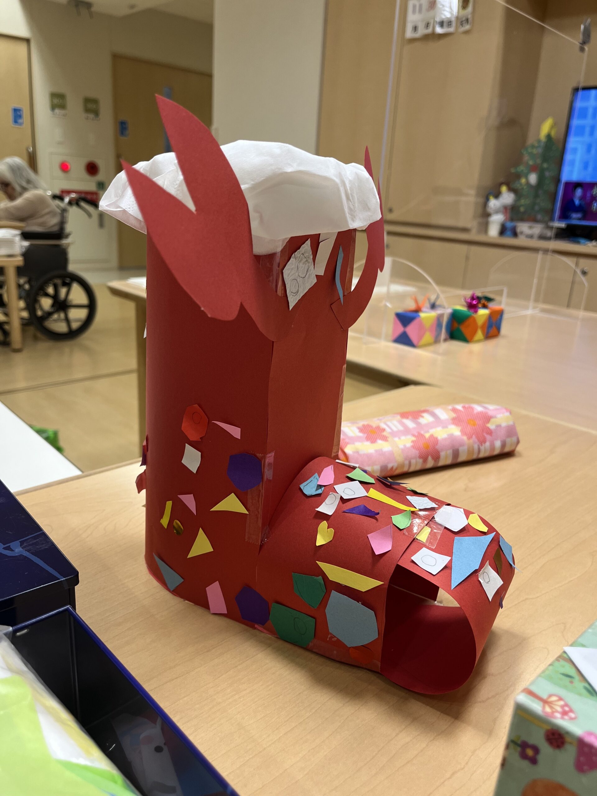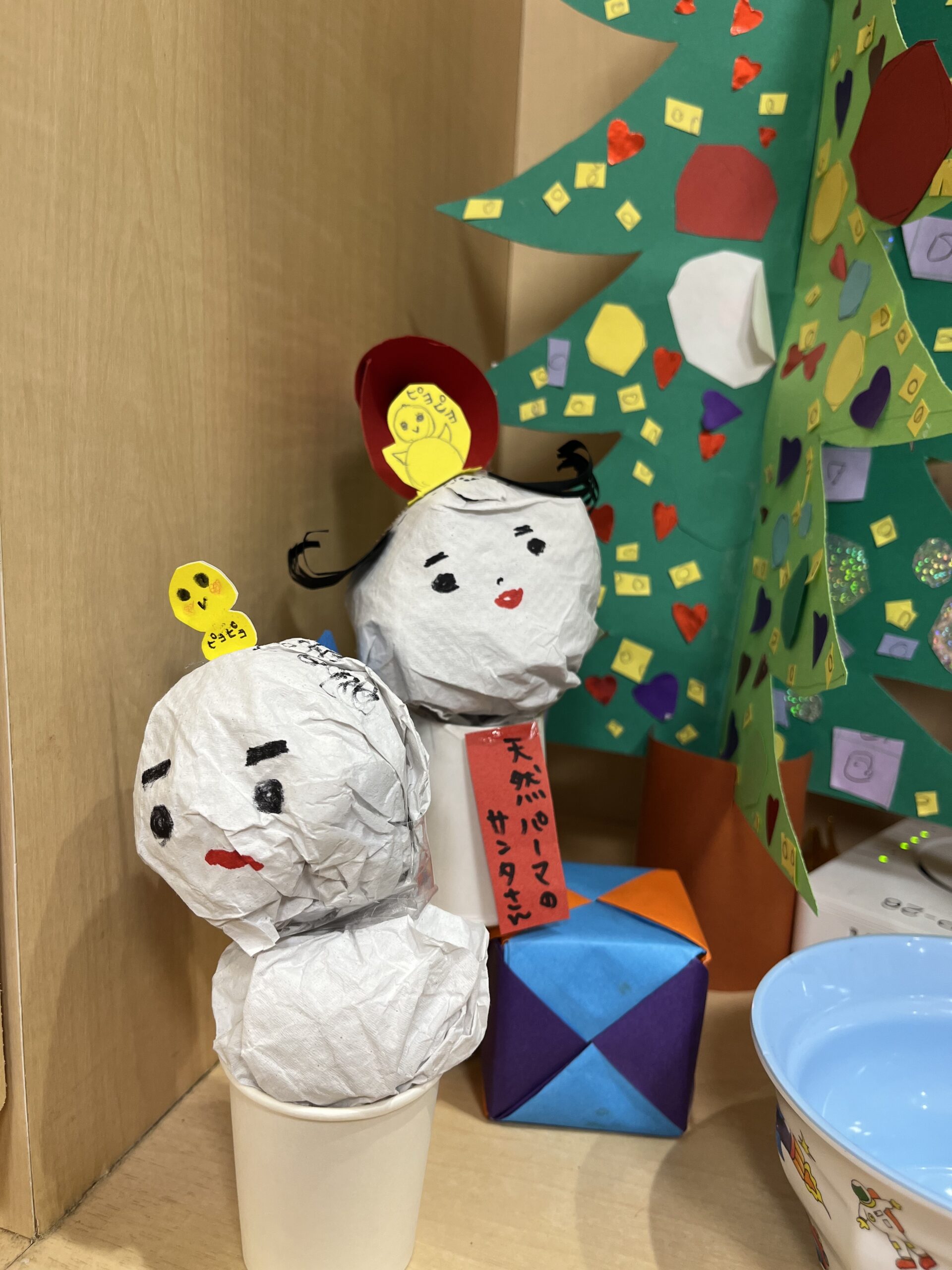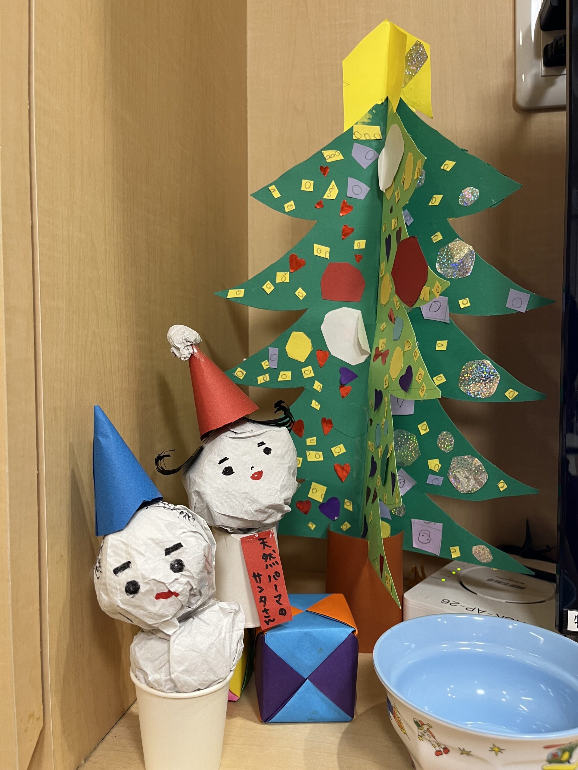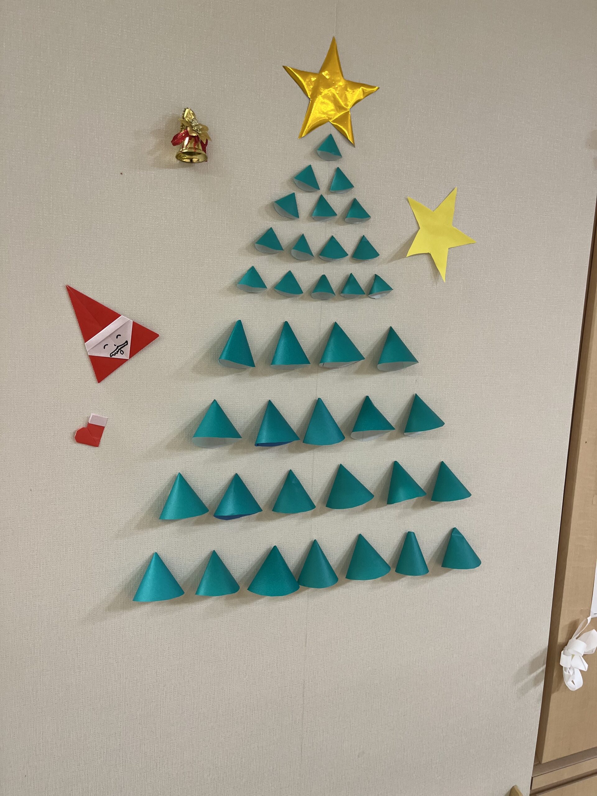 こちらのユニットは、利用者の皆さんと一緒に丸めた筒をツリーにしたようです🎄