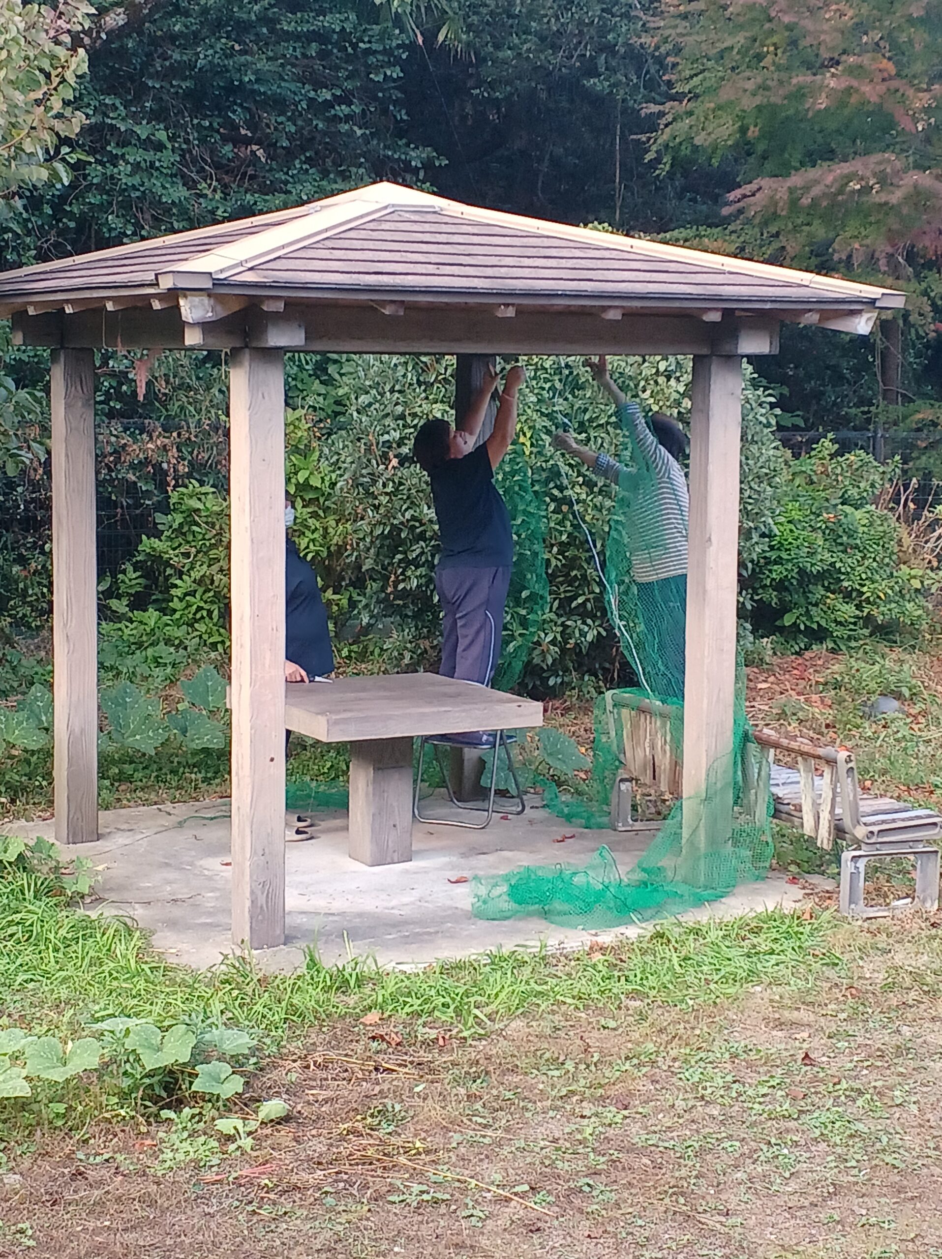 スタッフが、鳥に食べられない様に網をはってくれました!!女性のパワーに圧倒されます('Д')