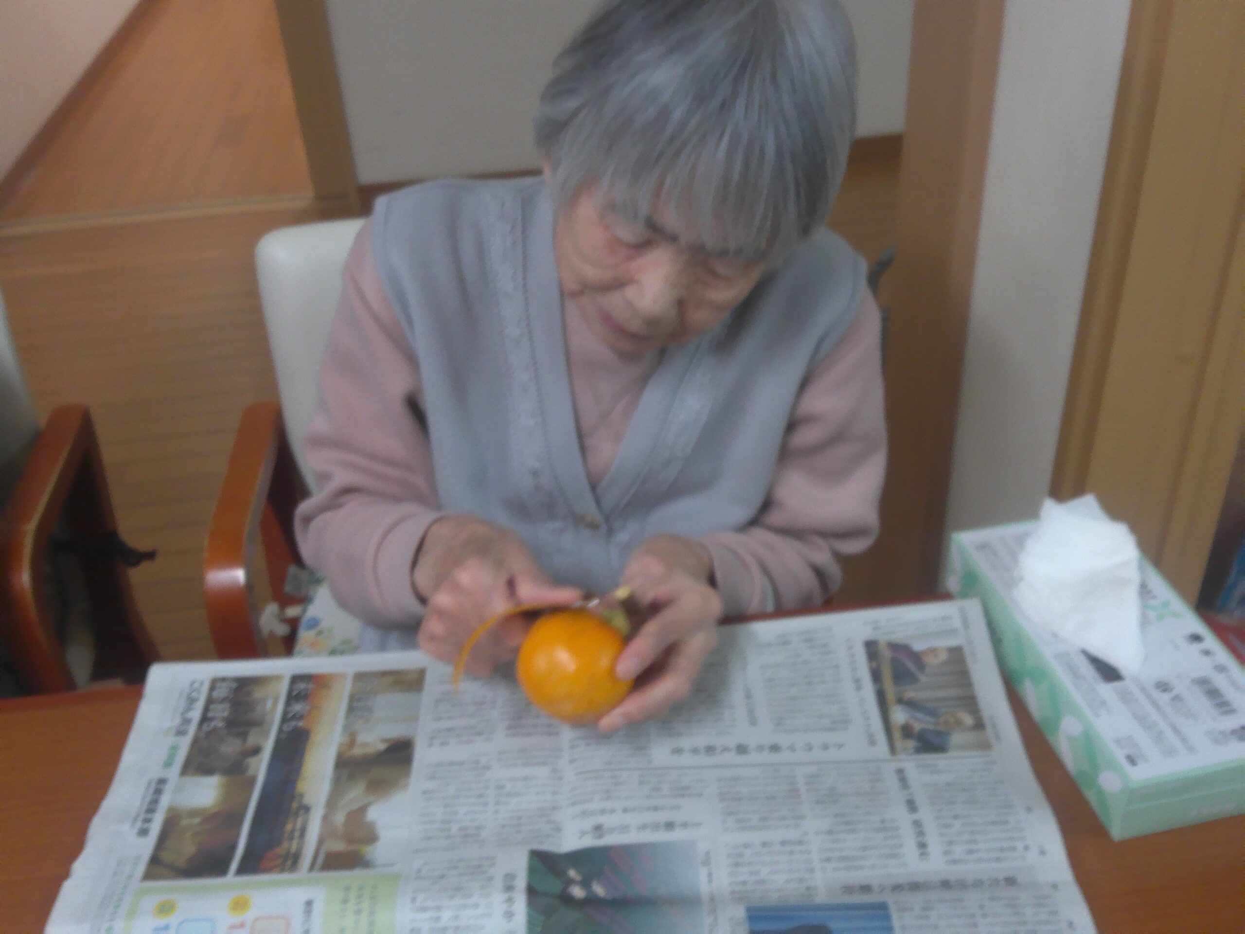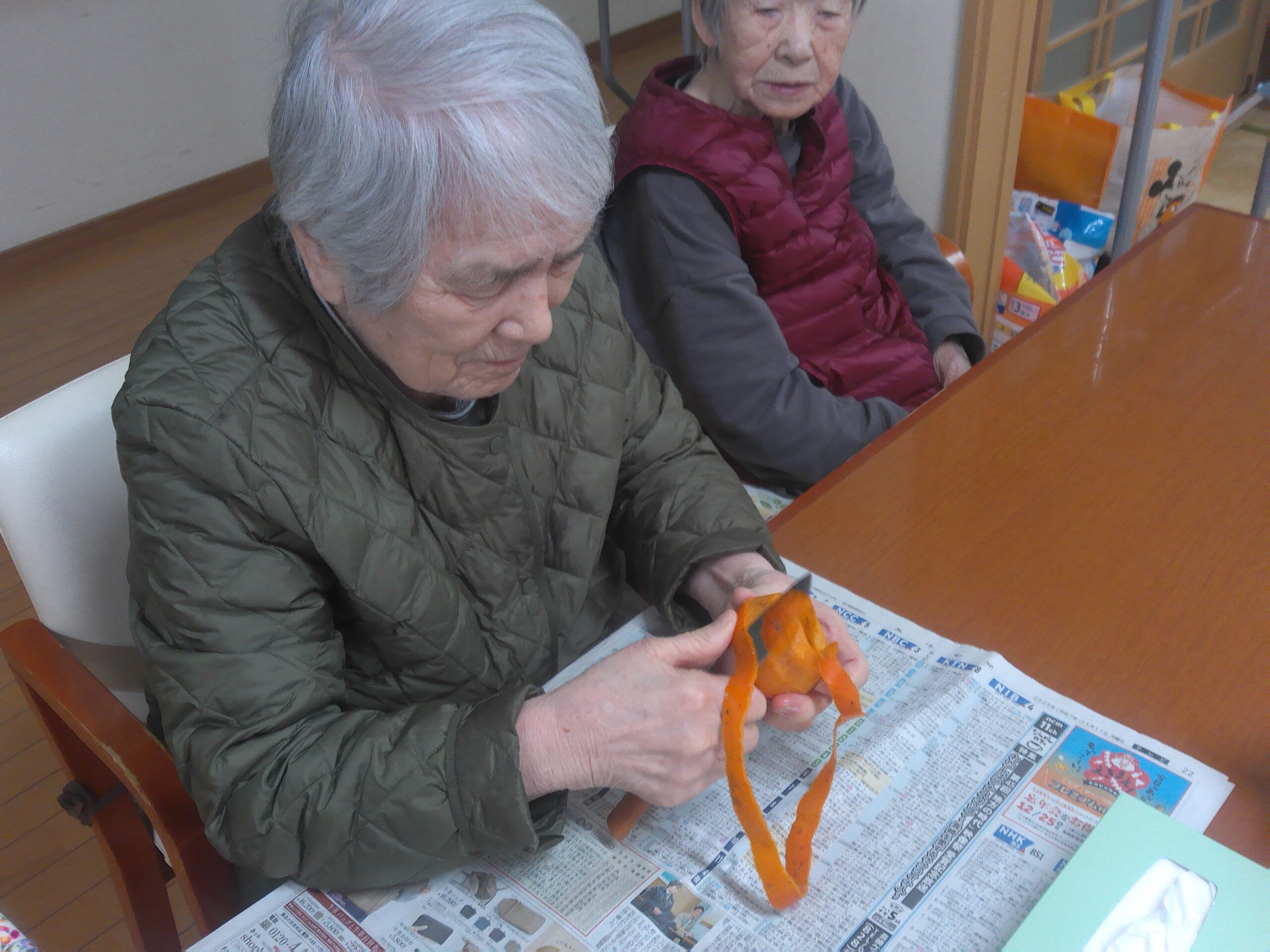 まずは、皮むきからです。ご入居者様に剥いて頂きました。
