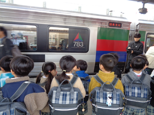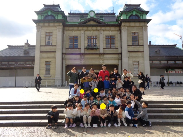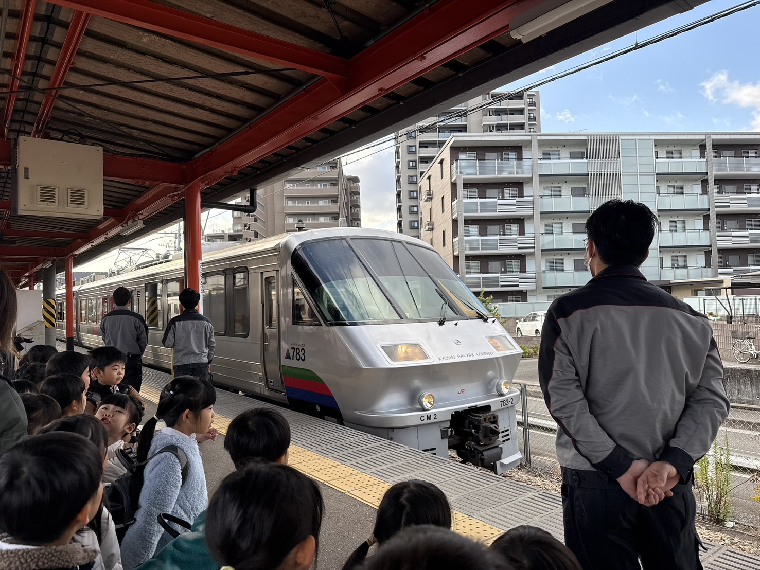 二日市駅の駅長さんも、保育園までお迎えに来てくださり、保育園を出発。