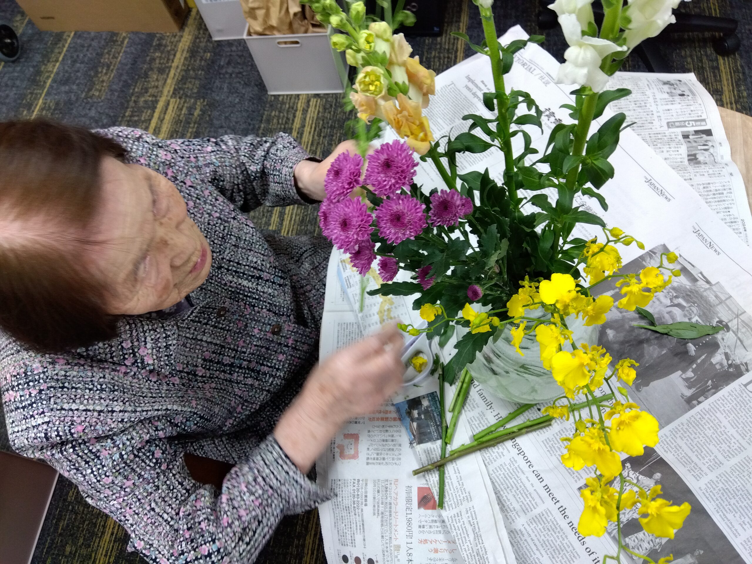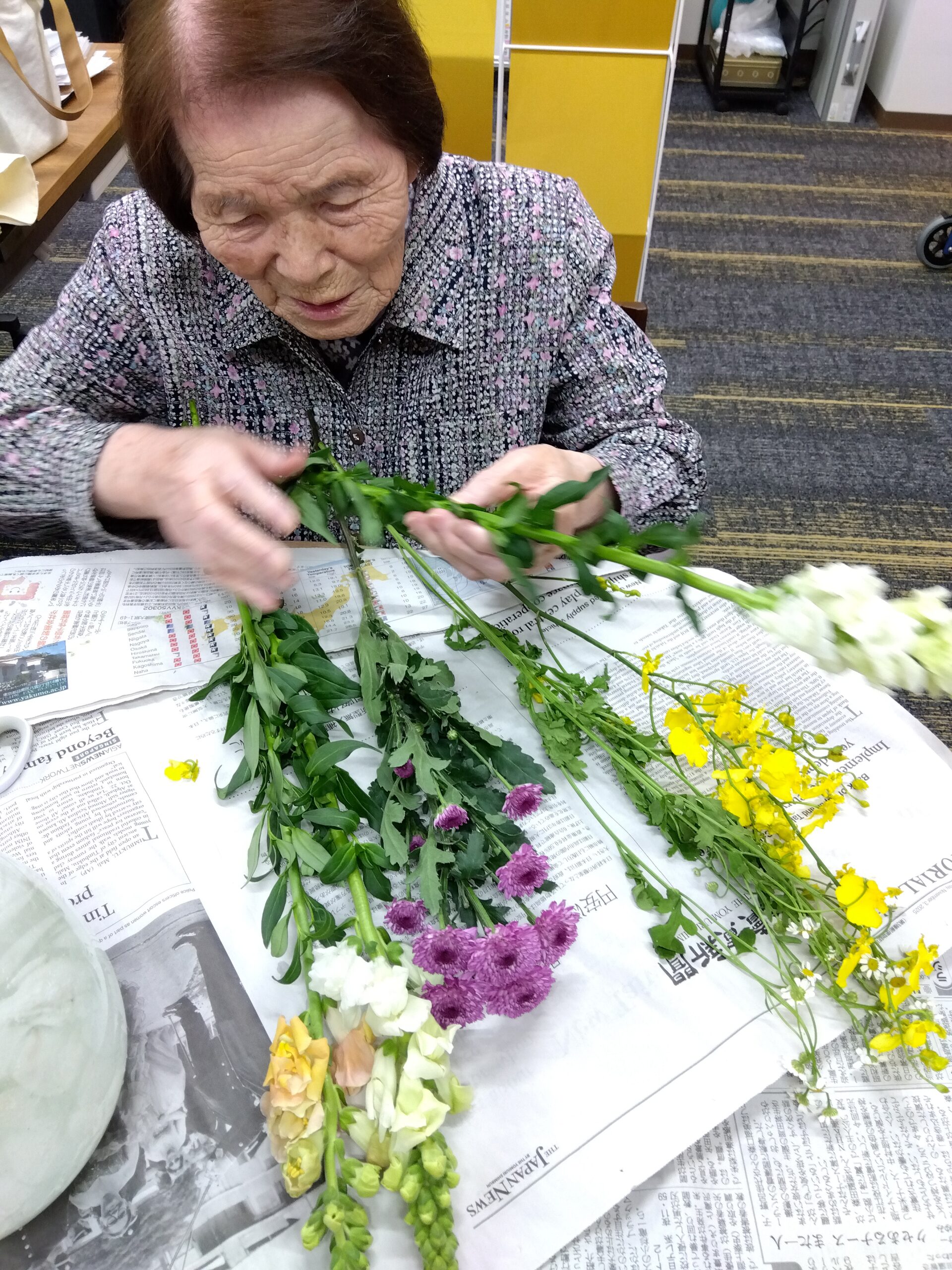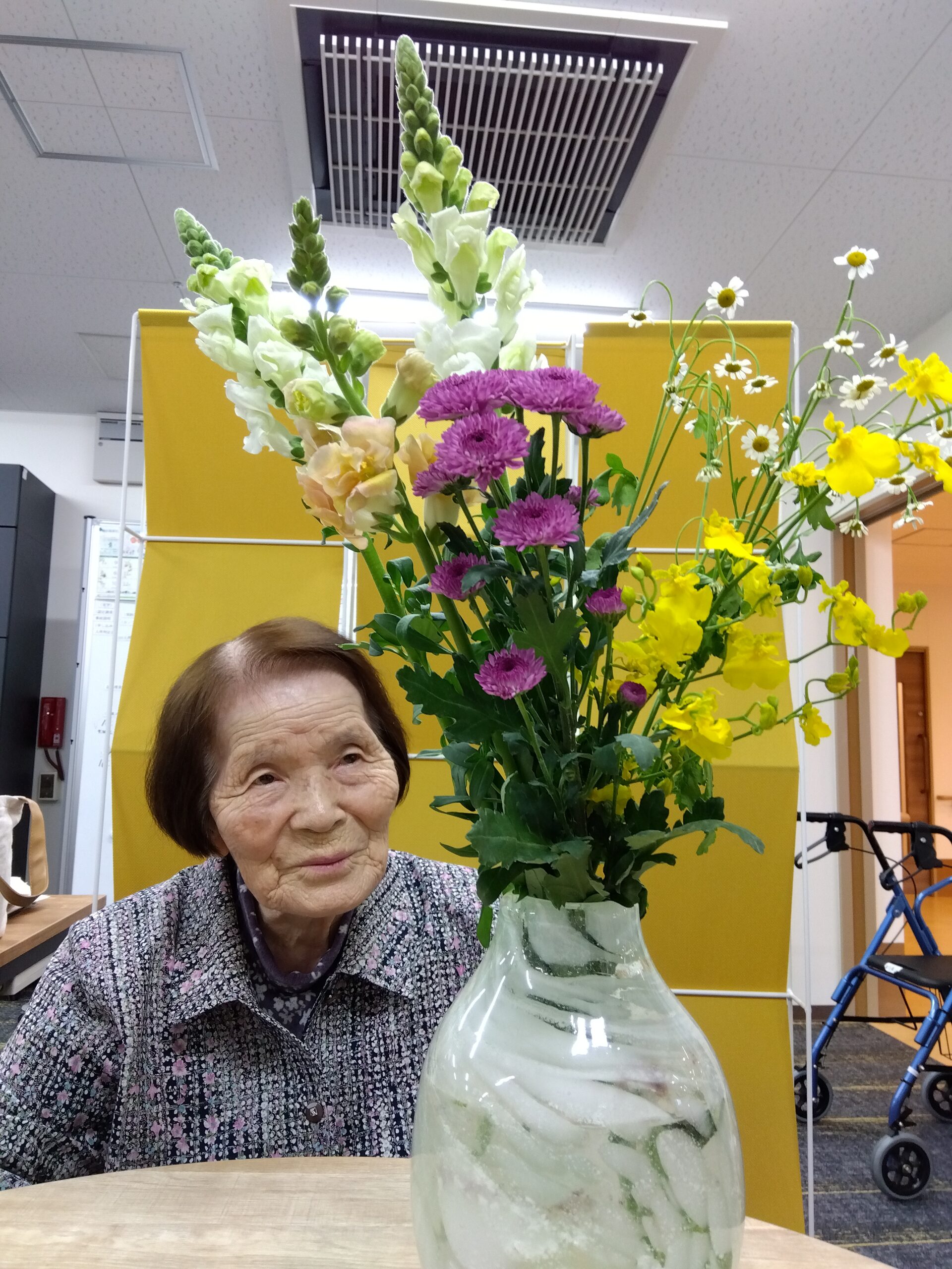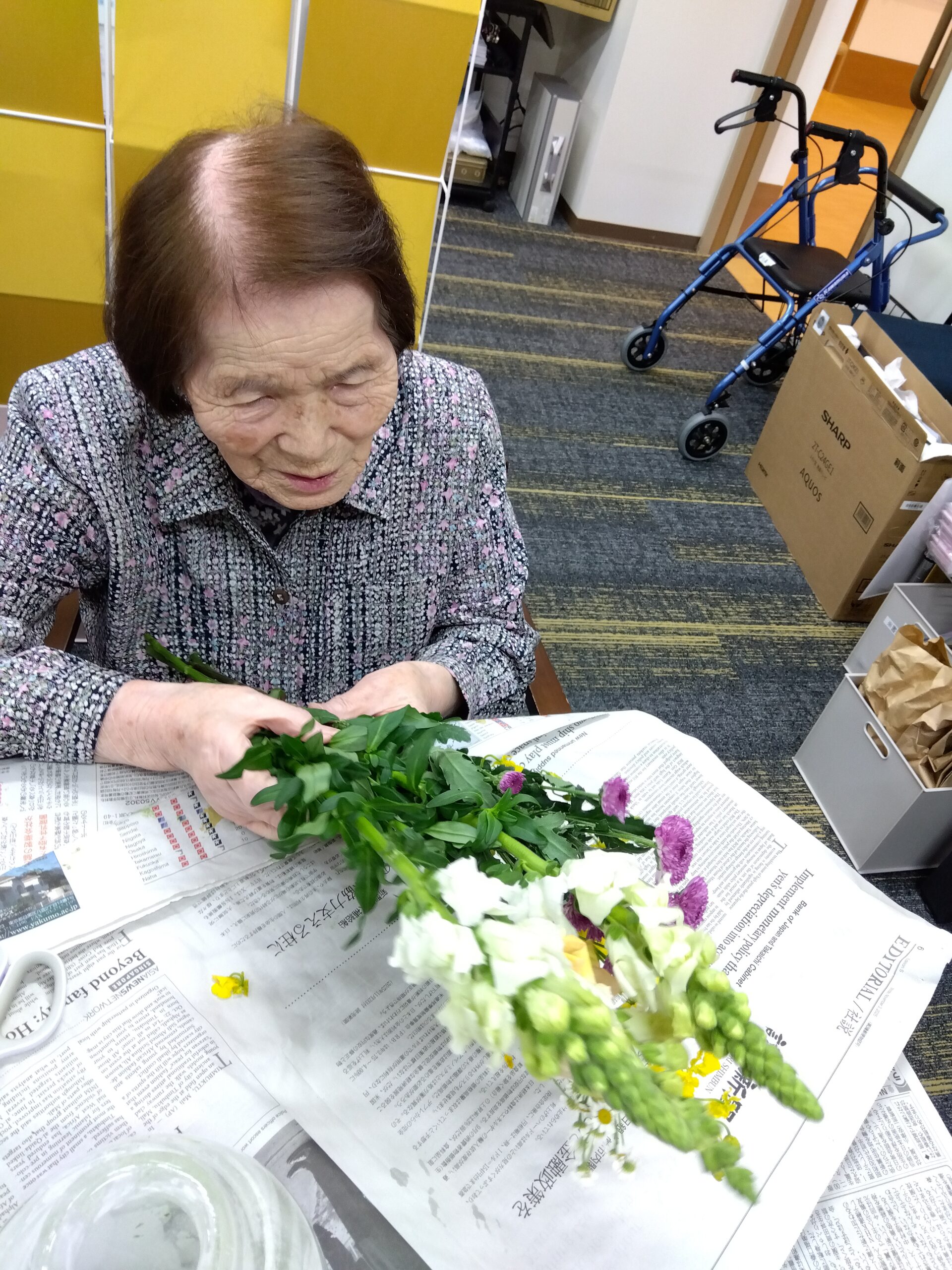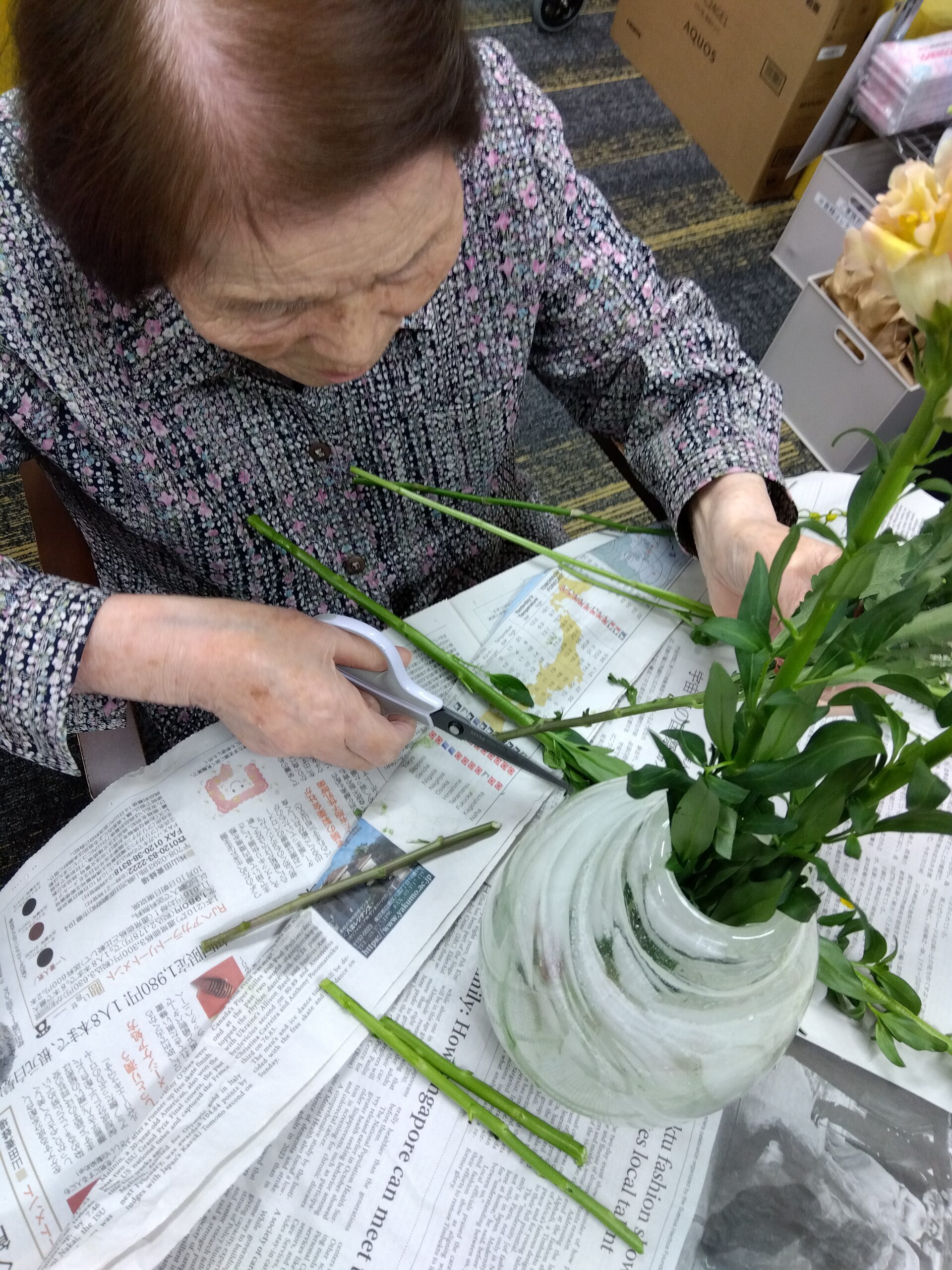 こうして入所者様に手伝ってもらい、施設内がより一層温かく華やかになることが、私たちの心にも大きな癒しとなっています。